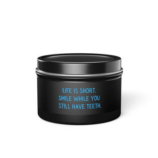 Life is Short. Smile. Tin Candles