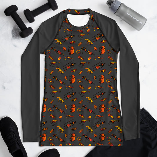African Bushman & Wildlife Women's Rash Guard - Front/Gray