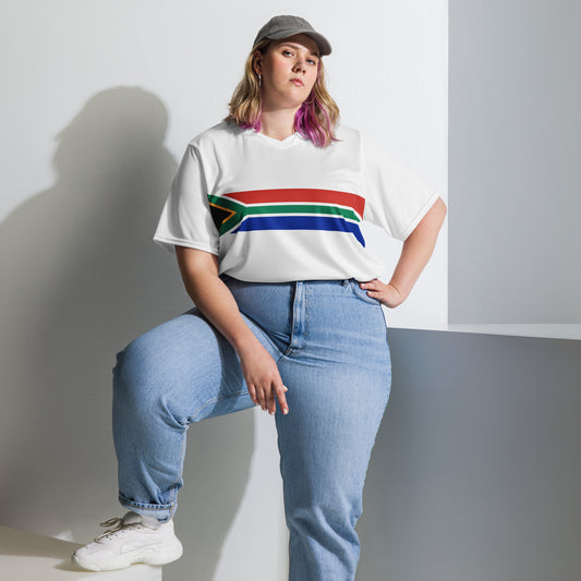 South African Flag Recycled Women's UPF50+ sports jersey - White