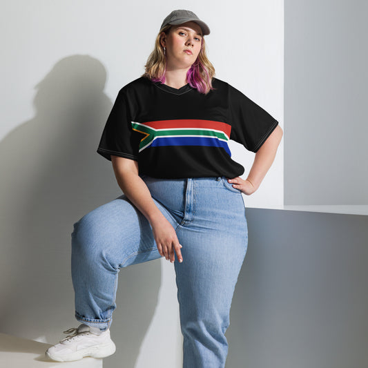 South African Flag Recycled Women's UPF50+ sports jersey - Black