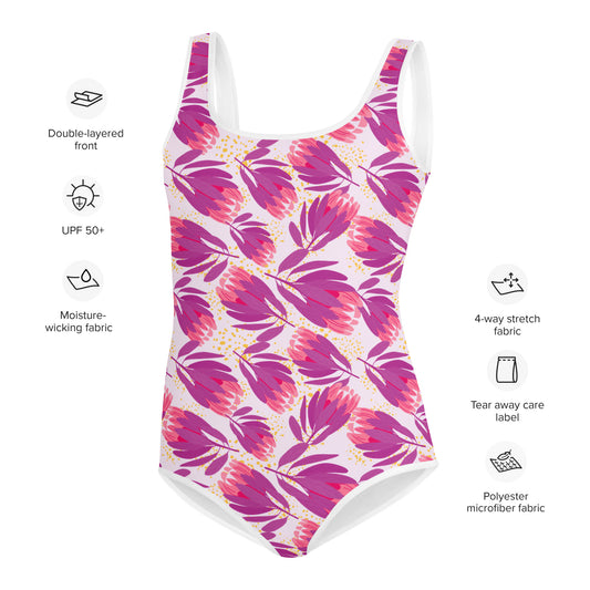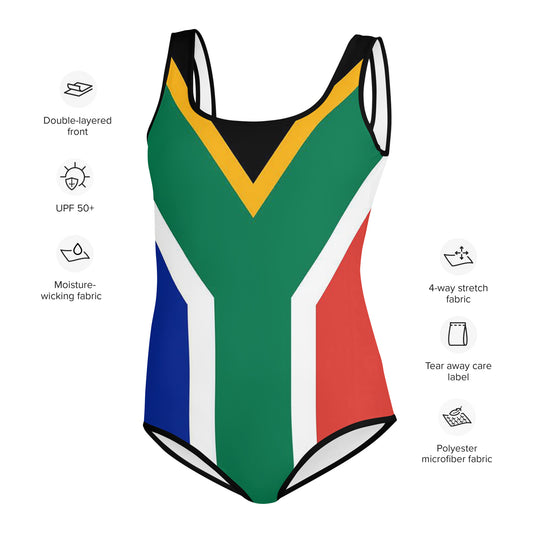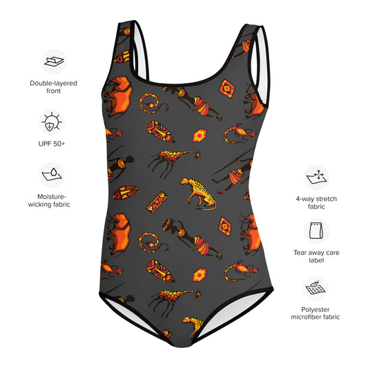 African Bushman & Wildlife Youth Swimsuit - Gray