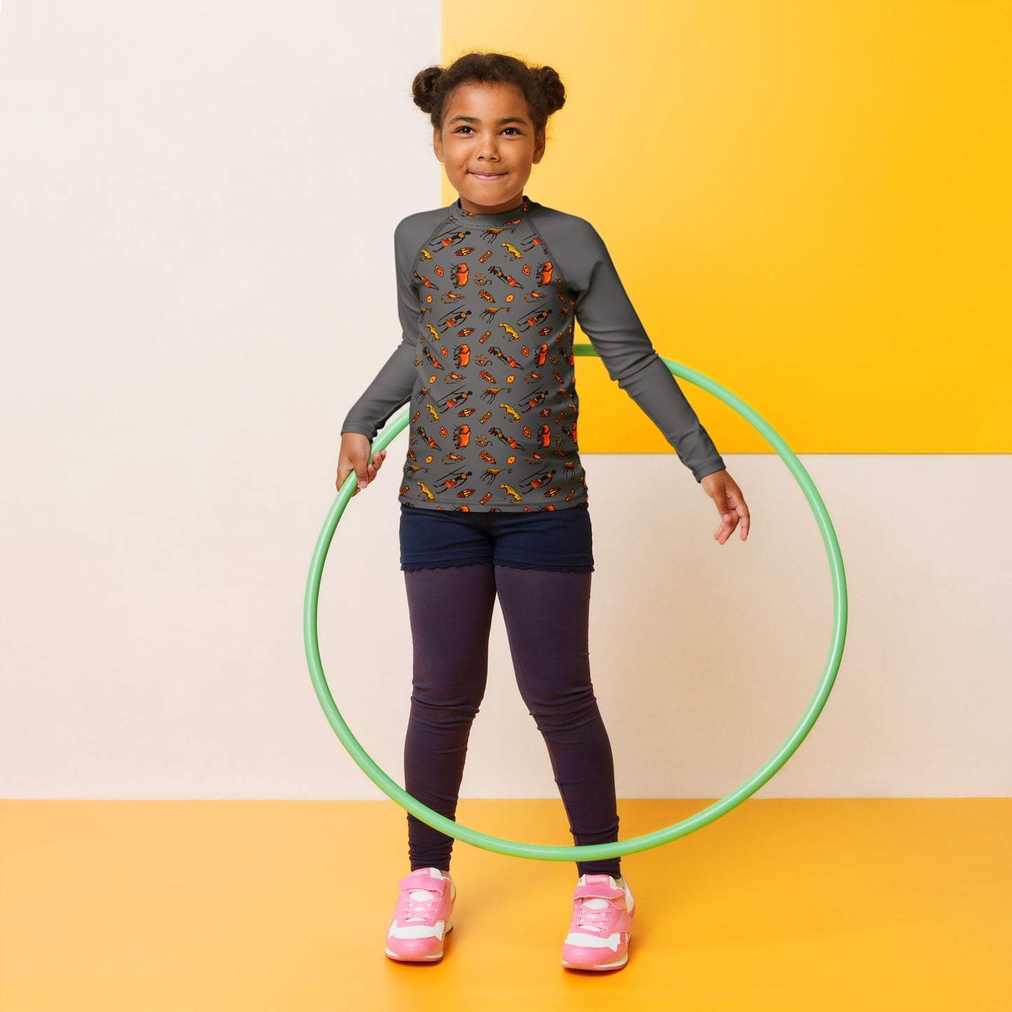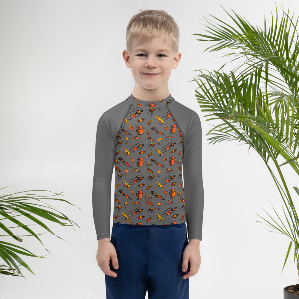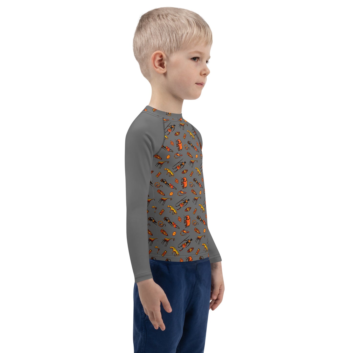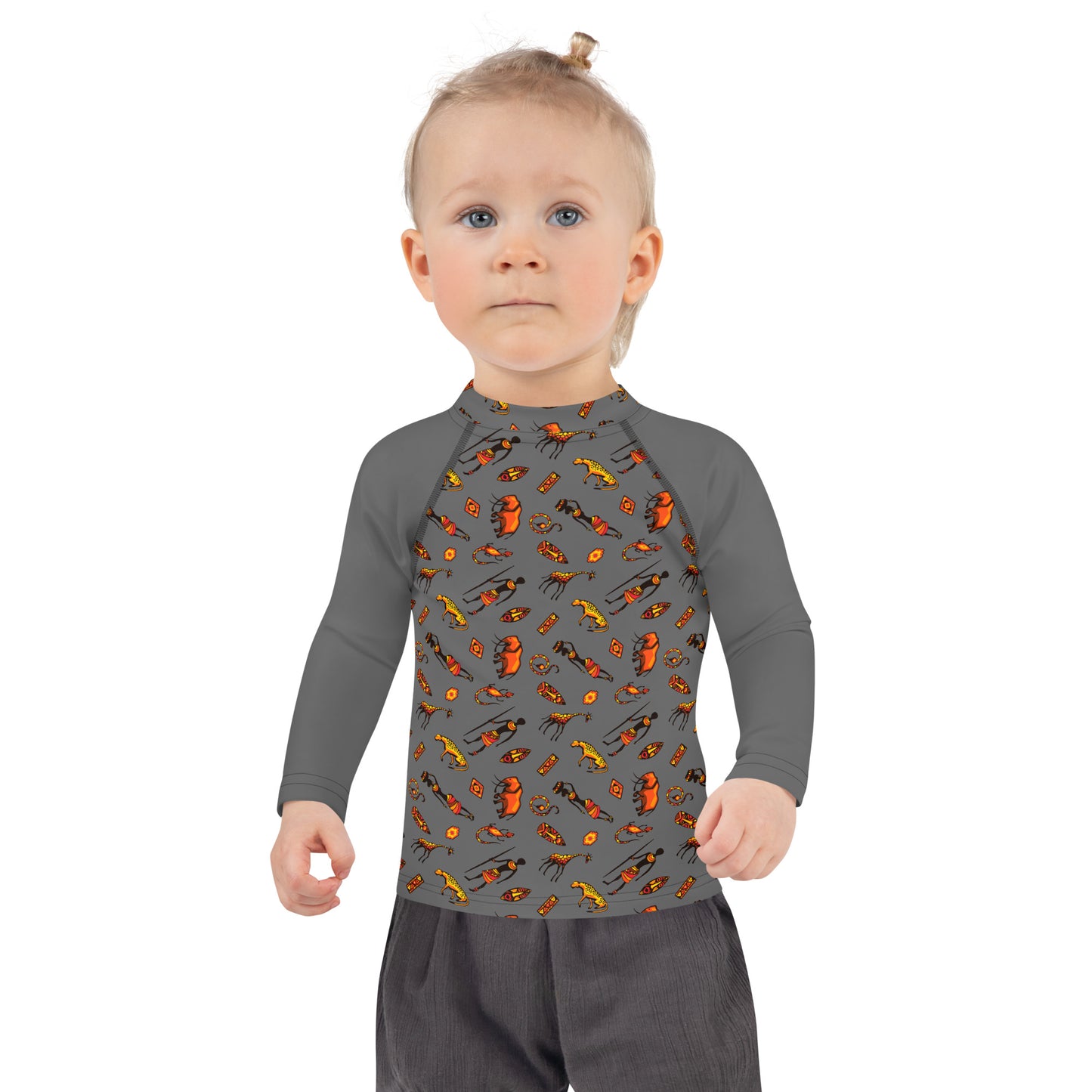 African Bushman & Wildlife Kids Rash Guard - Gray