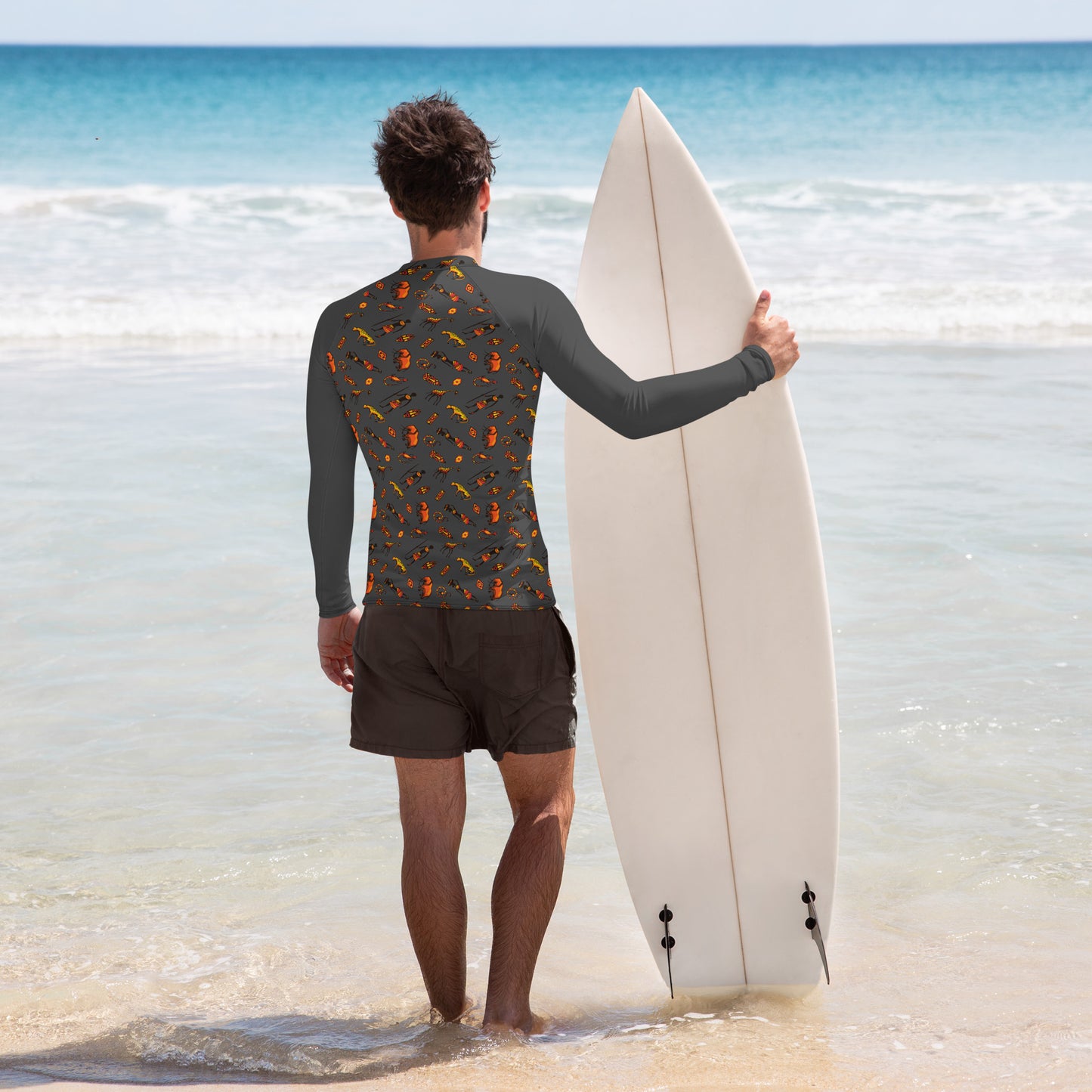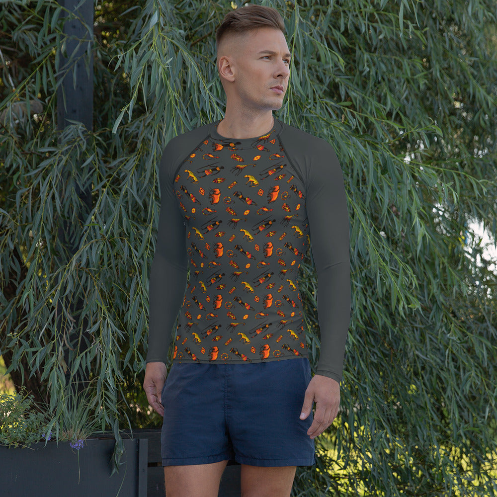 African Bushman & Wildlife Men's Rash Guard - Front/Gray