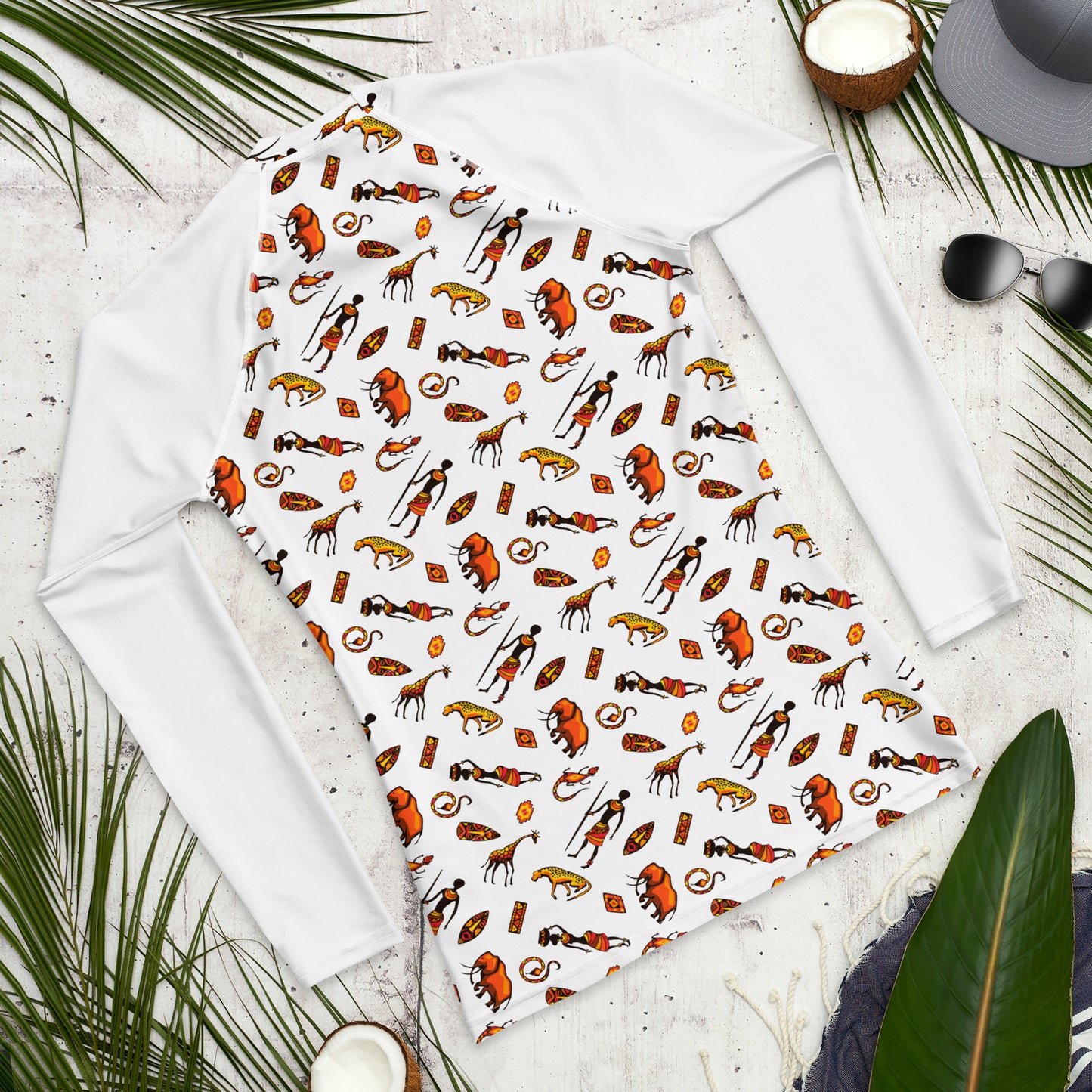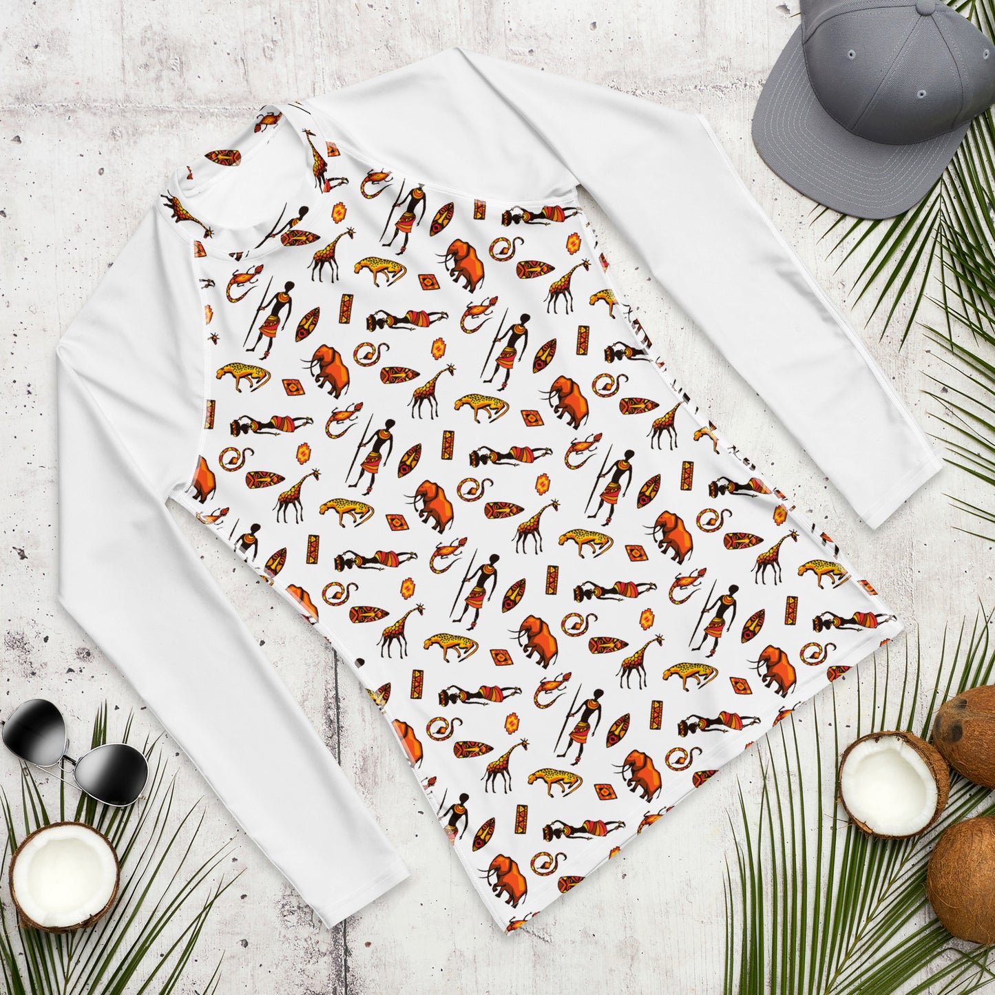 African Bushman & Wildlife Men's Rash Guard - Front/White