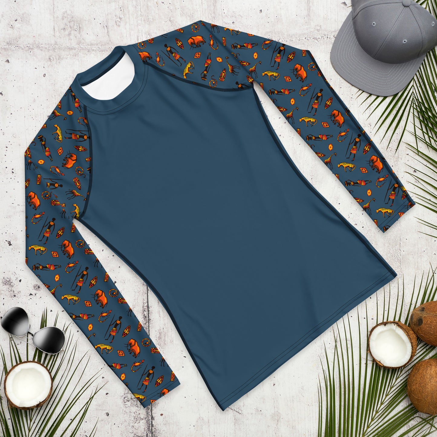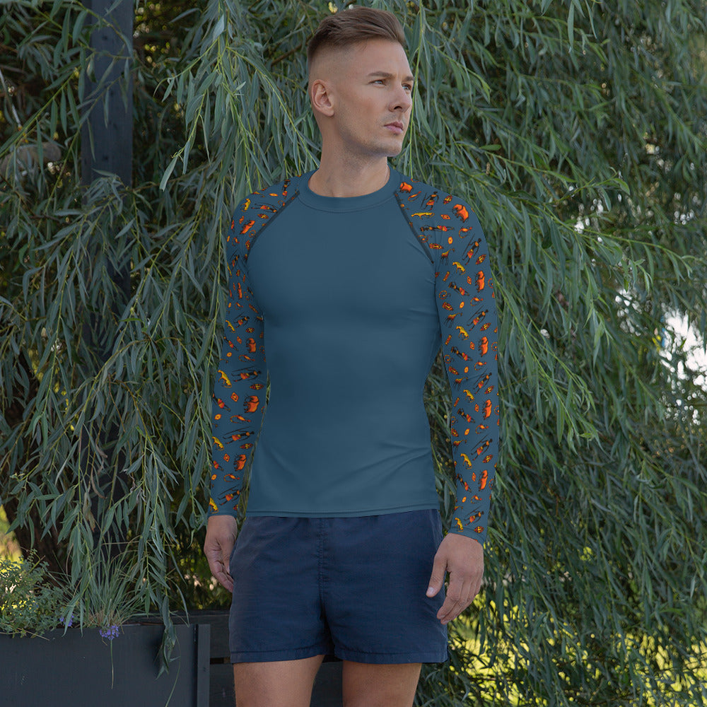 African Bushman & Wildlife Men's Rash Guard - Sleeves/Blue