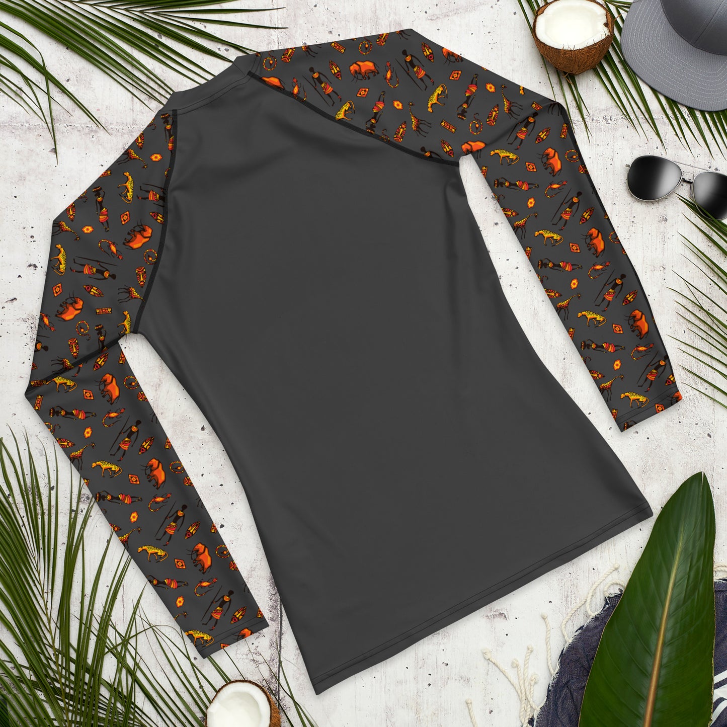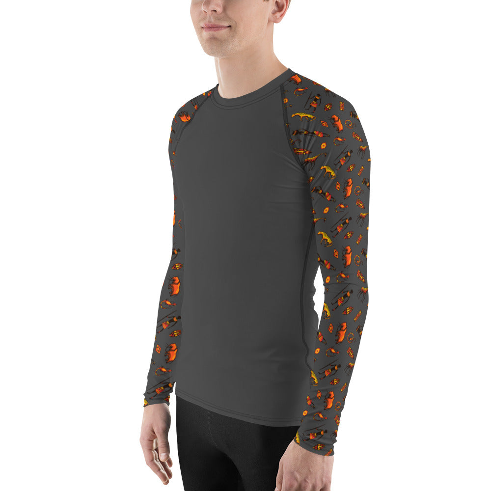 African Bushman & Wildlife Men's Rash Guard - Sleeves/Gray