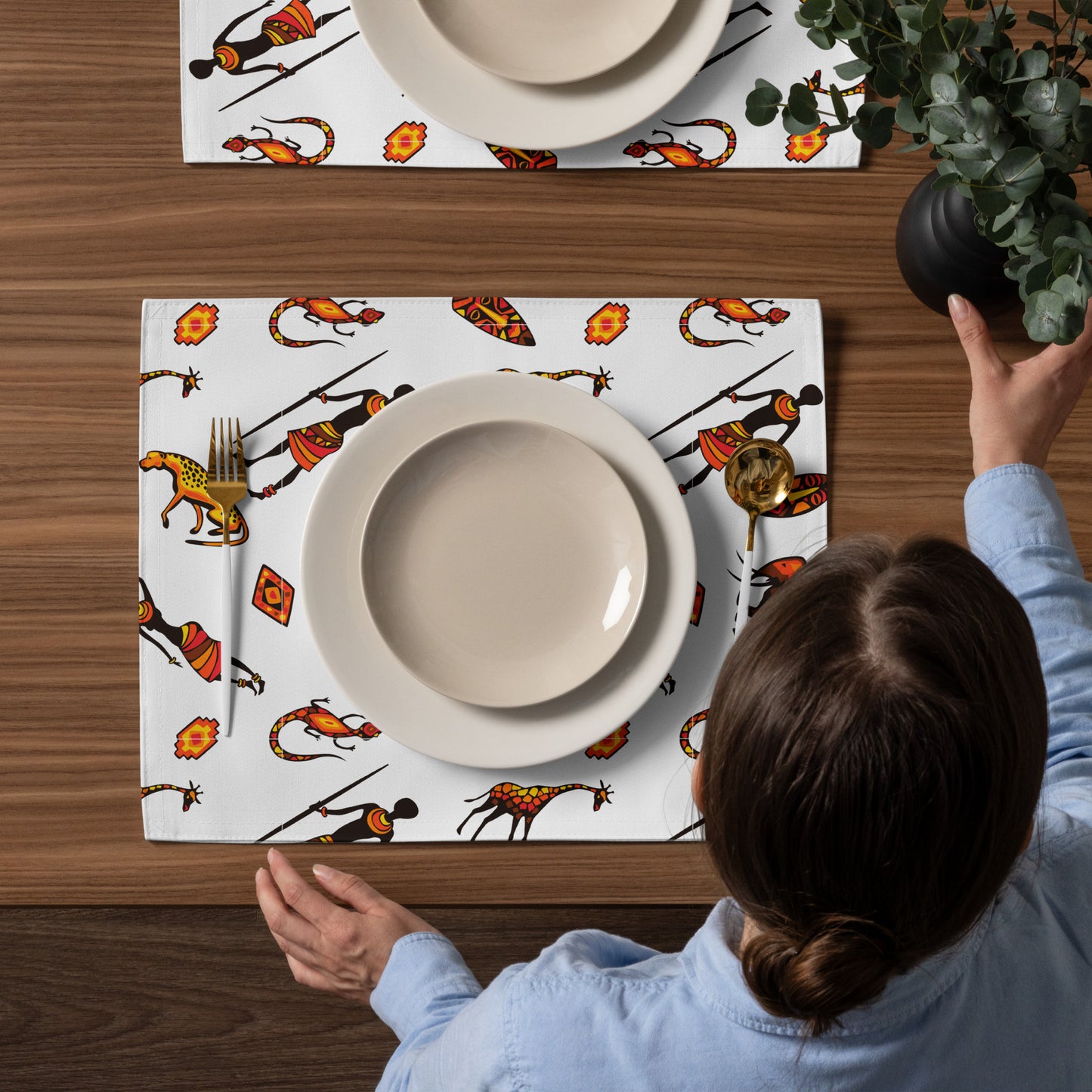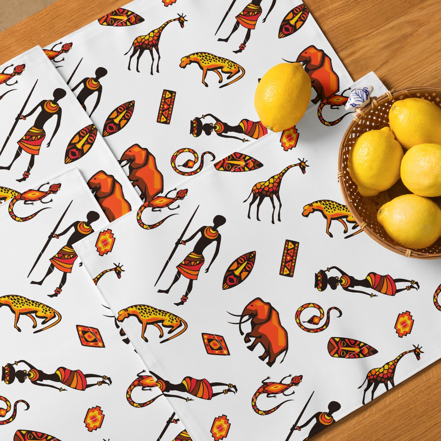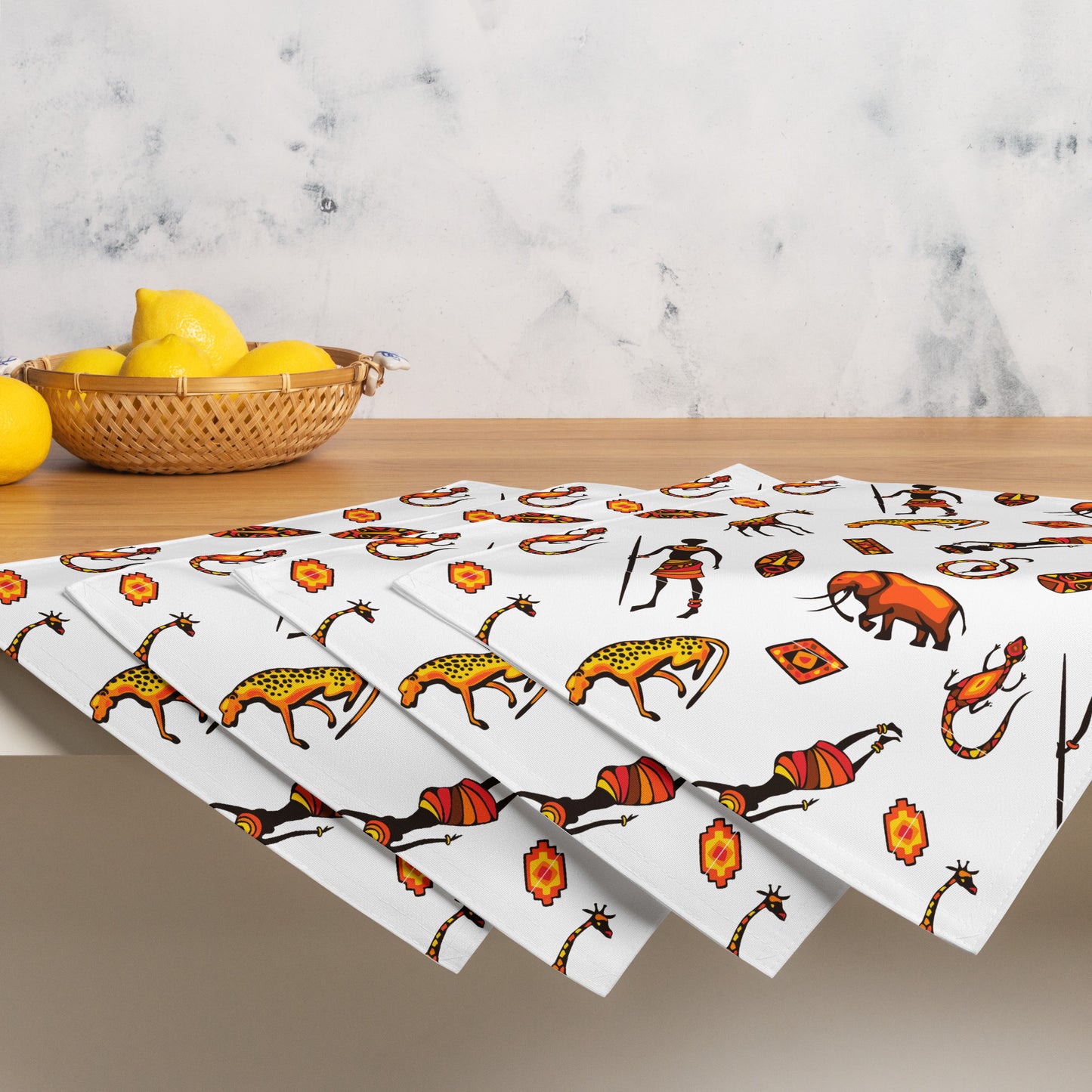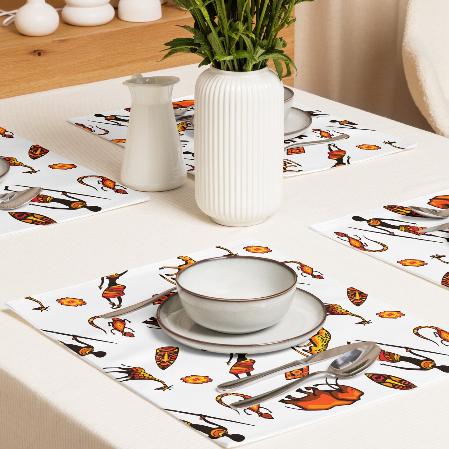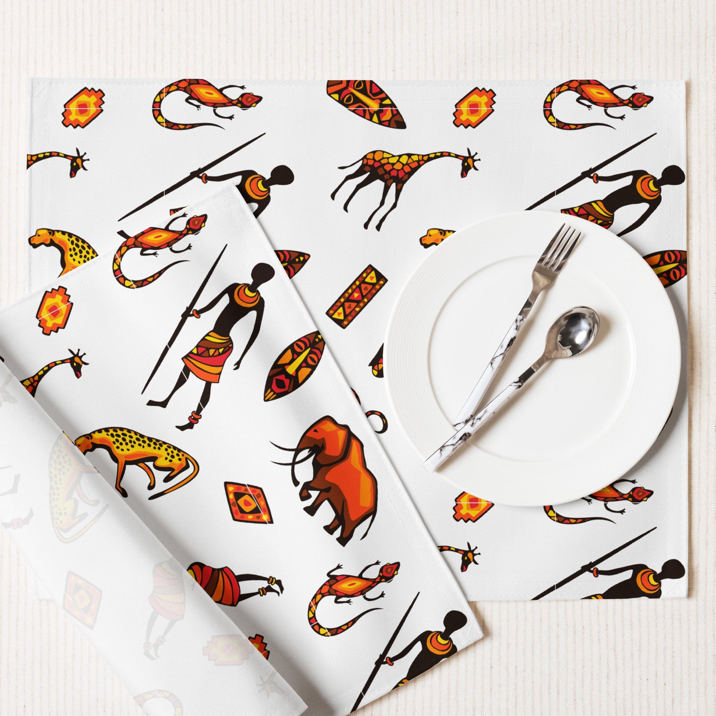 African Bushman & Wildlife Placemat Set - White