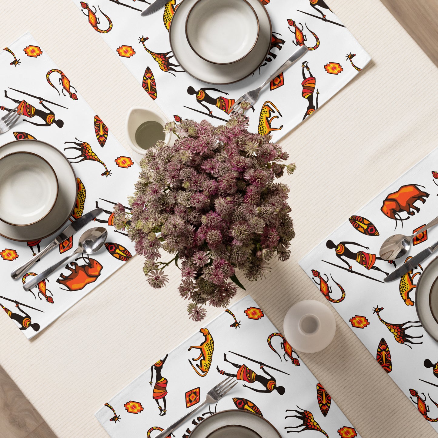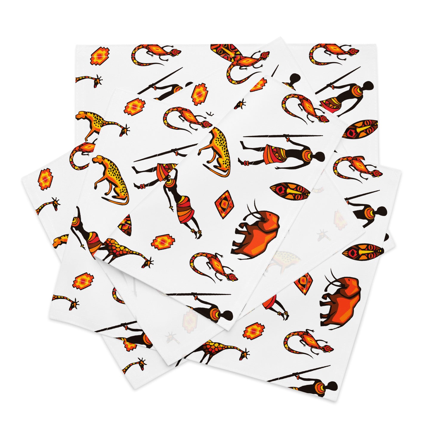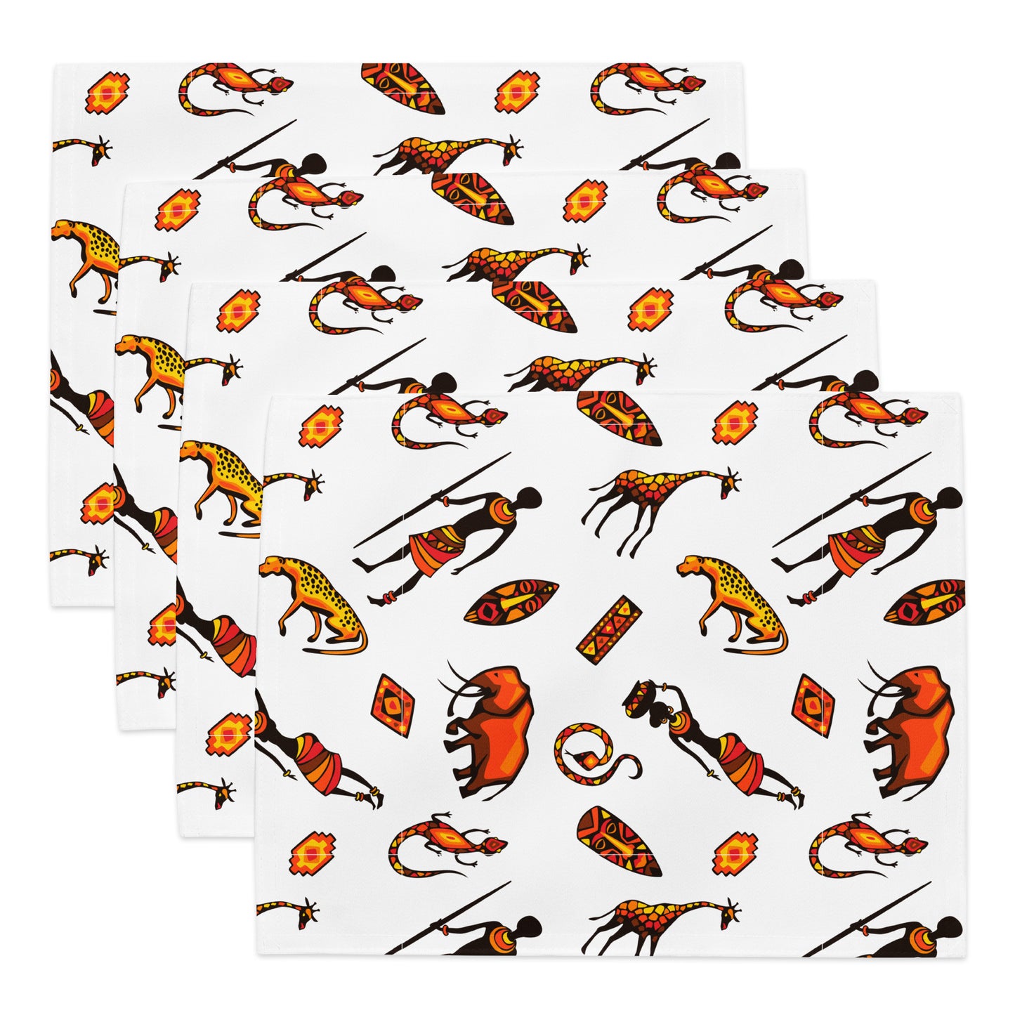 Show off your taste and dine in style! Every set comes with 4 high-quality, water-resistant placemats, all with a unique pattern for that special touch. Whether for daily dining or festive feasts, these African Bushman & Wildlife placemats will add a dash of personal charm to your every get-together.