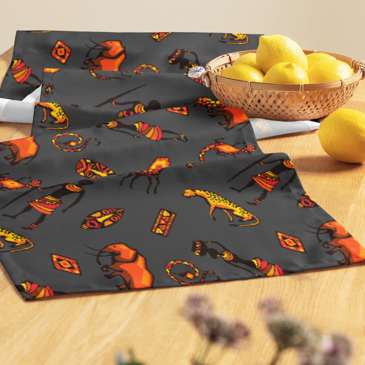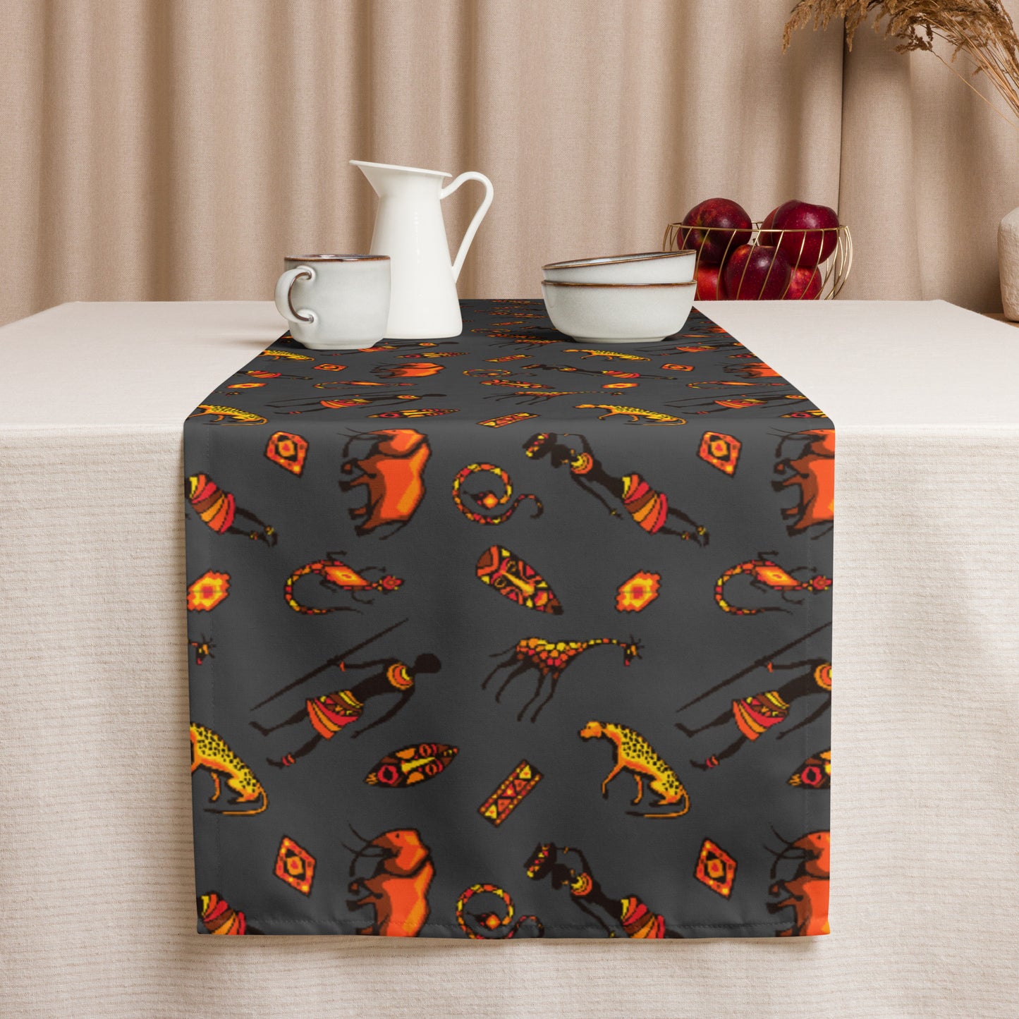 Crafted from resilient fabric, this African Bushman & Wildlife table runner is both soft and enduring. Whether for everyday elegance or holiday charm, it will make meal times with loved ones a little more special. Treat yourself to this delightful table accessory or consider it as a thoughtful gift for someone special.