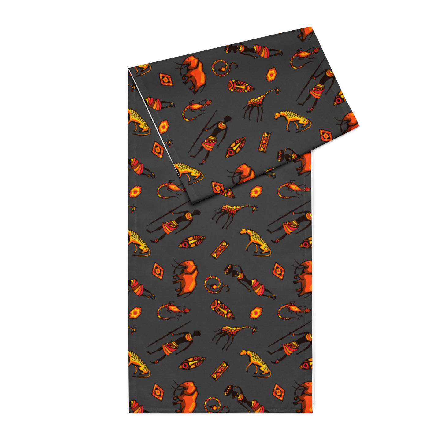 African Bushman & Wildlife Table runner - Gray