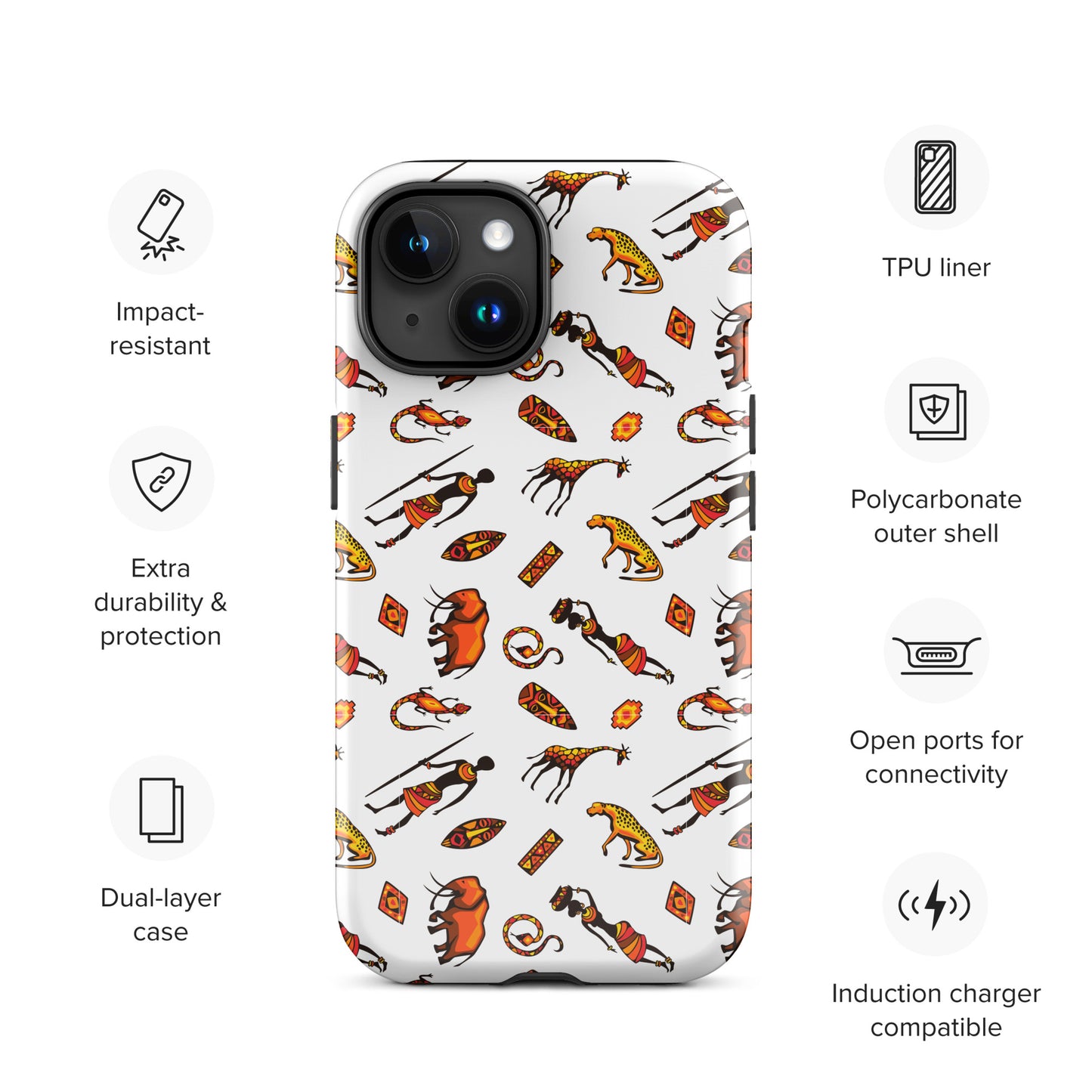 African Bushman & Wildlife Tough Case for iPhone® - White