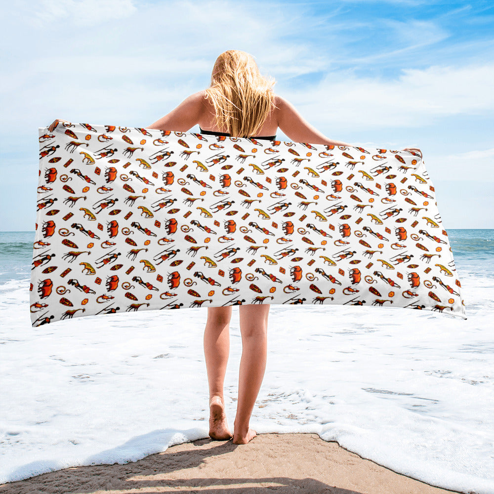 Give your beach adventures a vibrant look and wrap yourself up with this super soft and cozy African Bushman & Wildlife sublimation towel.