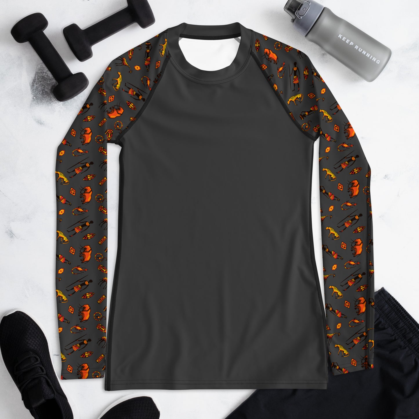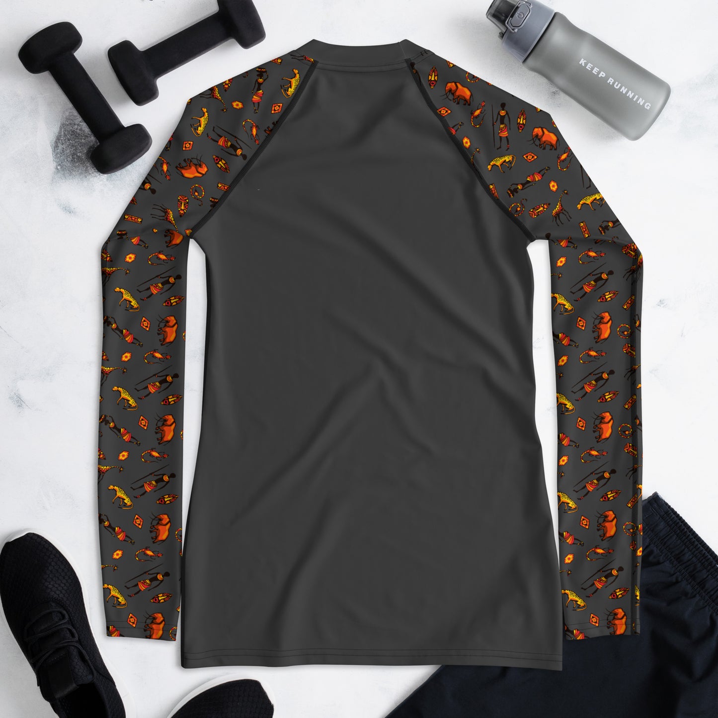 African Bushman & Wildlife Women's Rash Guard - Sleeves/Gray