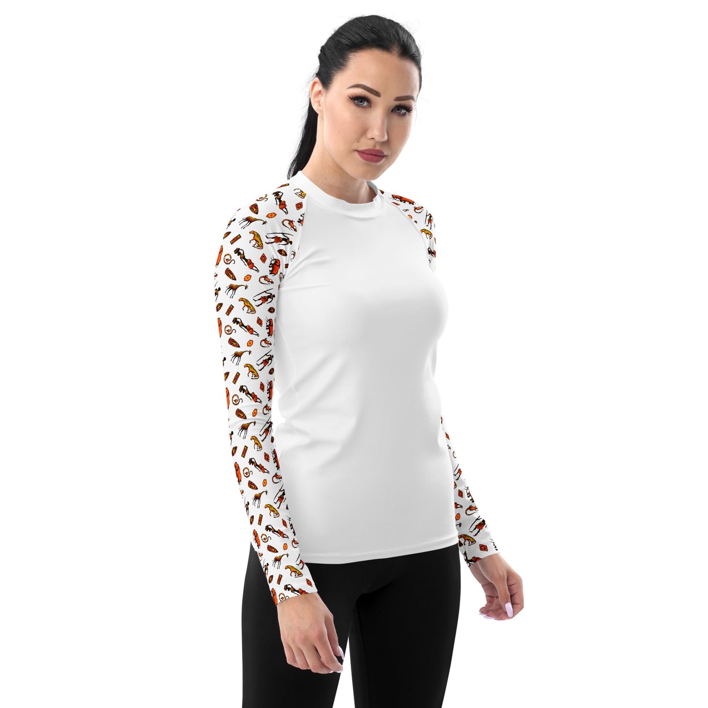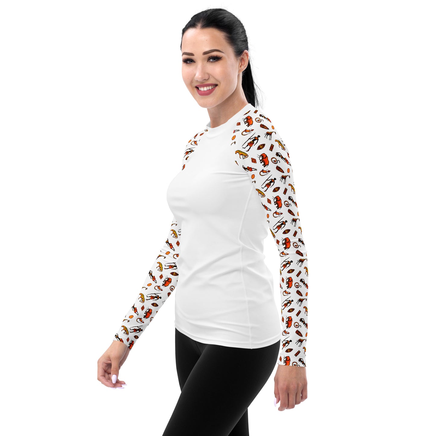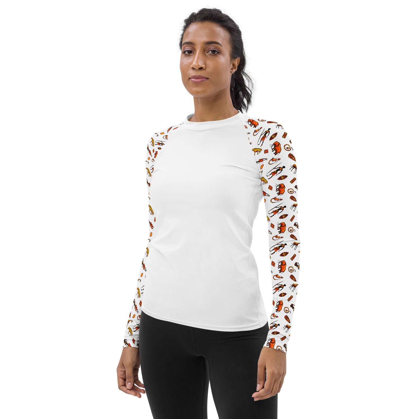 African Bushman & Wildlife Women's Rash Guard - Sleeves/White