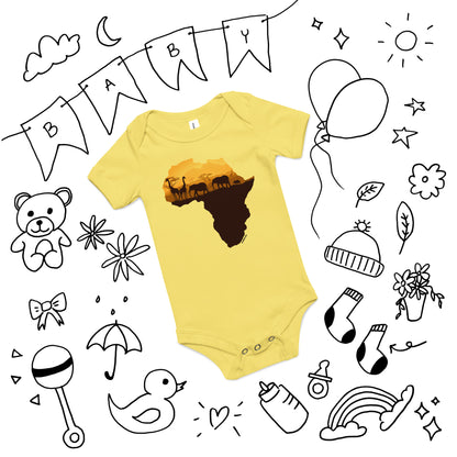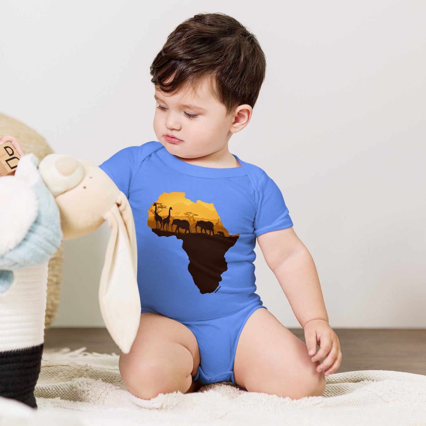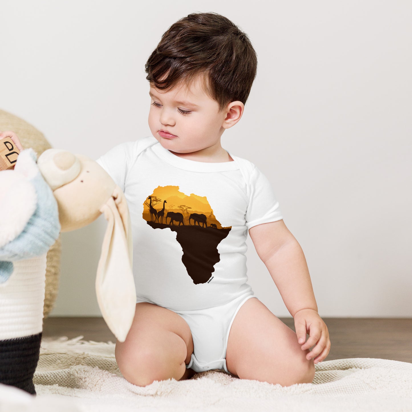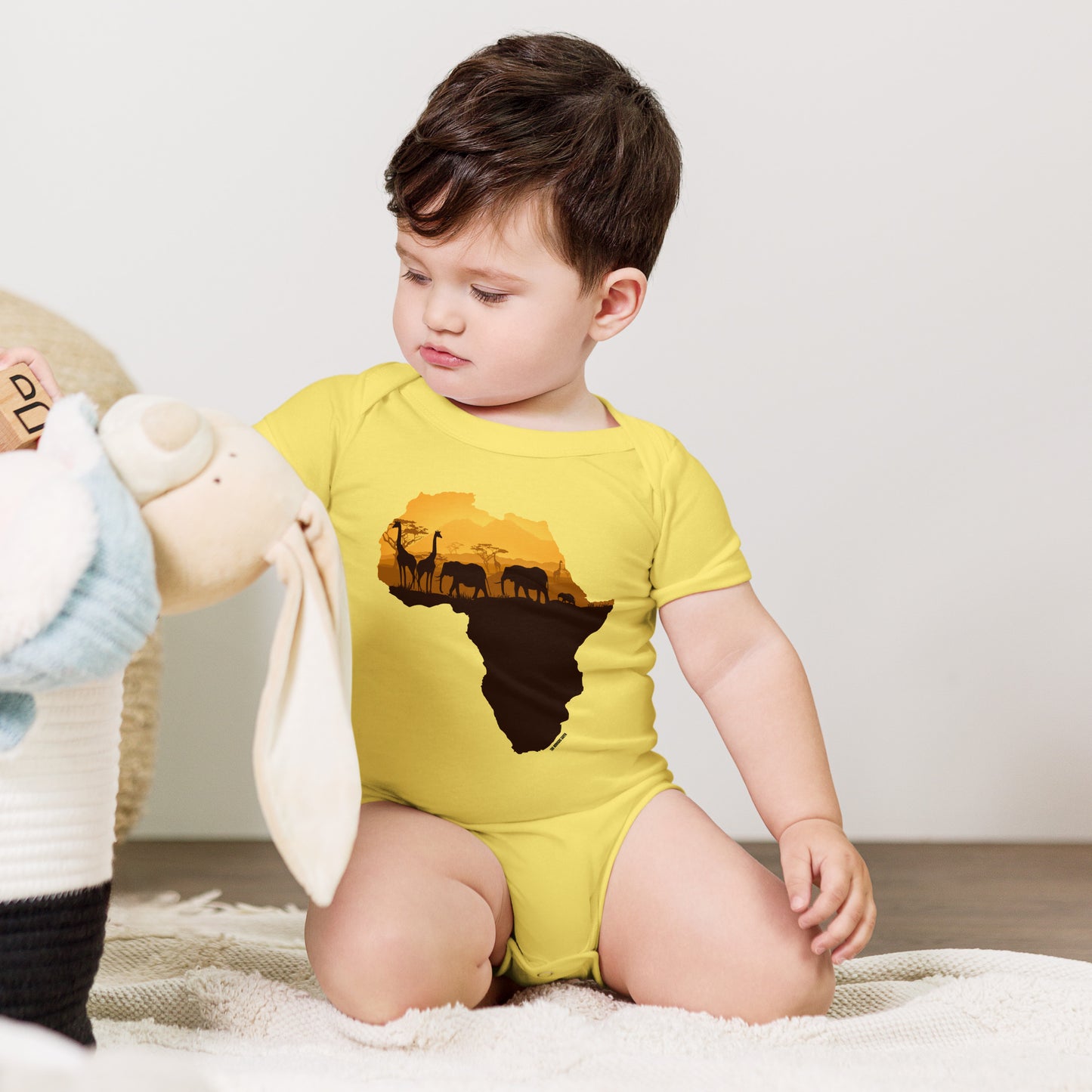 Dress your baby to the nines with this 100% African Soul cotton one piece. It has three snap leg closure for easy changing, a comfortable envelope neckline, and a beautiful print that's bound to get the baby all happy and giggling.