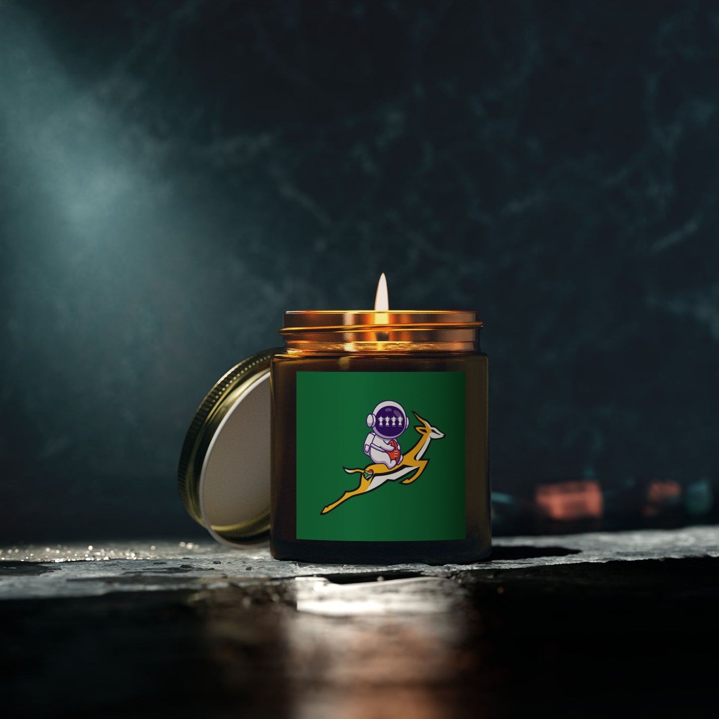 These Astrobok Springbok Flying scented candles are hand-poured in the USA, and made from premium coconut apricot wax with cotton wicks that are lead and zinc-free. With a burn time of approximately 20 hours, they provide long-lasting fragrance and warmth. The candles come in 9 scents, as well as in elegant amber and classic clear vessels, topped with a stylish gold lid, making them a beautiful, ambient addition to any space.
