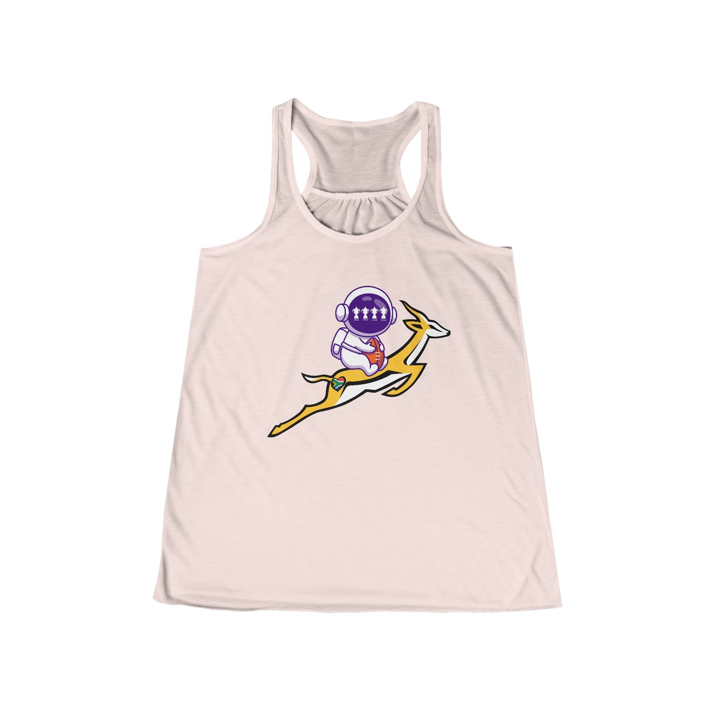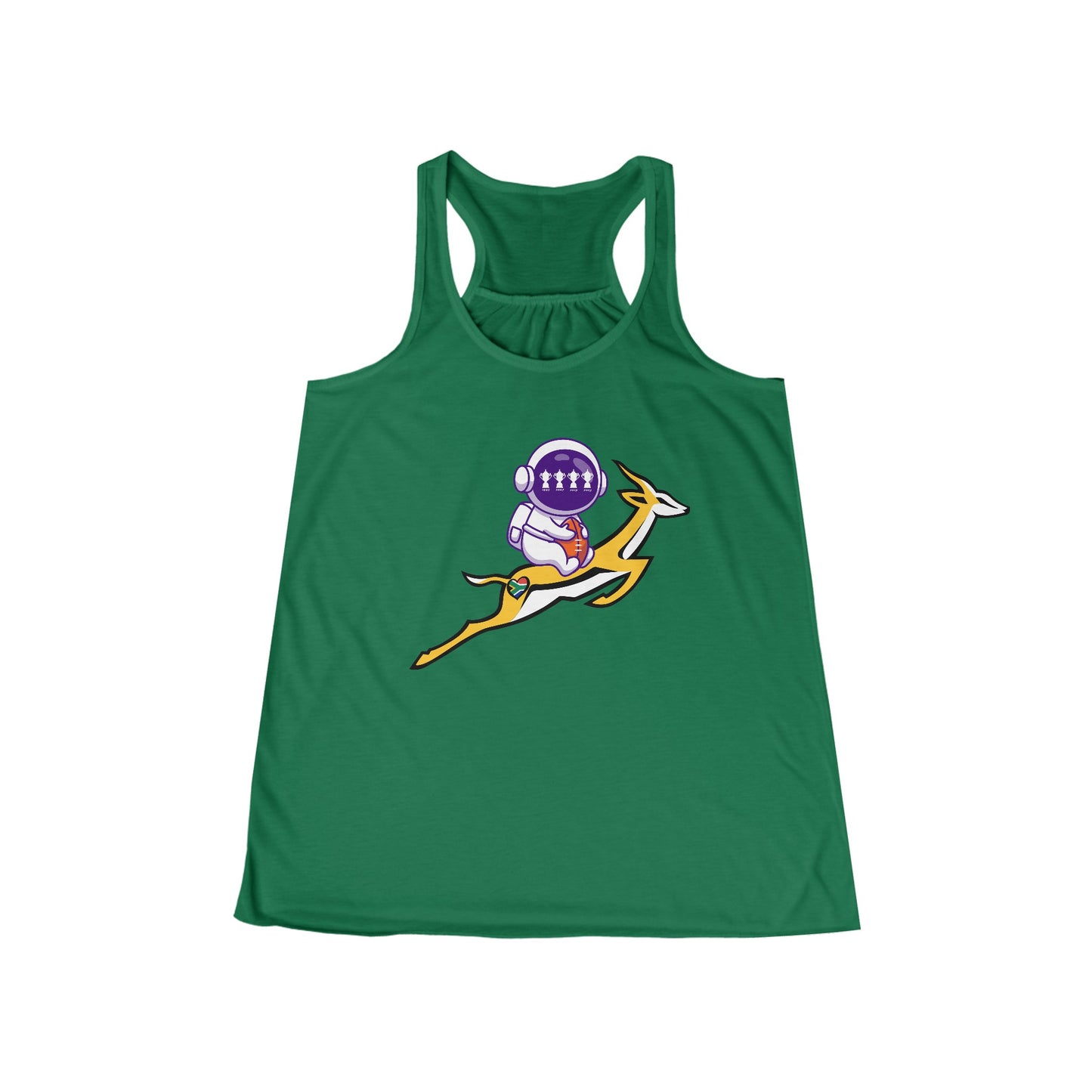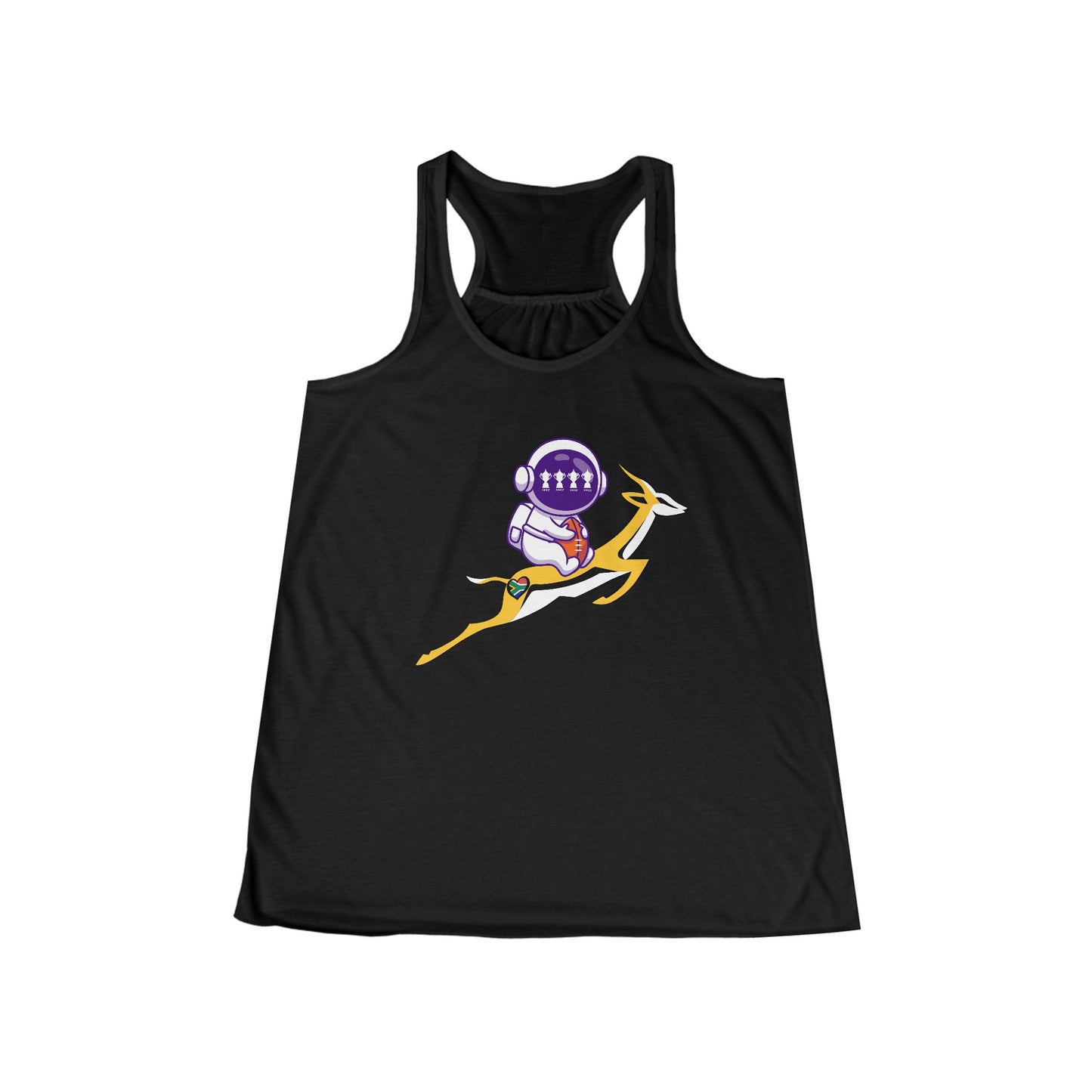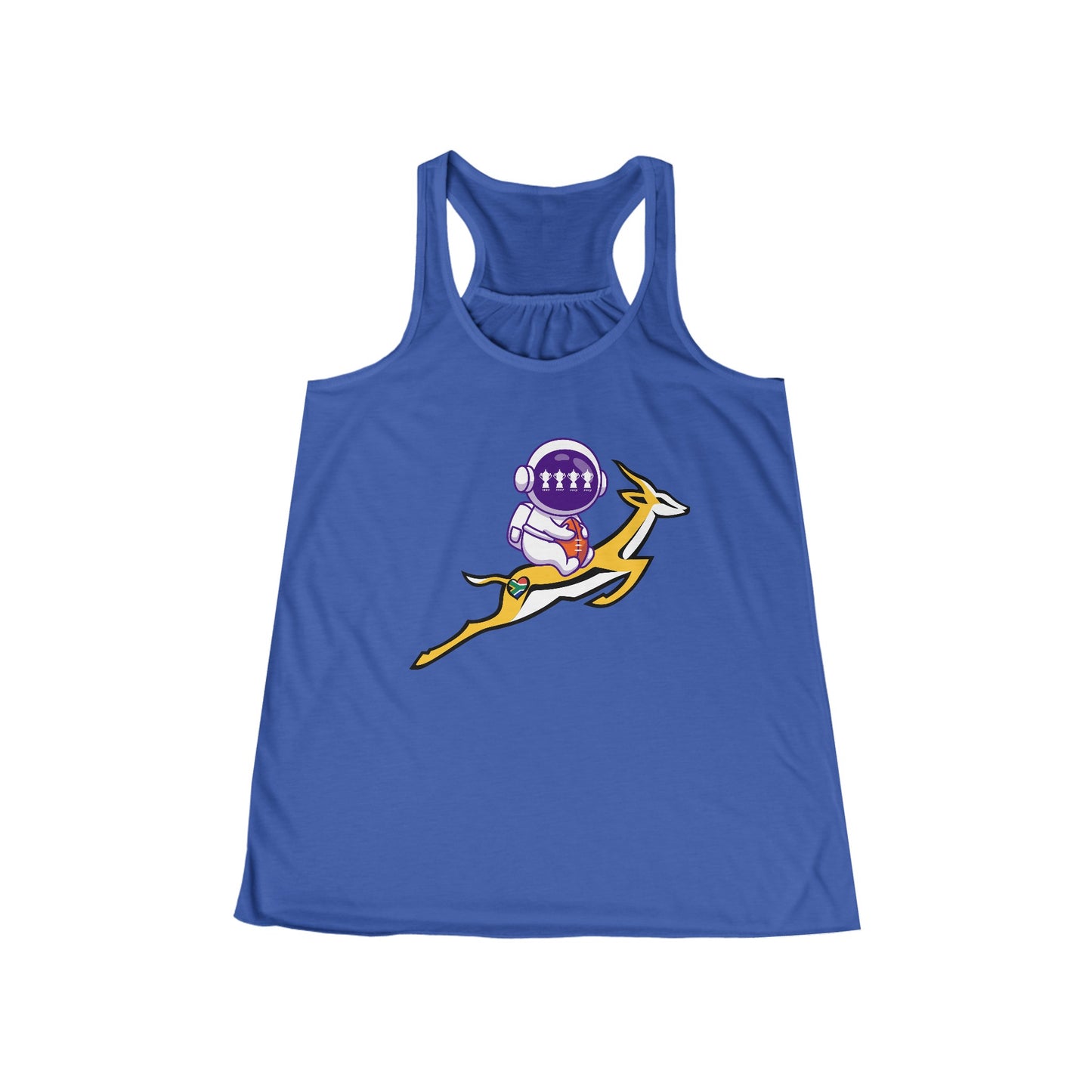 Astrobok Flying - the perfect gift for a Springbok Fan! This women's flowy racerback tank is the go-to tank for sporty types. It boasts a flowy look that flatters the silhouette. A surefire method to turn heads, a customized racerback tank looks great and feels better. Overlocking side seams hold the shape of the strong polyester material. A self-fabric binding with overlock is both decorative and protective.