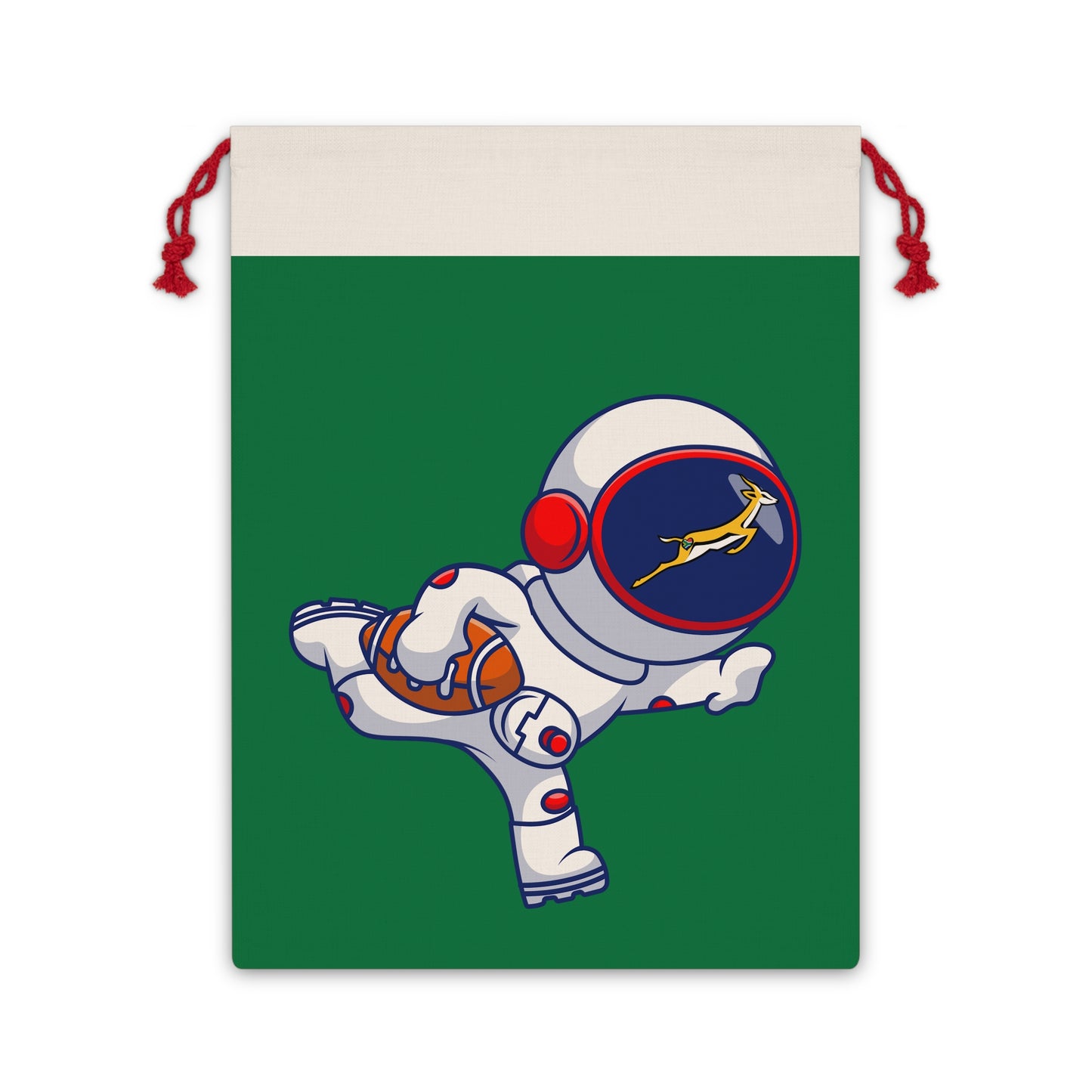 Add an eco-friendly twist to gift-giving with a 100% linen Astrobok Rugby Fan gift bag. This custom Springbok animal gift bag can hold anything from small items and gifts to candy and treats. What’s more, this bag can be used as a trusty laundry bag, a Santa Sack for Holiday gifting, a storage bag, or a green alternative to plastic bags for daily shopping.