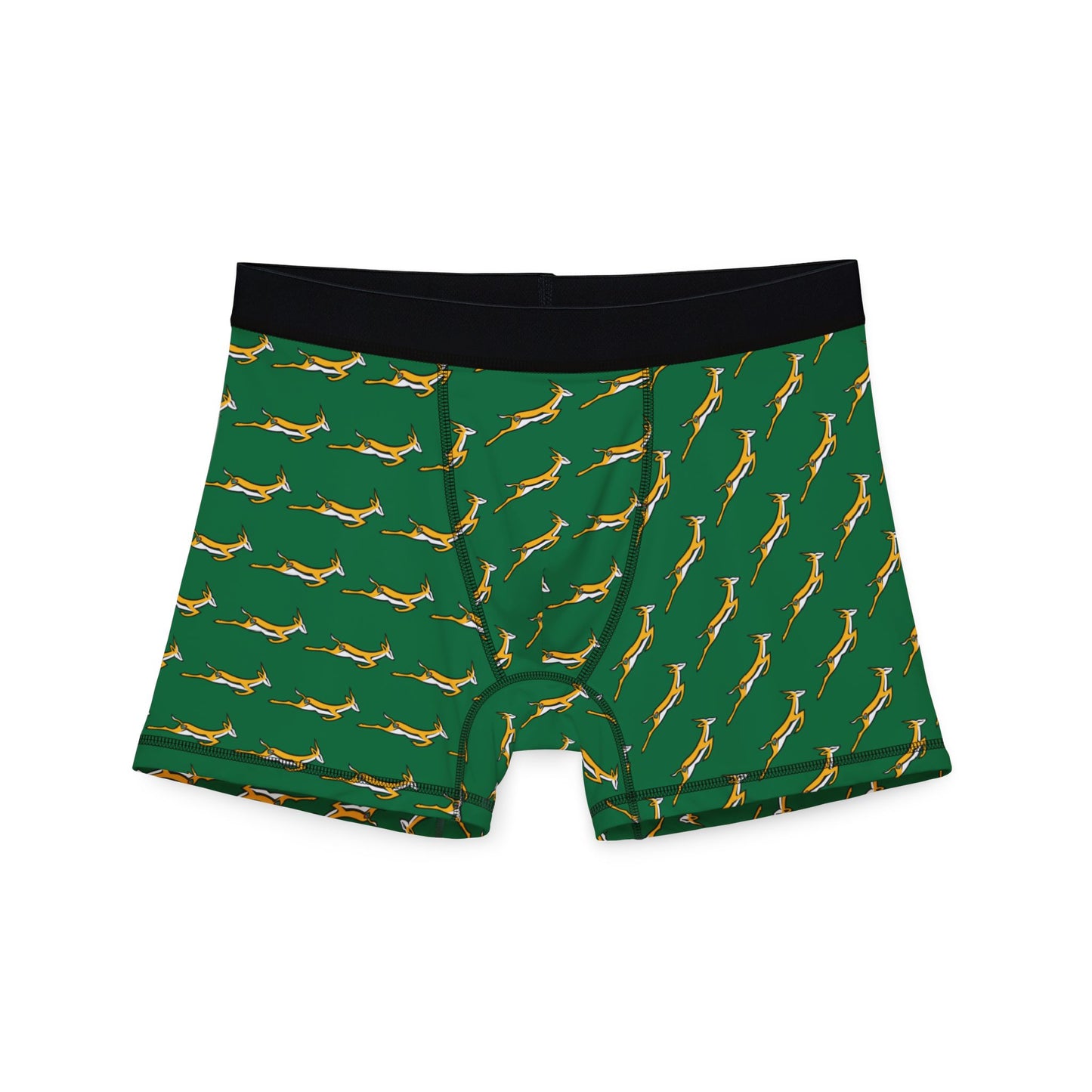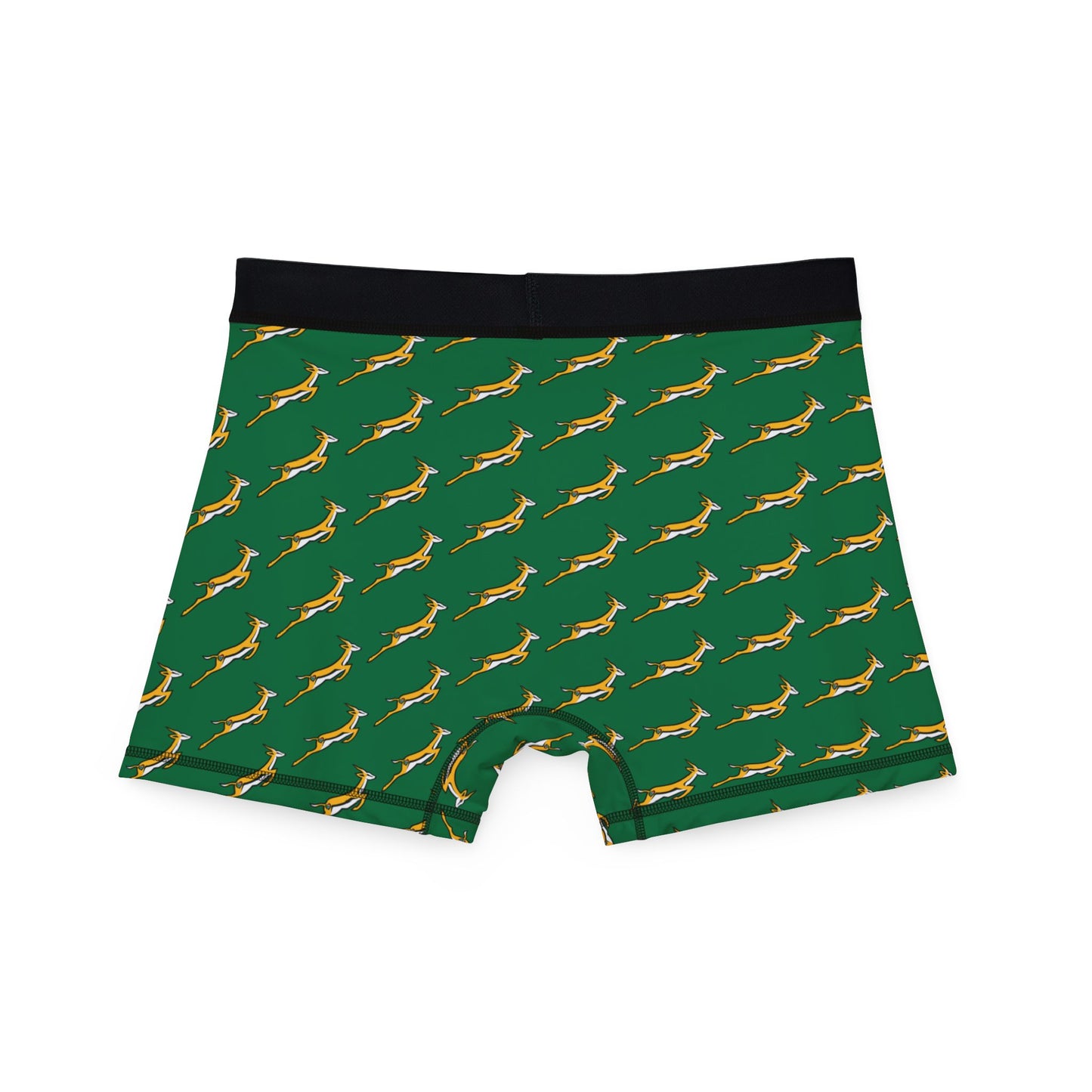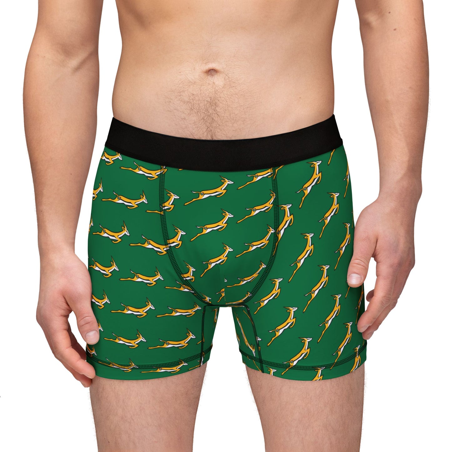 These personalized Springbok Fan men's boxers feature a highly comfy, scratch-free fabric blend that's 92% polyester and 8% spandex that is stretchy and soft to the skin. All boxers can be customized with all-over-print designs and come with different printable areas (pouch and inseam) so that you can create instant-favorites with zany patterns and contrasting colors. Available in 5 different sizes to ensure a perfect fit.