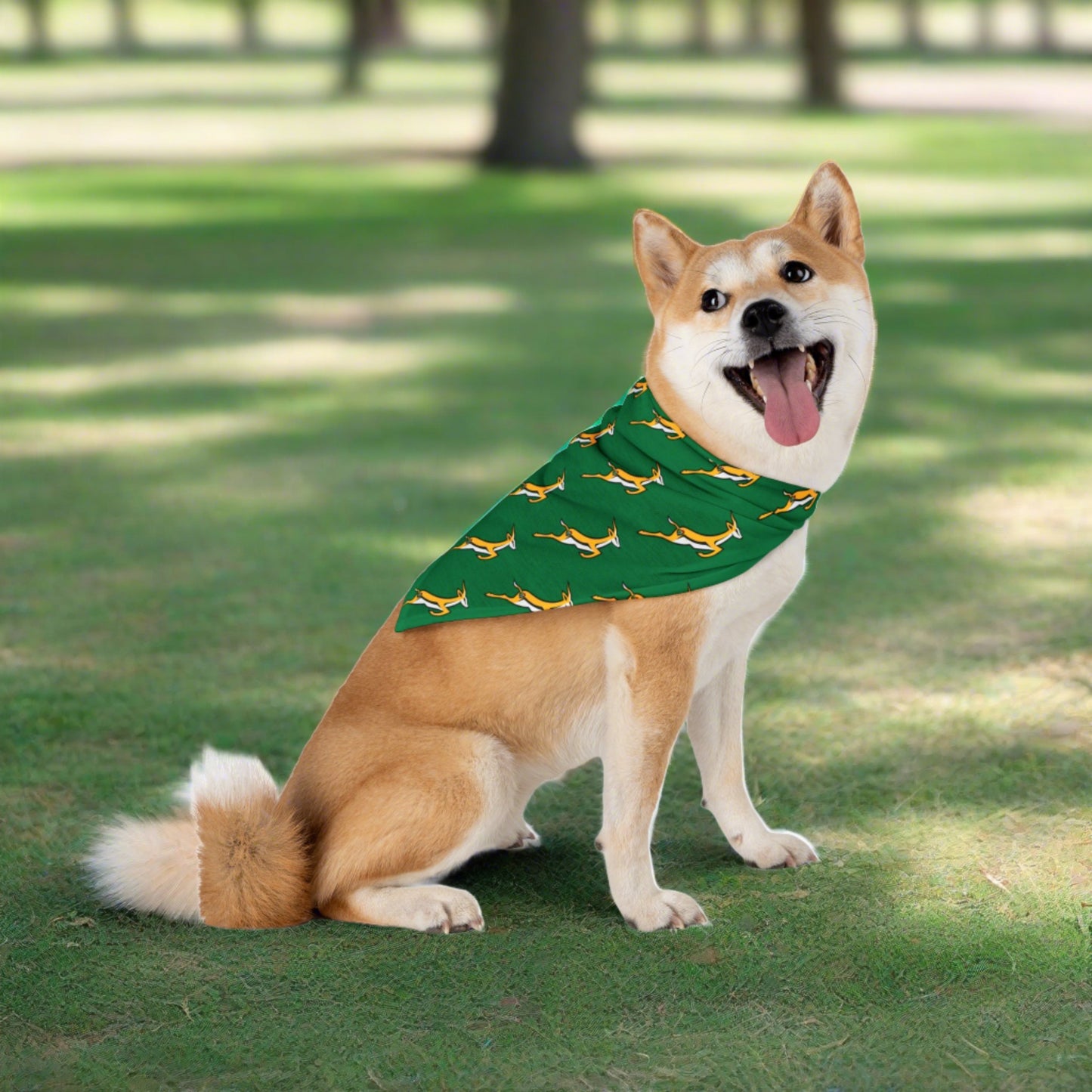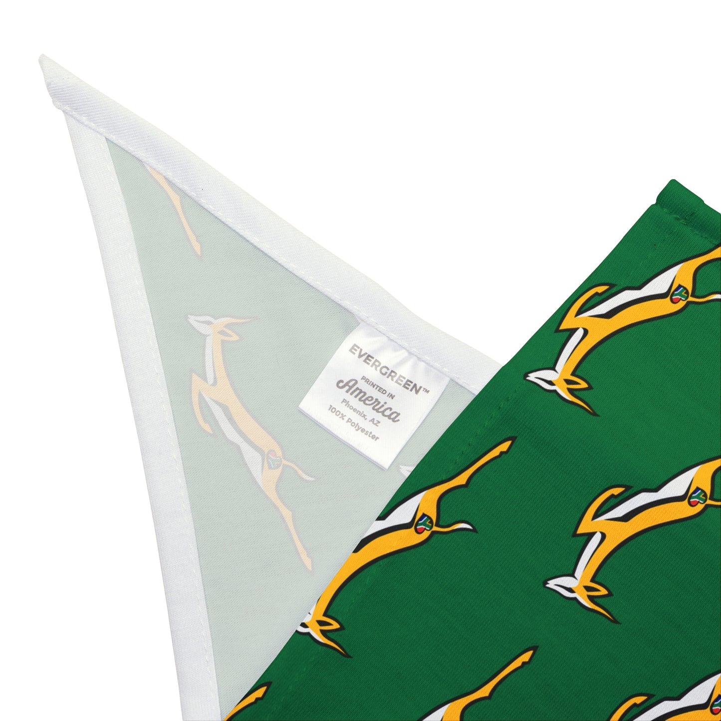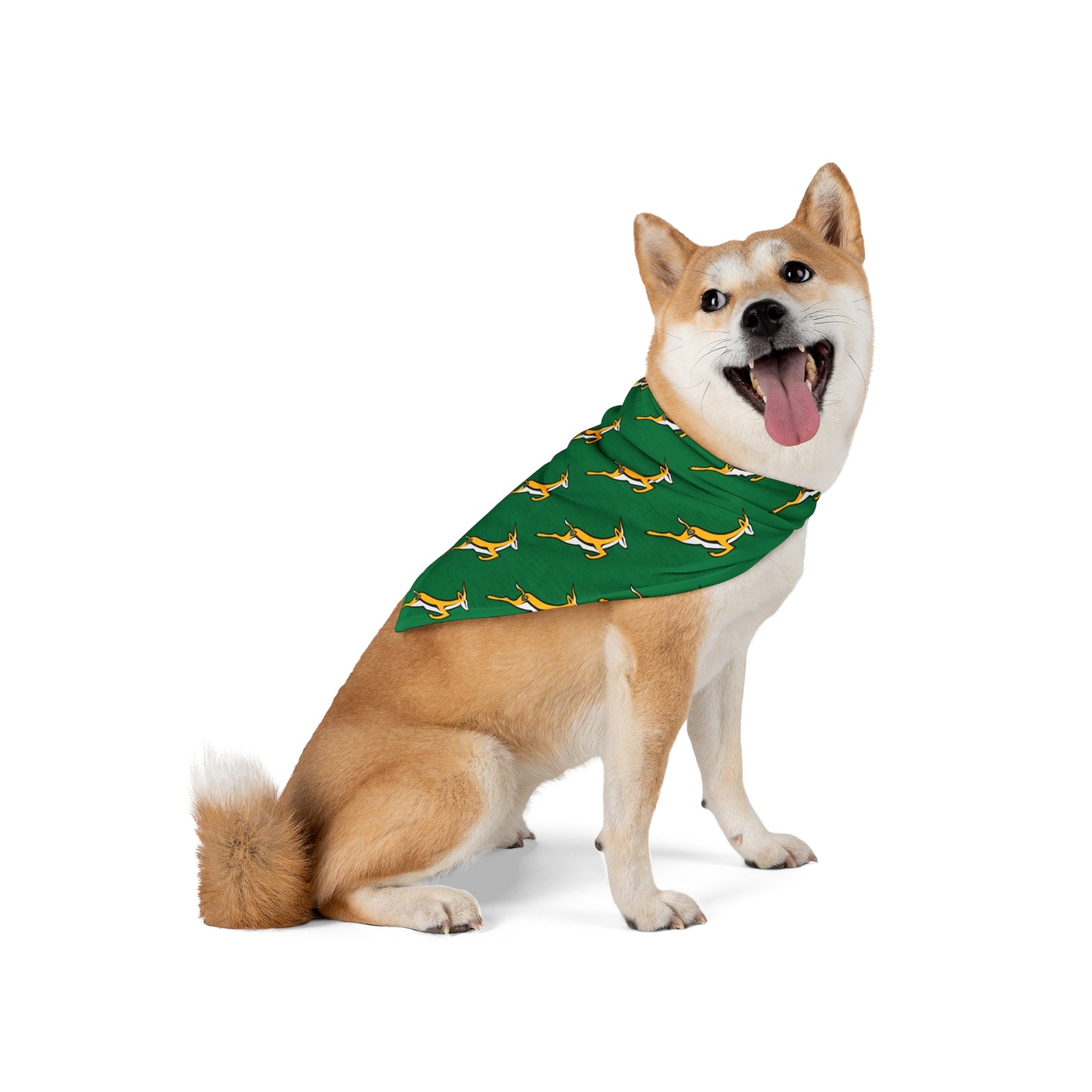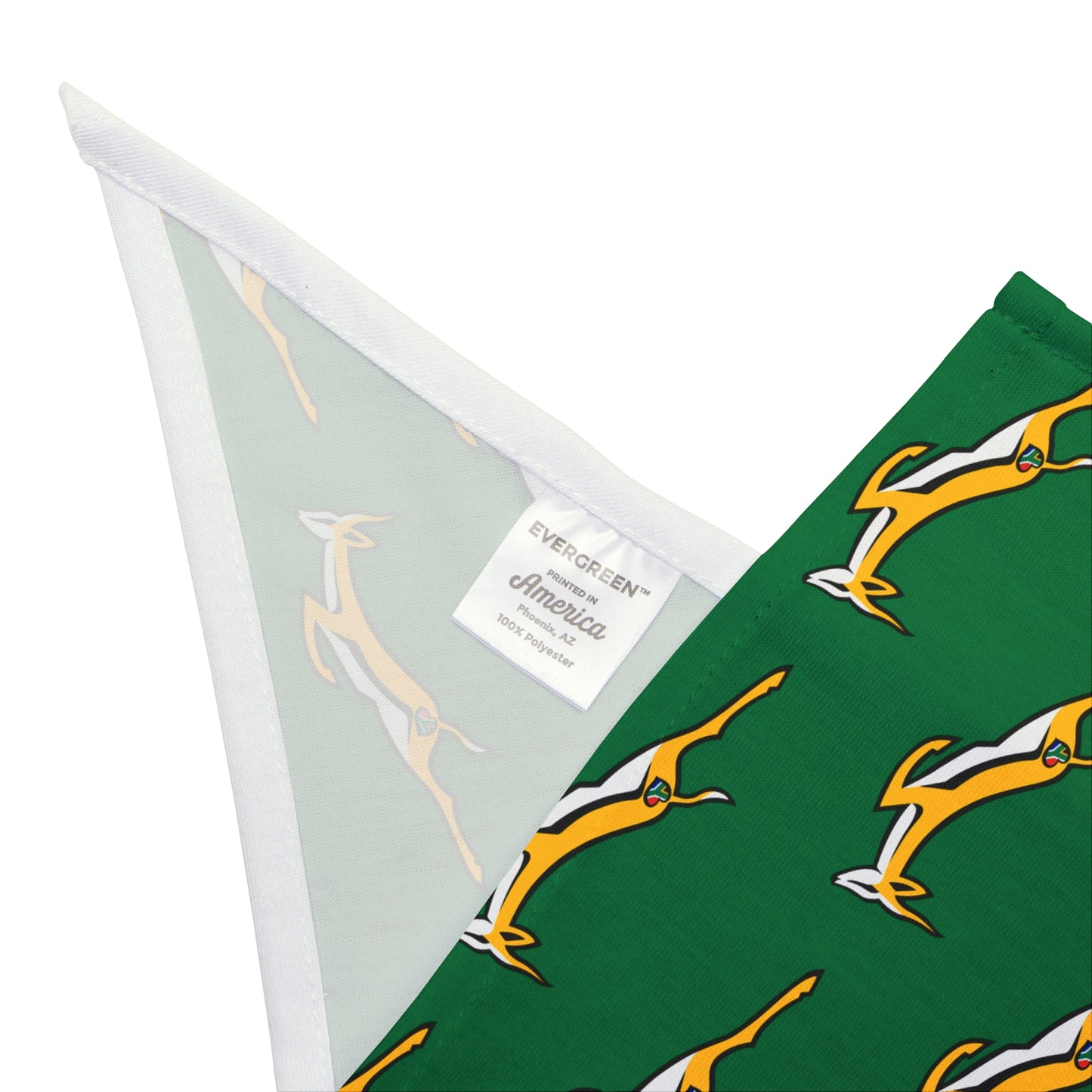 The Boks in Green dog bandana is a great way to add some personality to your pet. Made of soft-spun polyester, the fabric will not bunch or irritate your pet’s skin. While animals already have their own character, a custom pet bandana can help bring things to the next level. .: Material: 100% polyester .: Available in 2 sizes: 20" × 9.75" (50.8 × 24.8cm) and 27" × 13" (68.6 × 33.0cm) .: One-sided print .: Sewn in label .: Pre-constructed item (size varies +/- 1"(2.5cm))