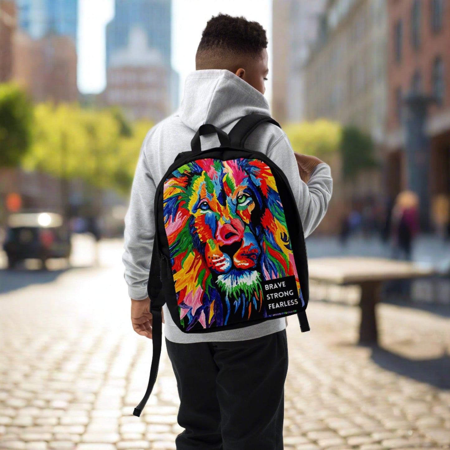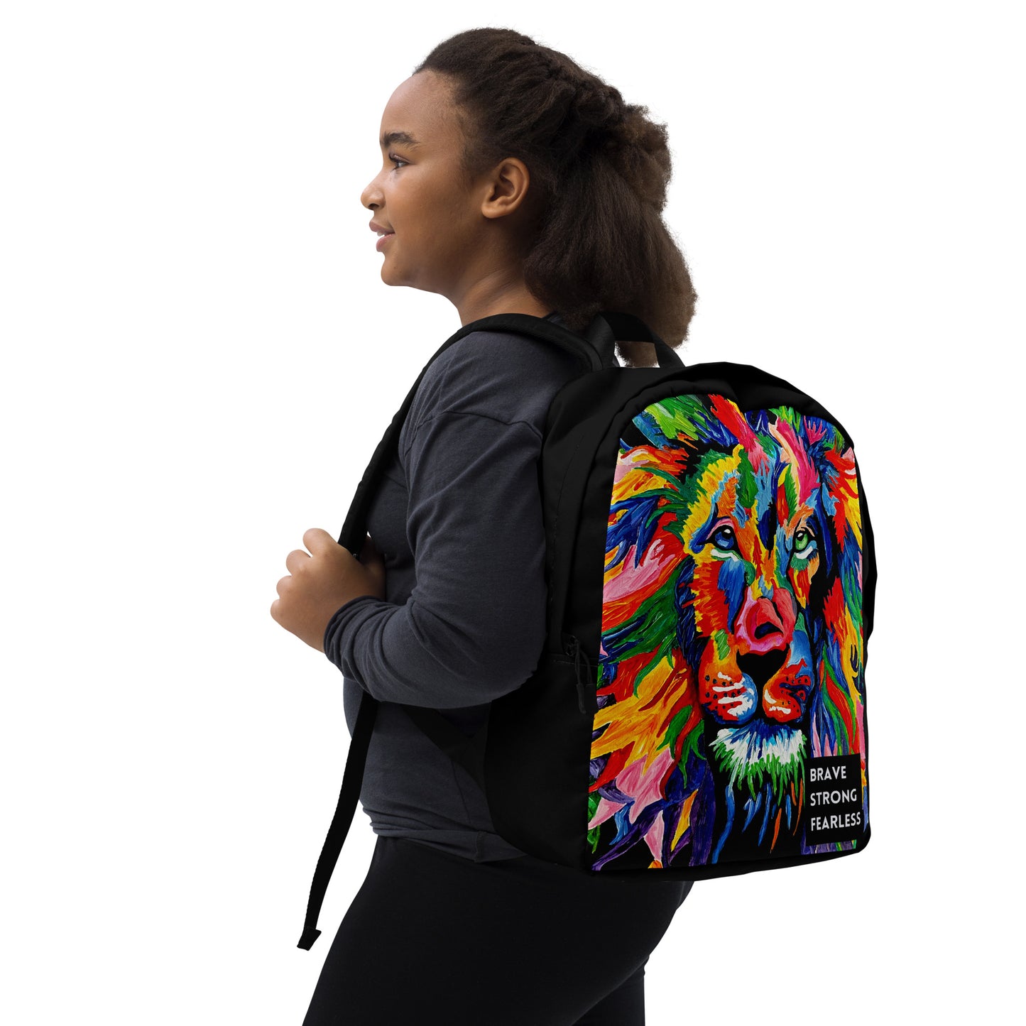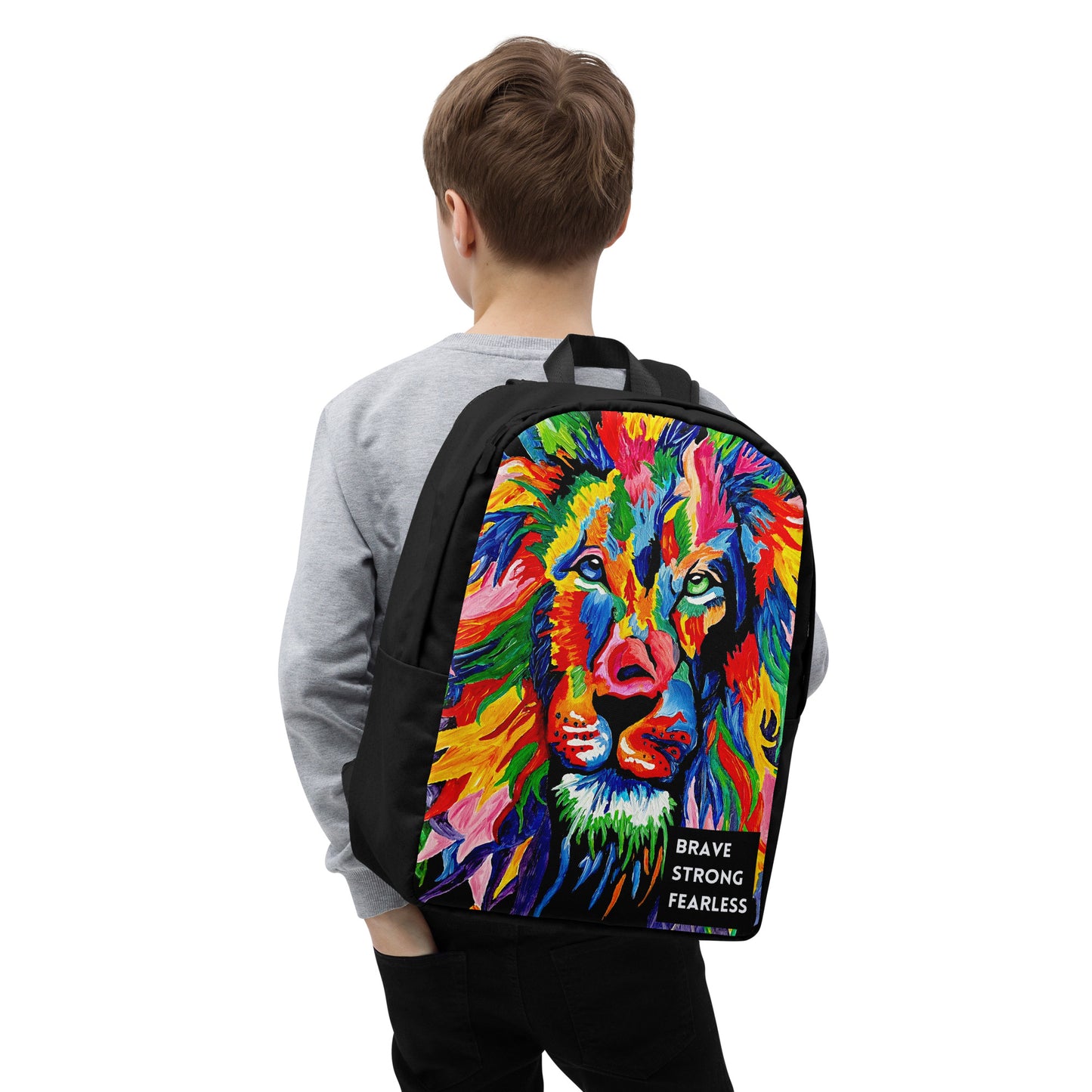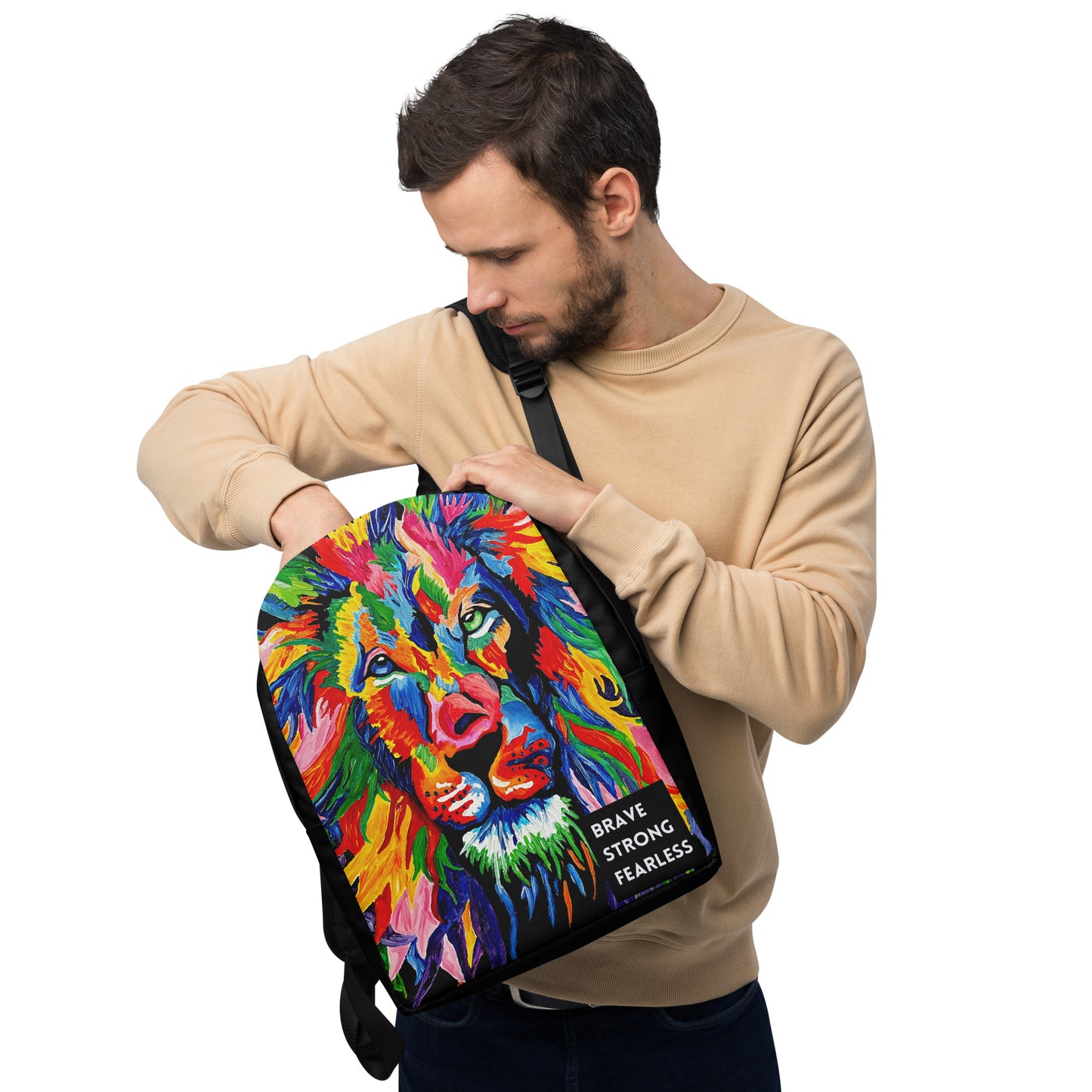 Brave, Strong, Fearless Rainbow Lion Minimalist Backpack