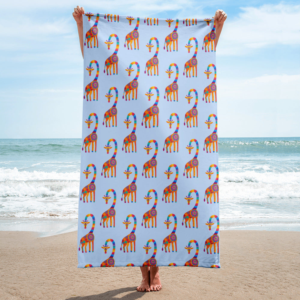 Give your beach adventures a vibrant look and wrap yourself up with this super soft and cozy Curious Giraffe sublimation towel.