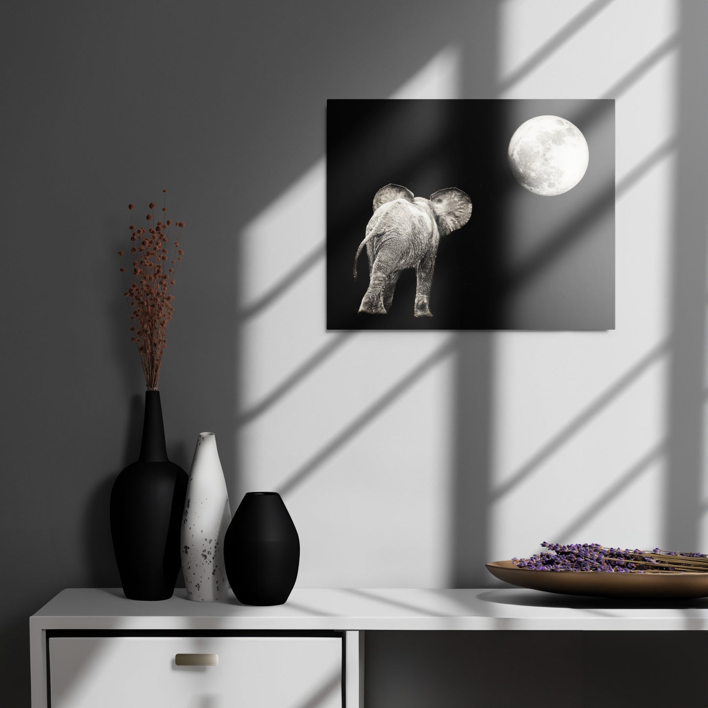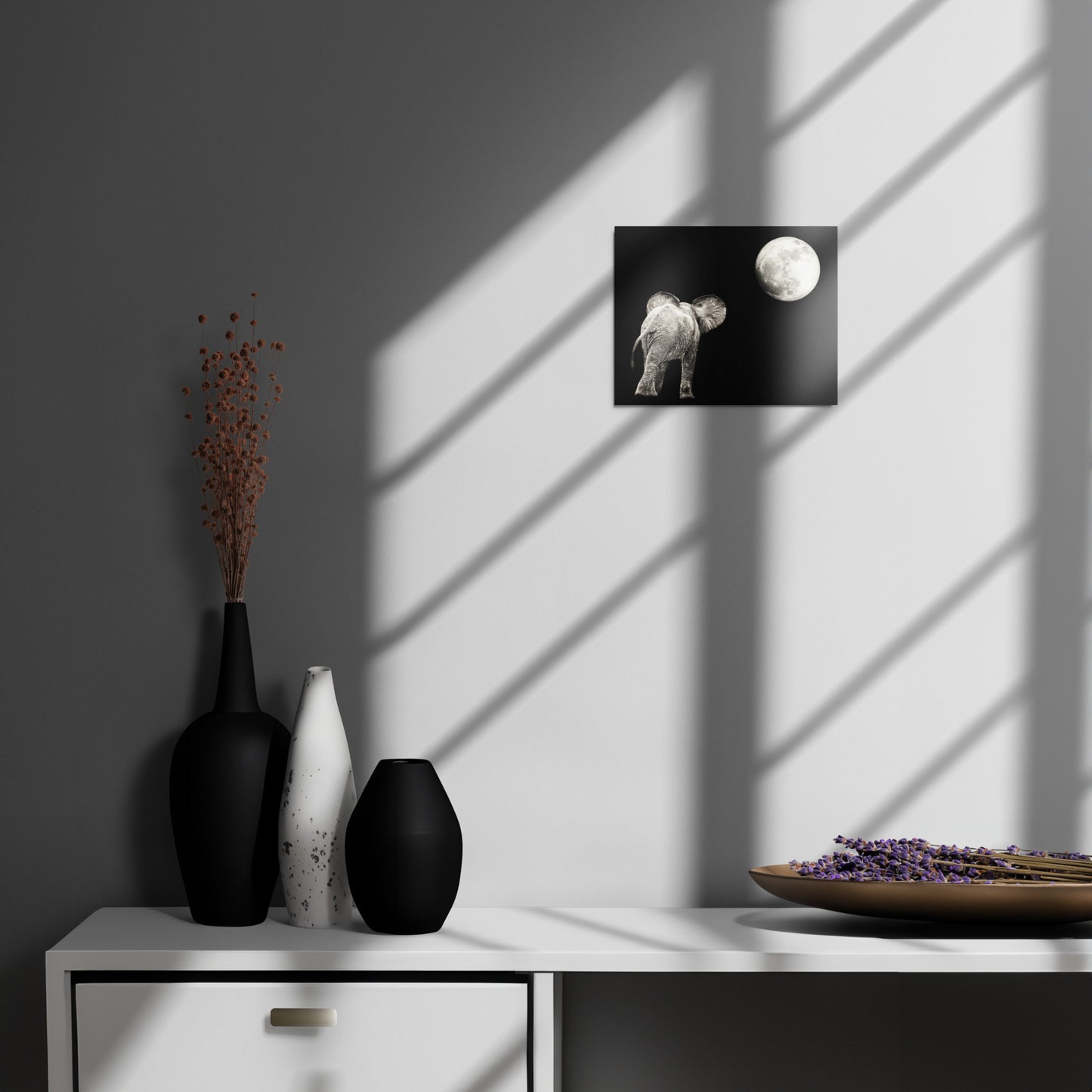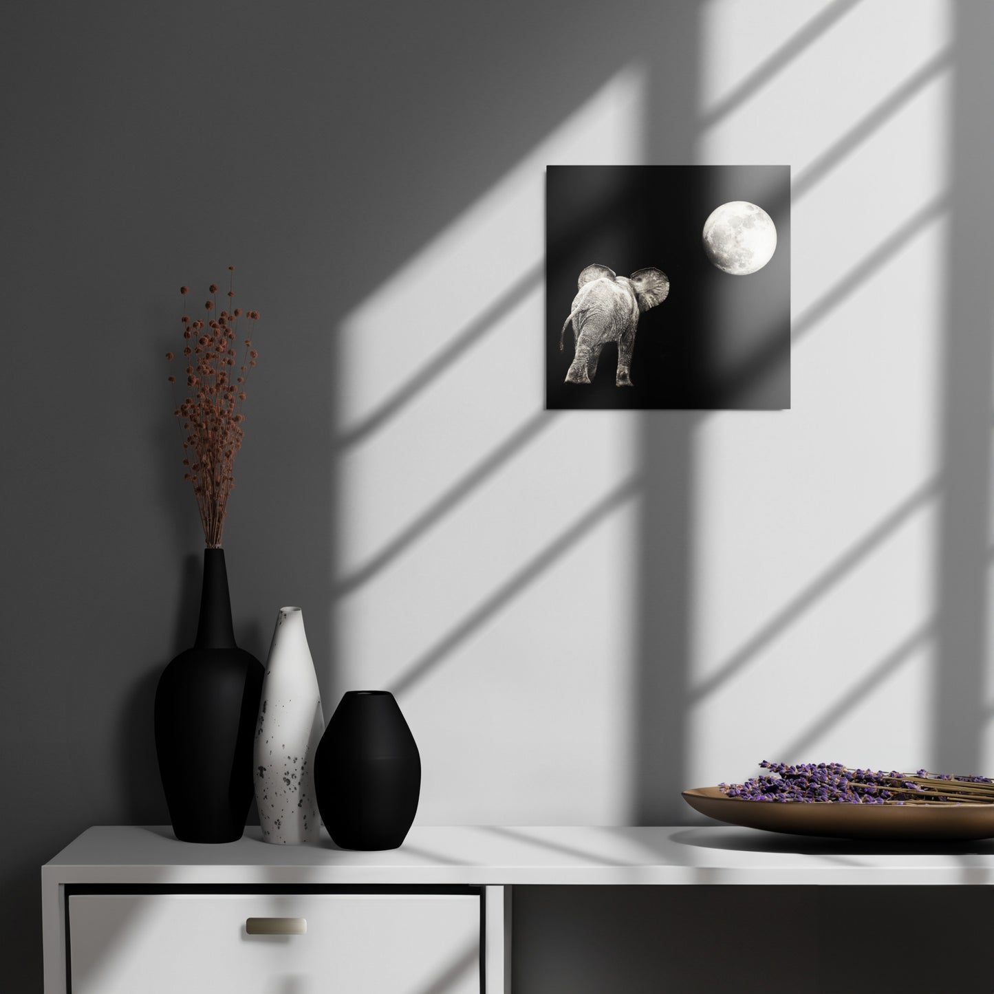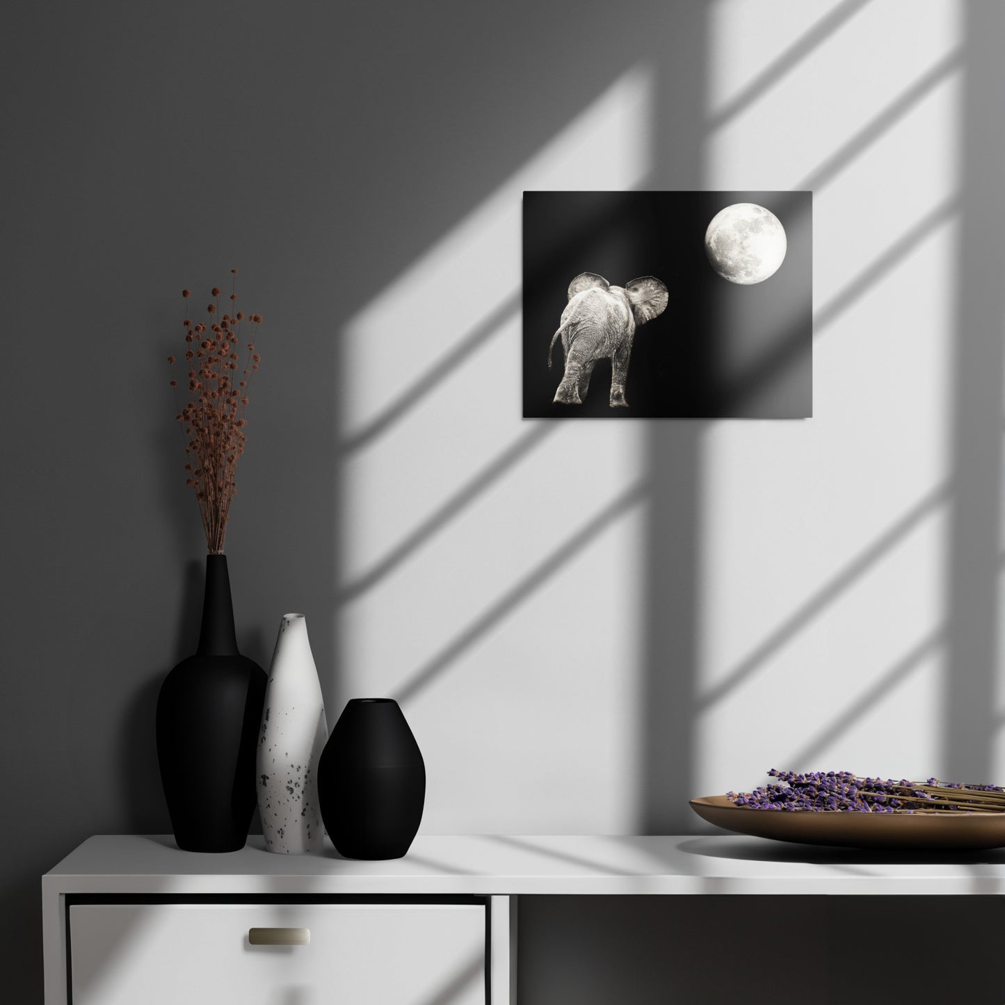 This Elephant & Moon metal print is a dimensional and high-quality piece of art that stands the test of time while remaining easy to clean and care for. The artwork looks luminescent against the wall and the metal base means it’ll last a long time.