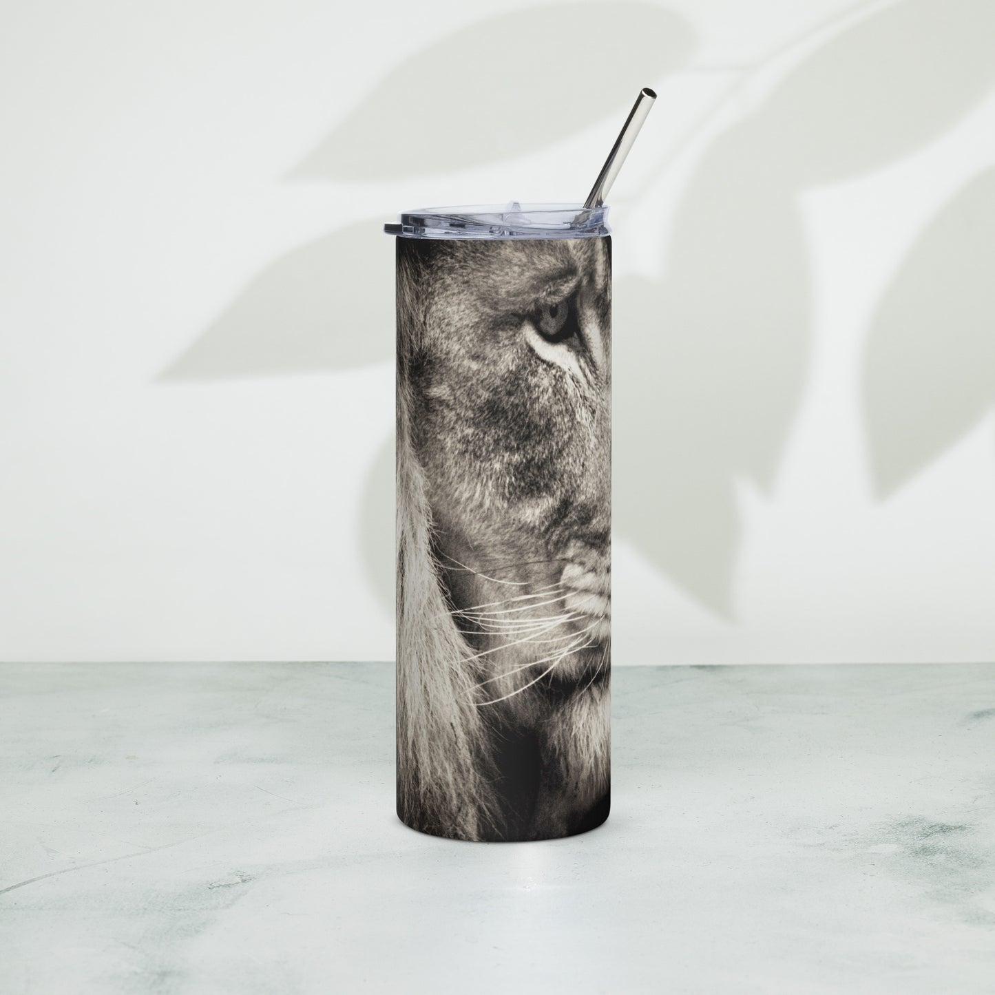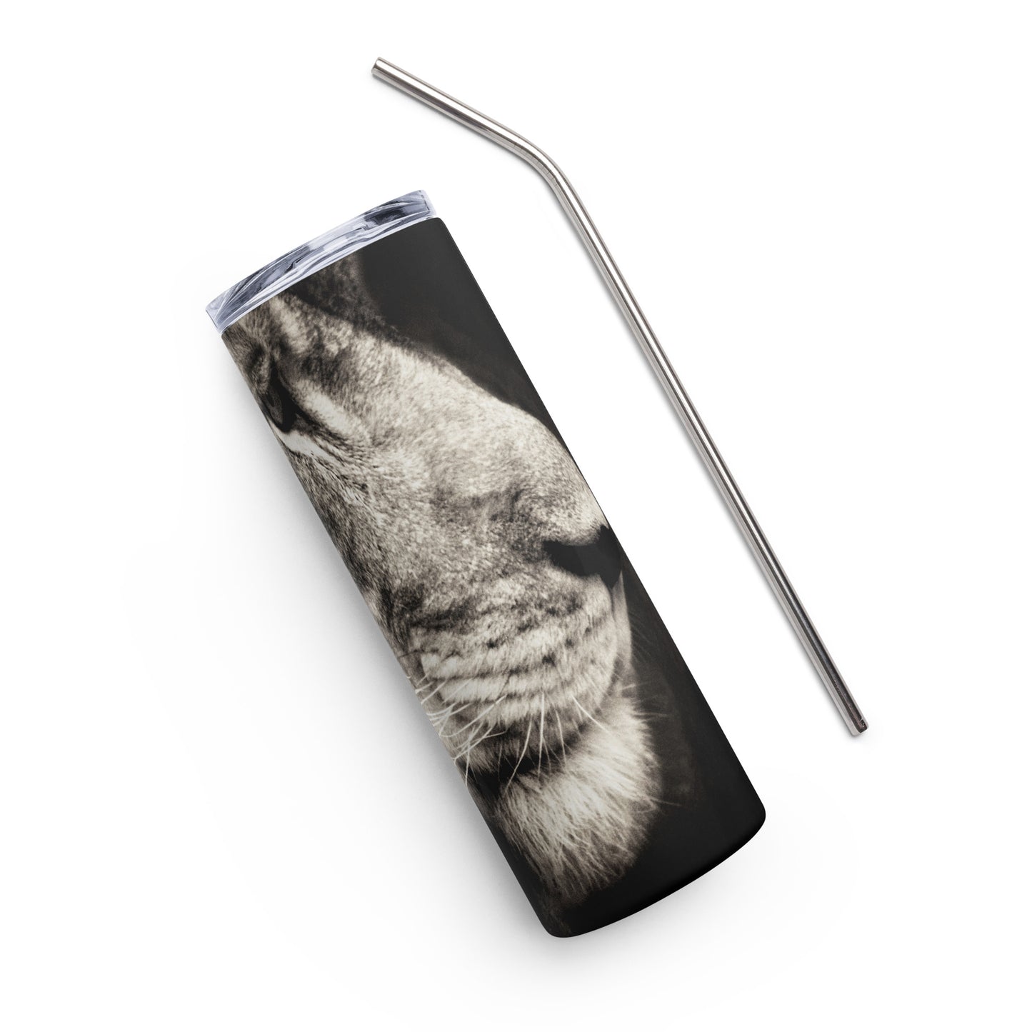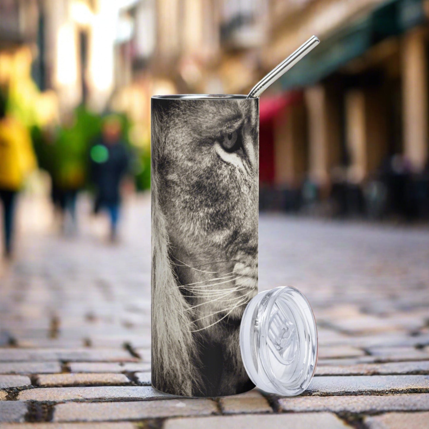 Enjoy hot or cold drinks on the go with this stylish stainless steel Lion tumbler! This reusable tumbler with a metal straw is a perfect combo for hot or cold drinks at any time of the day.