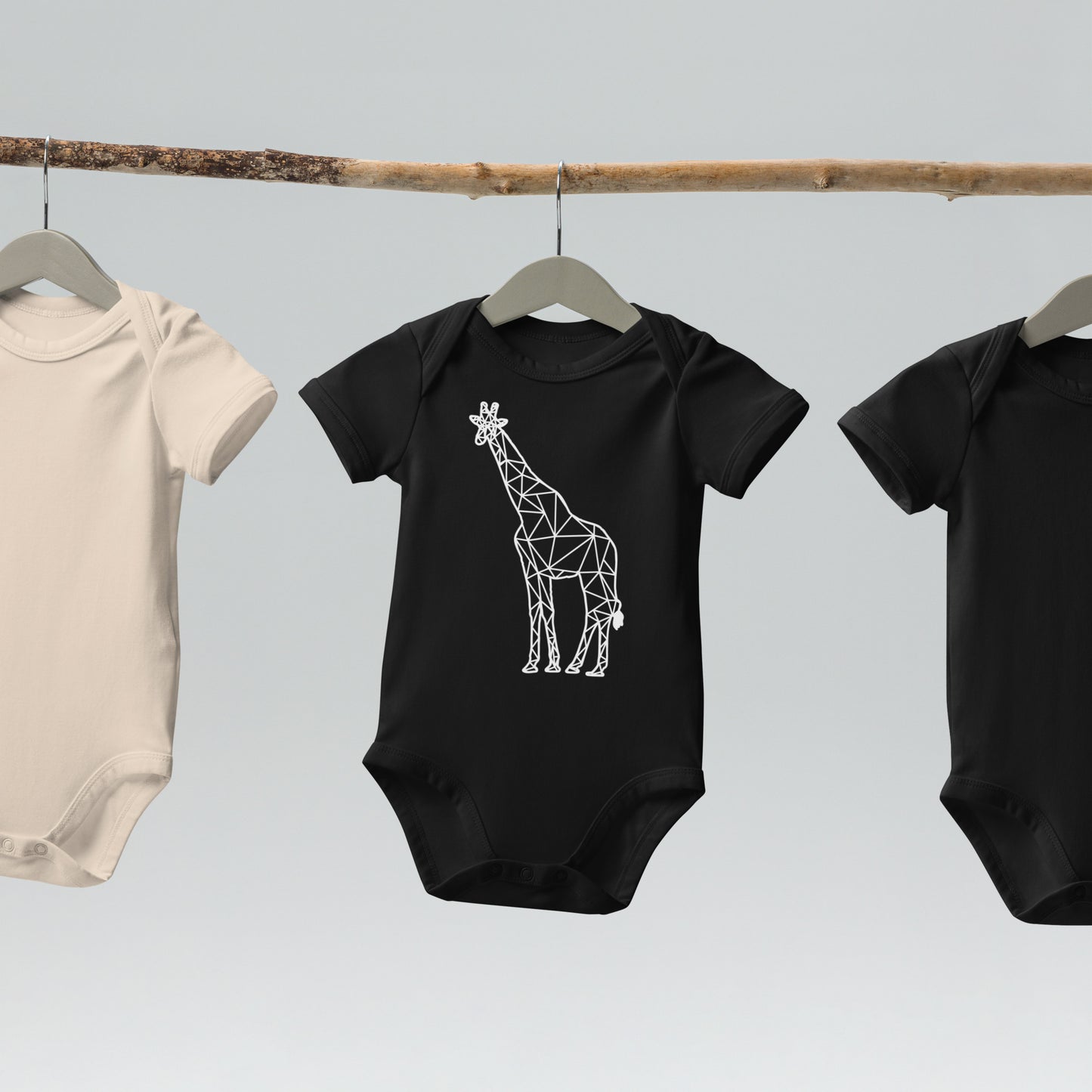 Giraffe Origami Organic cotton baby bodysuit - Black