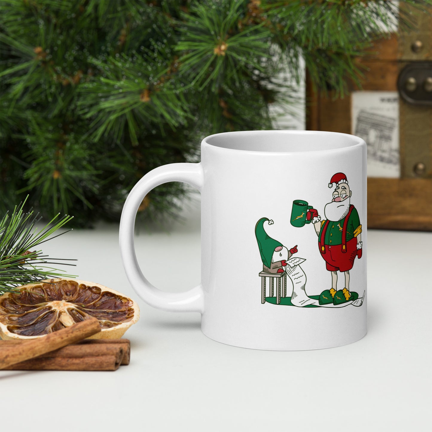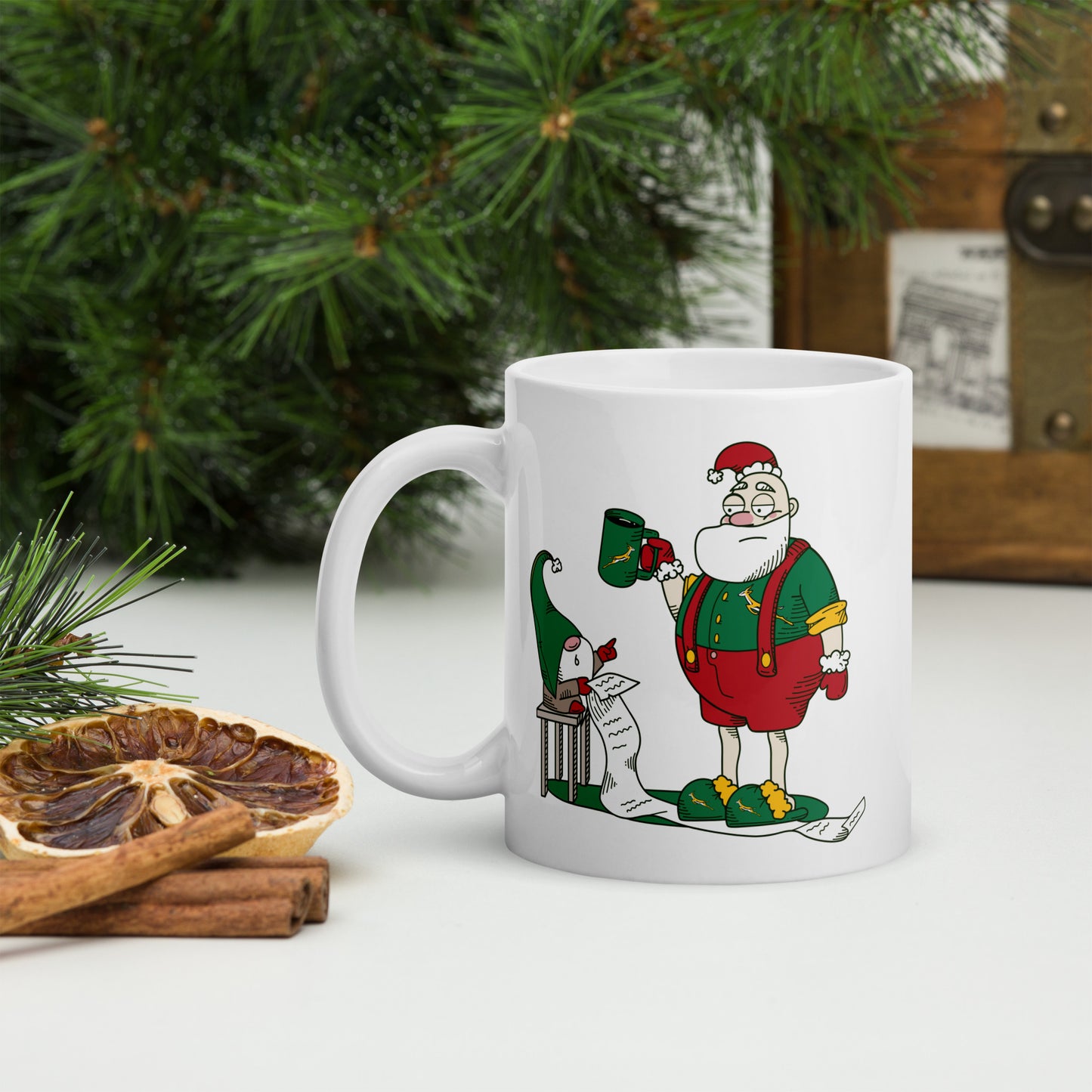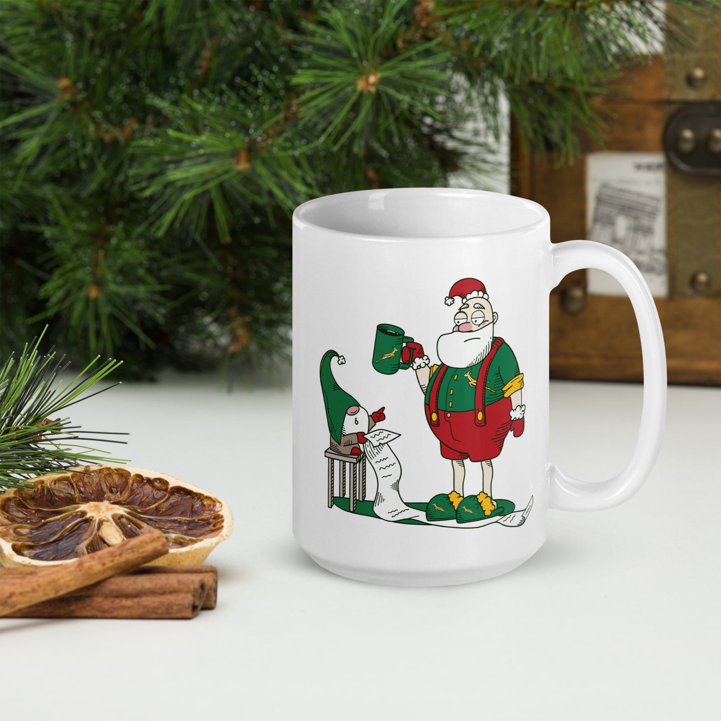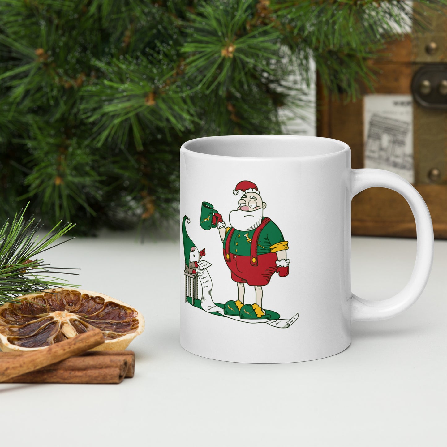 Grumpy Santa Bok Fan White glossy Christmas mug