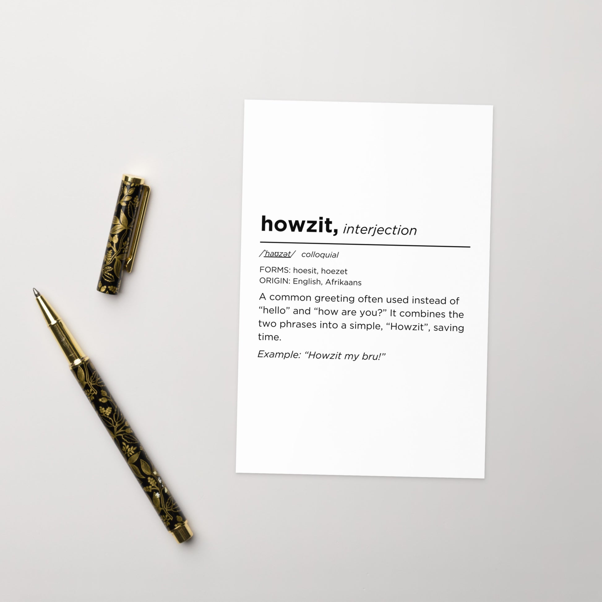Howzit! The perfect card for that certain someone. Take some of the weight off of your shoulders by getting yourself an authentic greeting card!