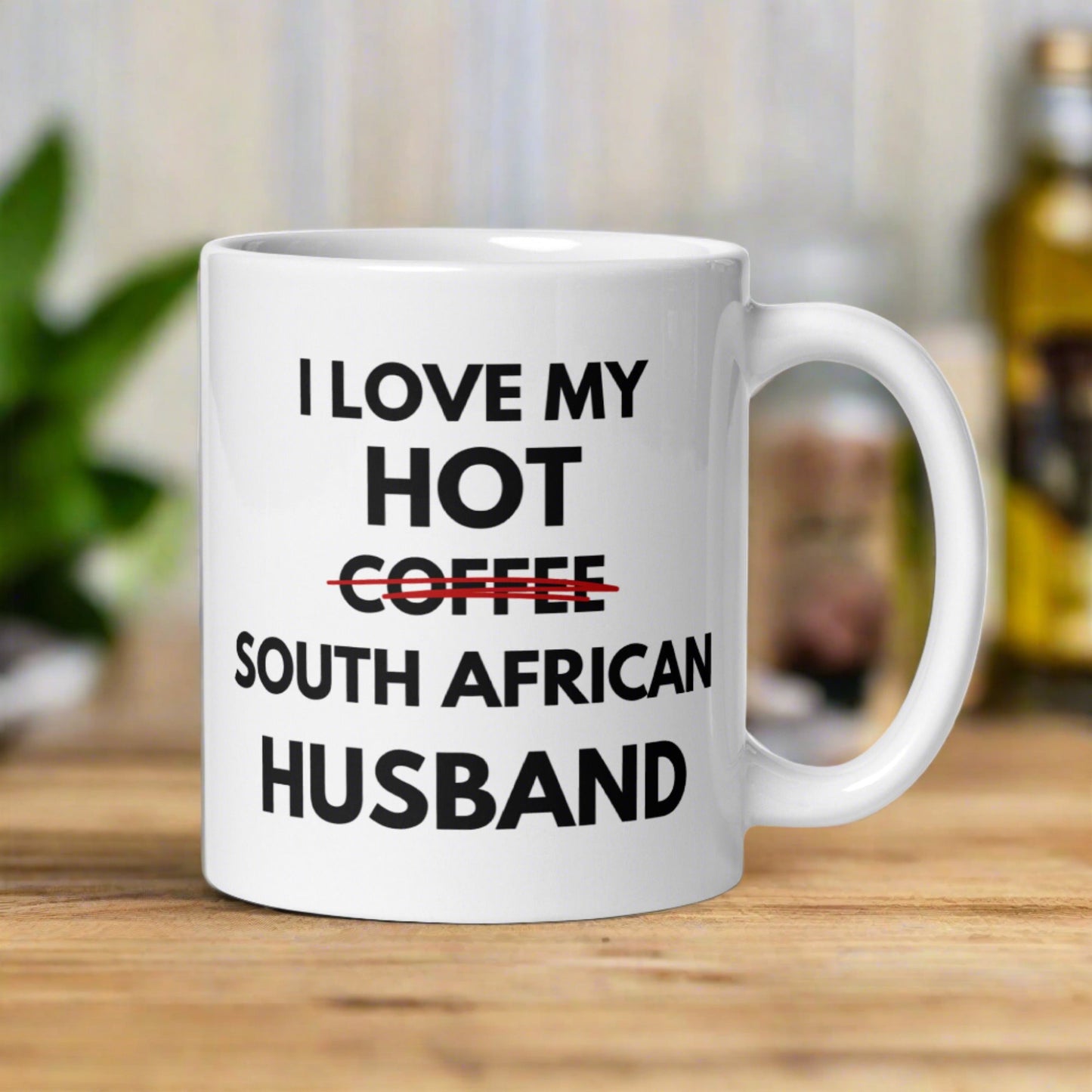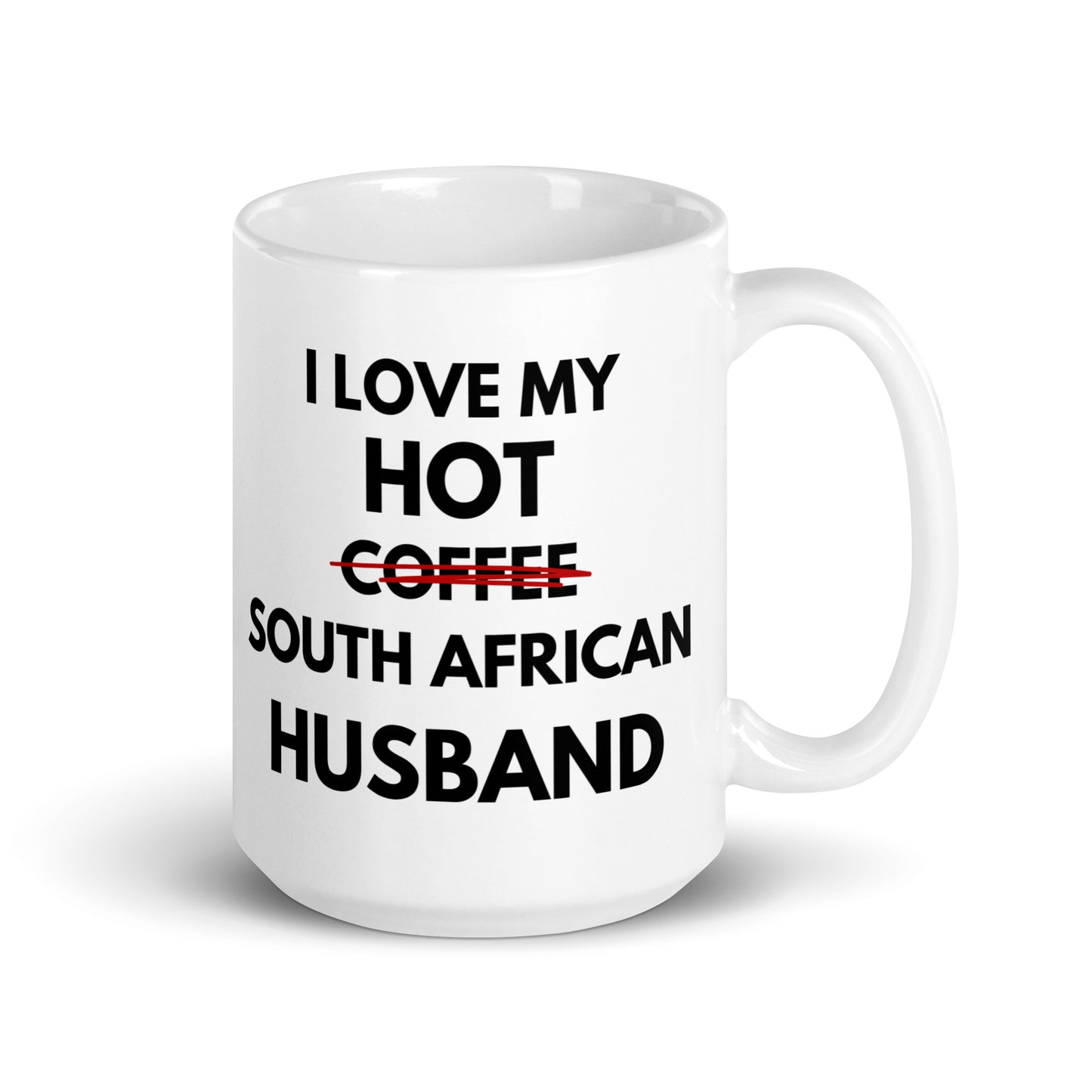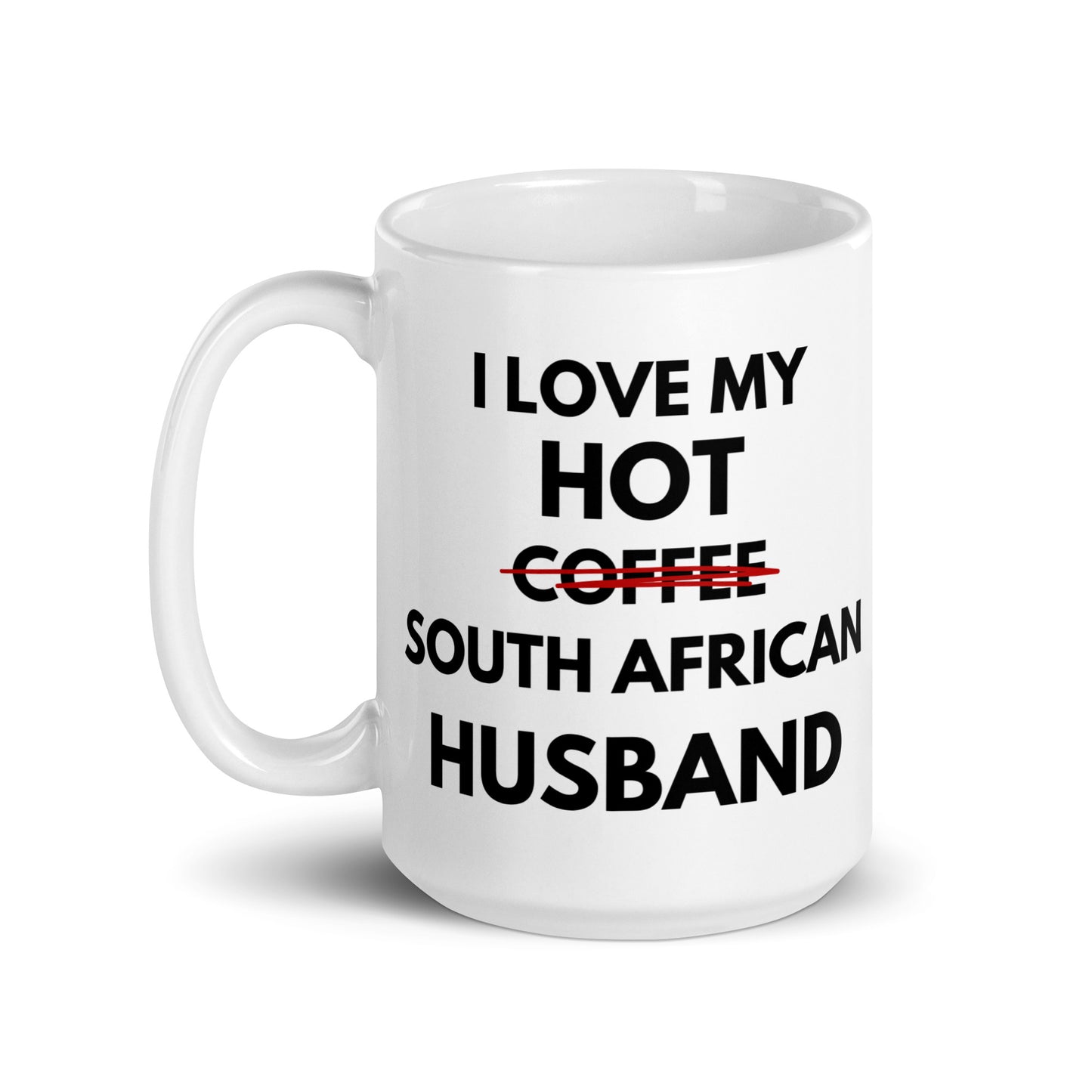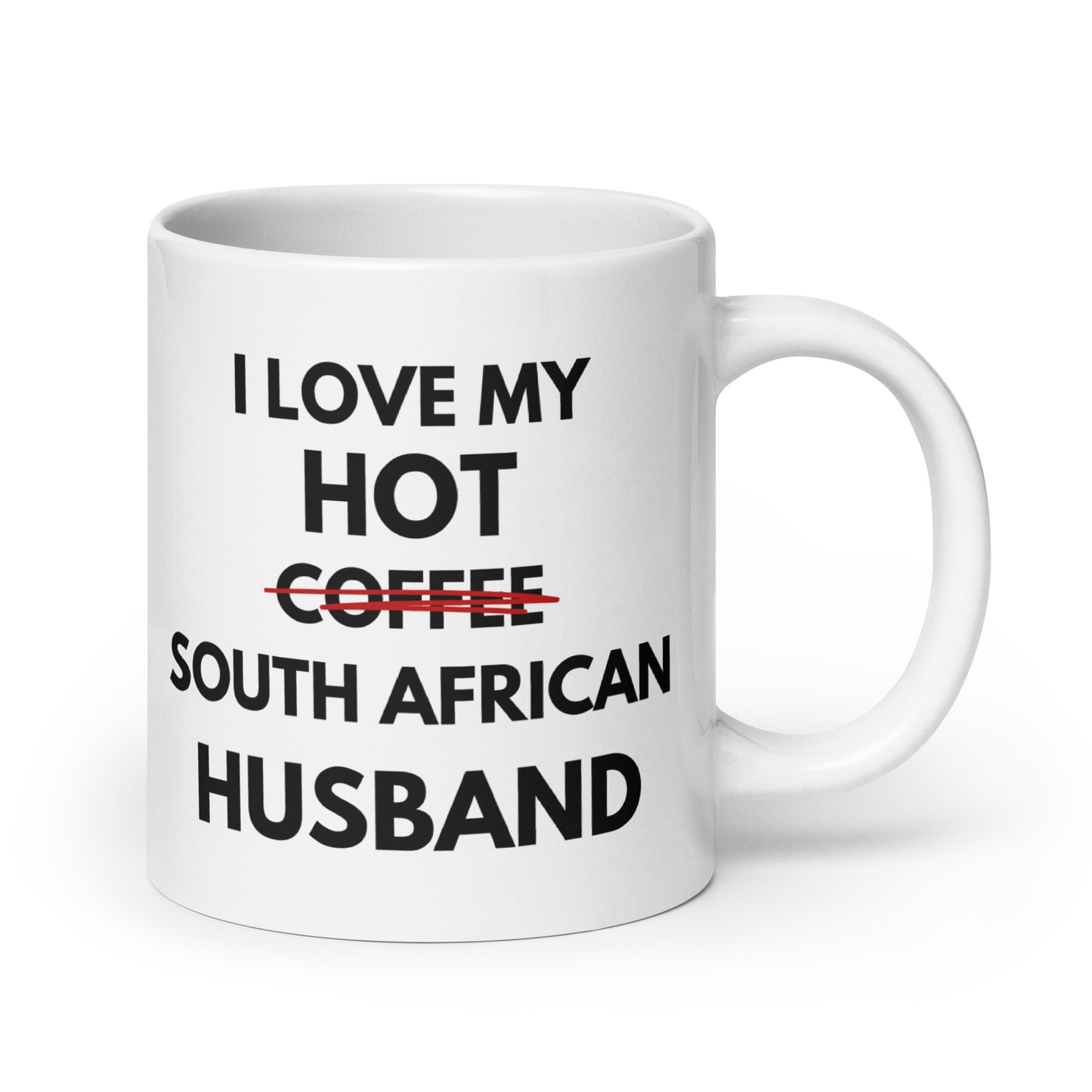 Tongue in cheek... The "I love my hot coffee ahem I mean South African Husband" mug is the perfect fun addition to your caffeinated mornings or given as a gift. Either way this ceramic mug is sure to put a smile on their / your face! It’s dishwasher-safe and perfect for everyday use.