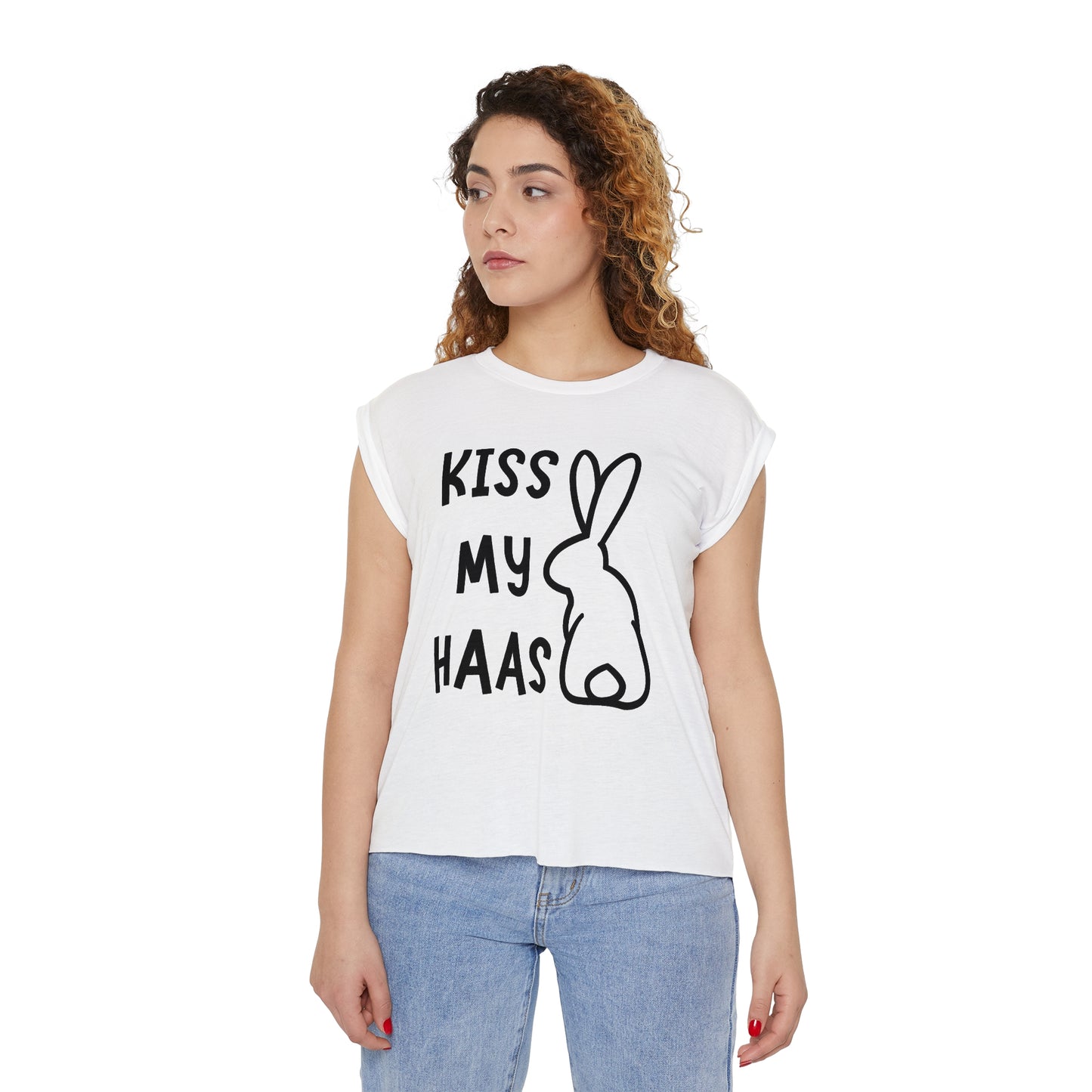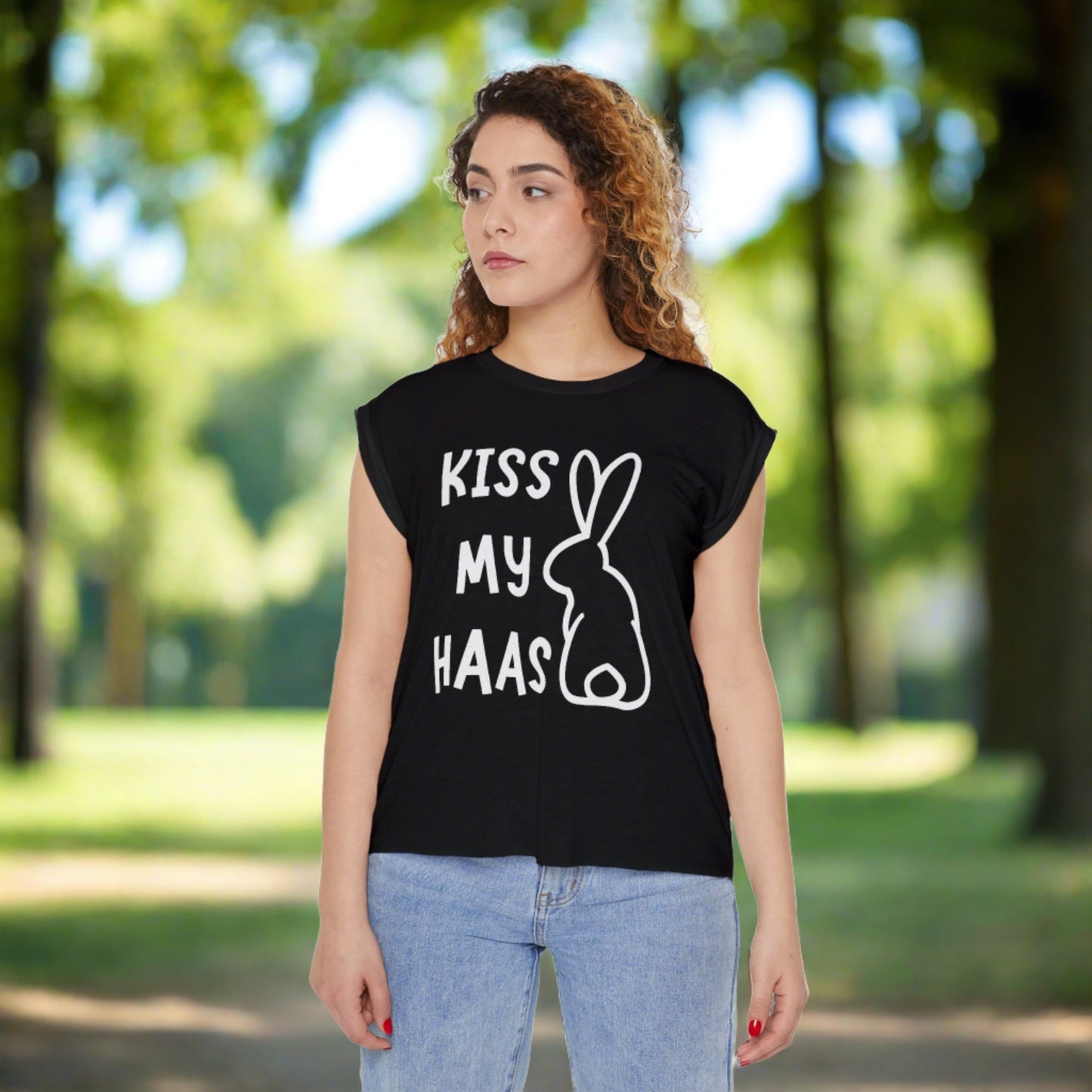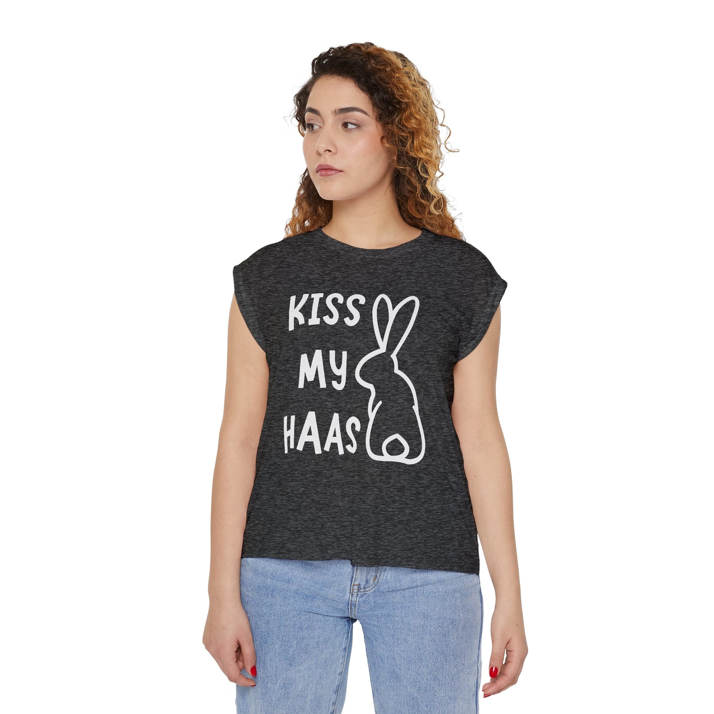 Kiss my Haas Women’s Flowy Rolled Cuffs Muscle Tee
