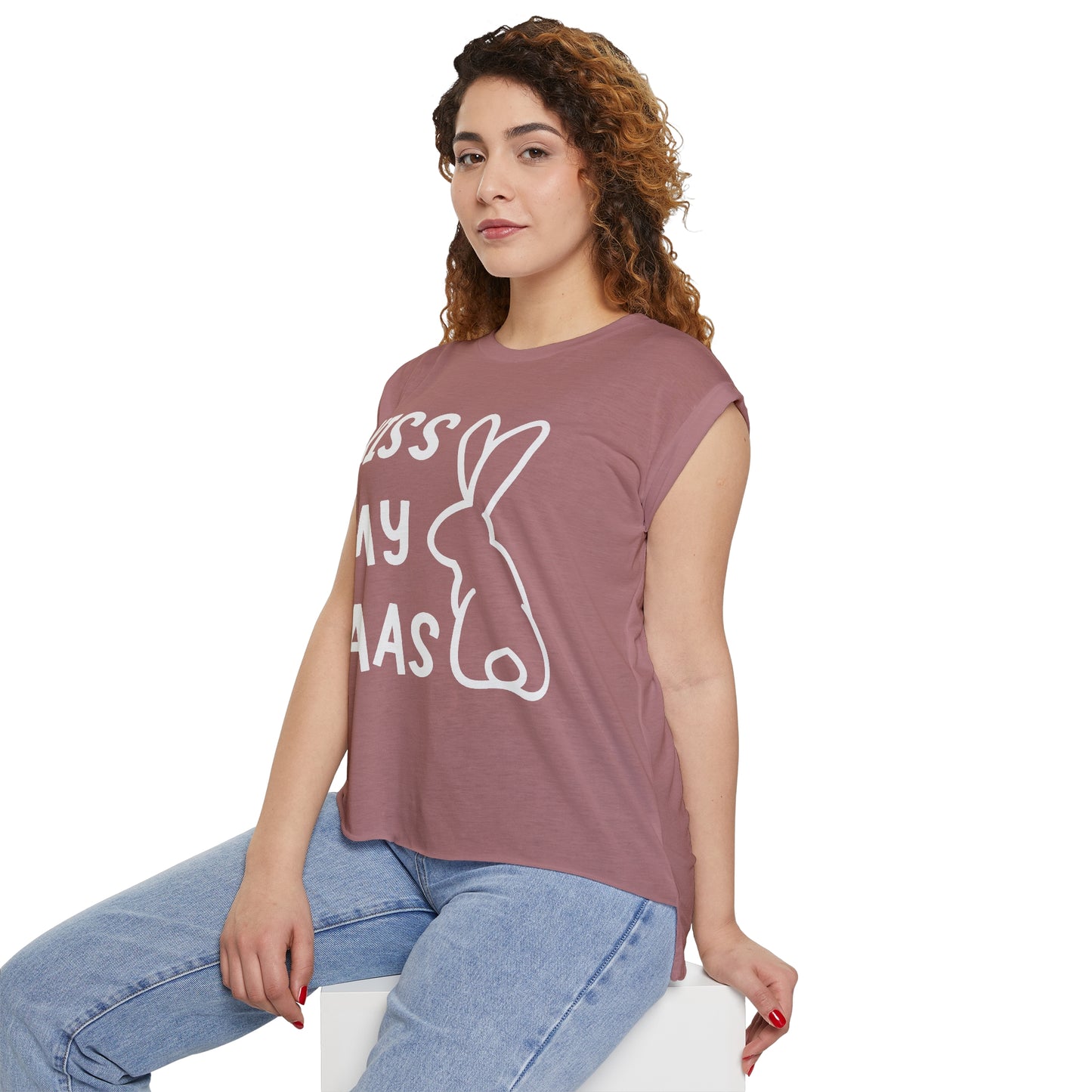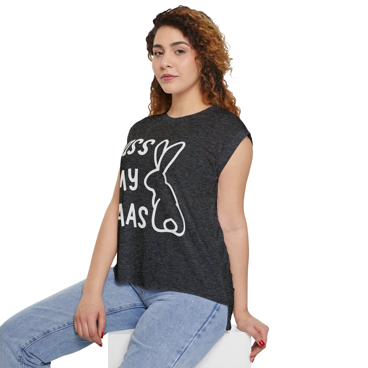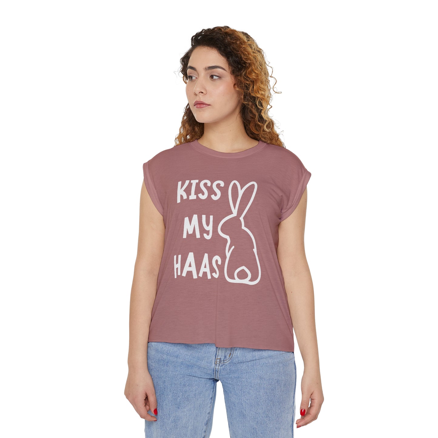 Kiss my Haas Women’s Flowy Rolled Cuffs Muscle Tee