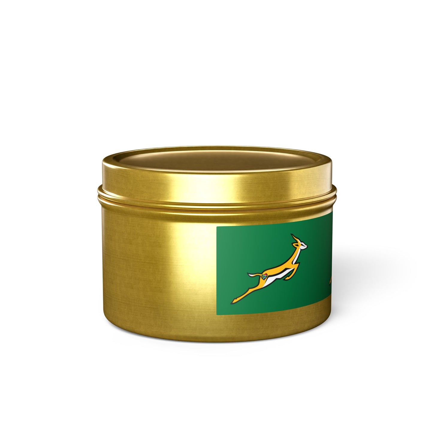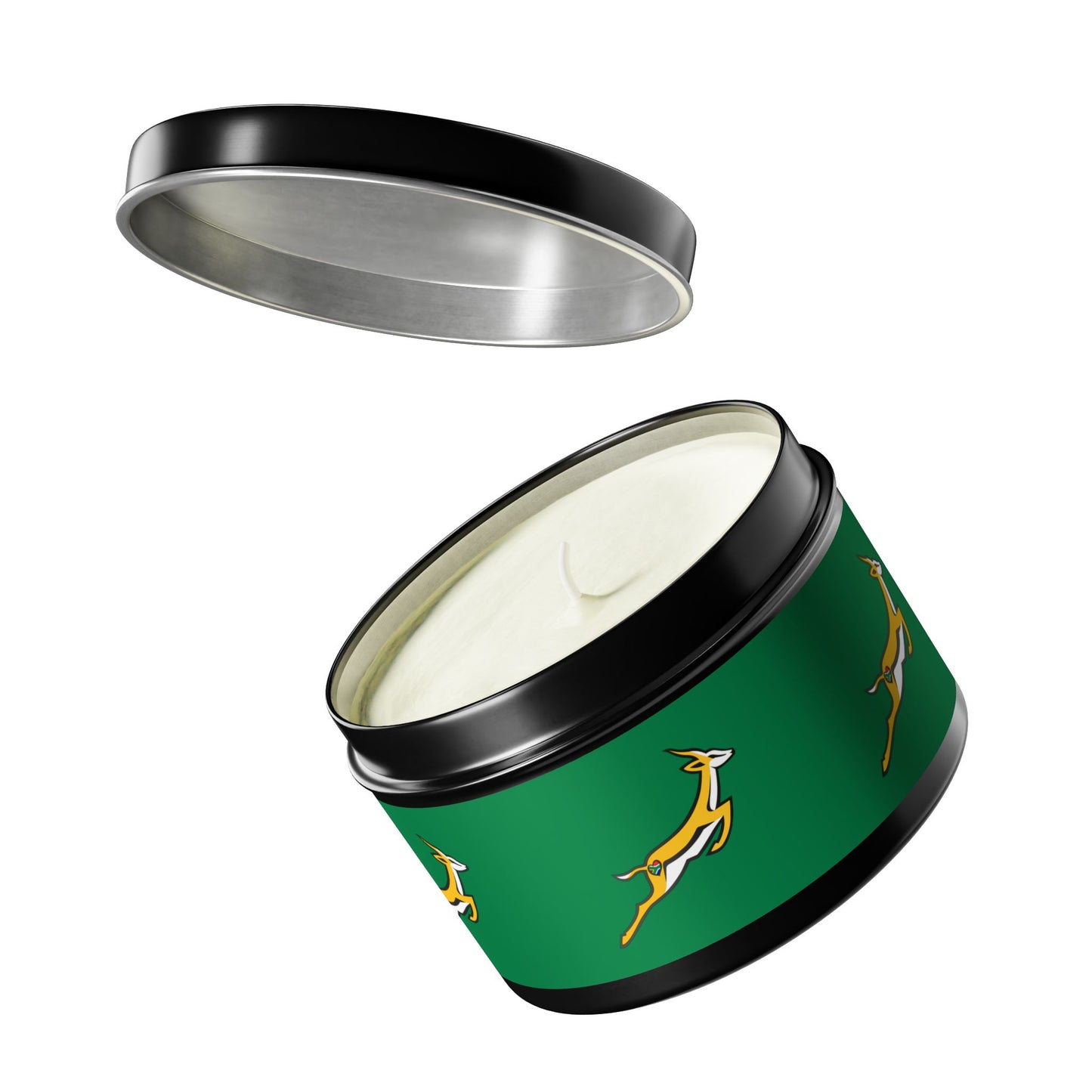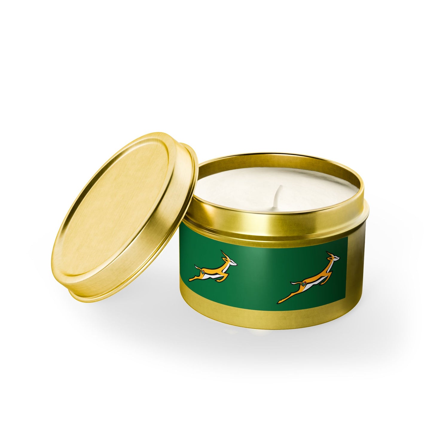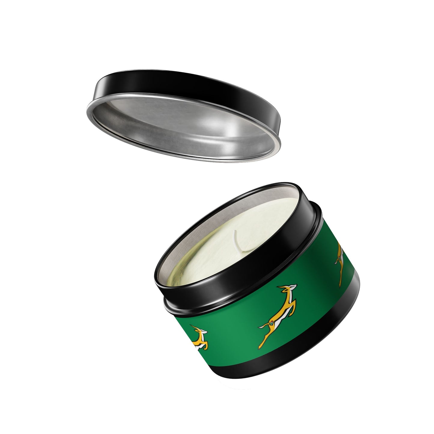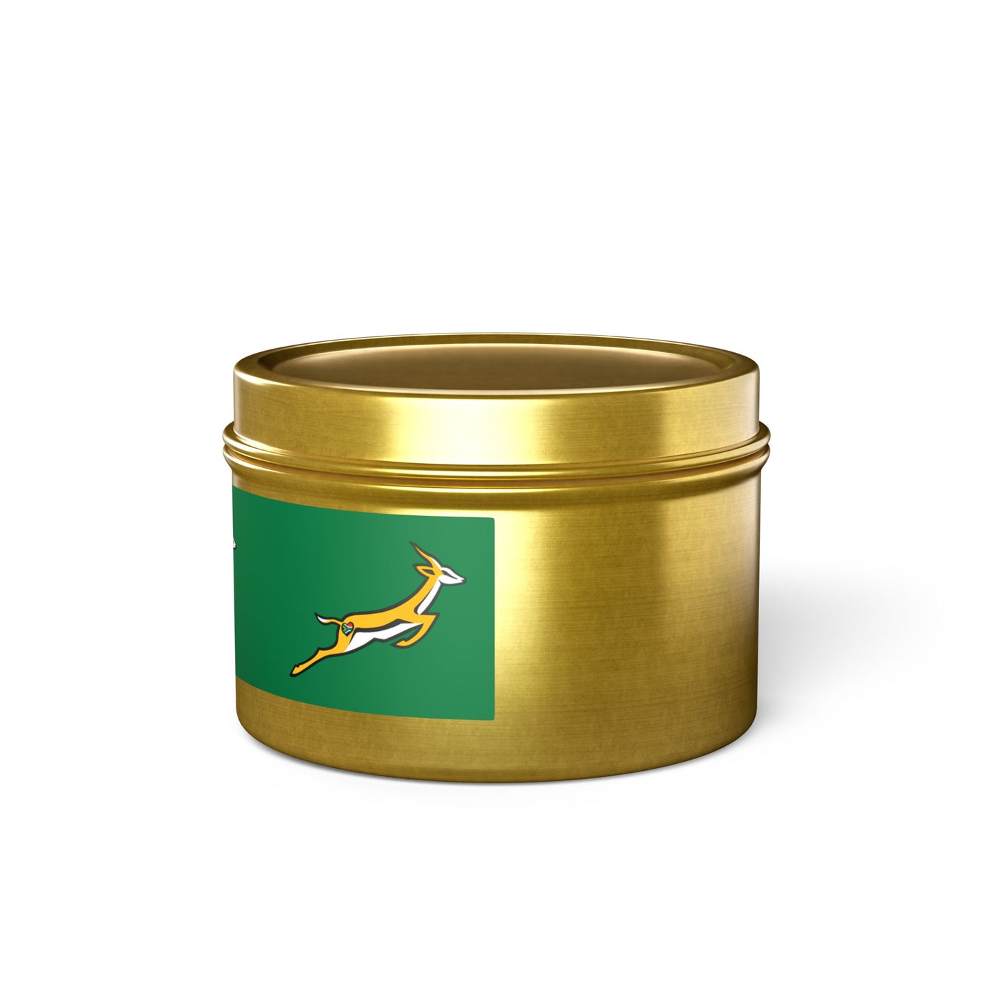 Create a treat for aromatherapy enthusiasts with these custom SA Springbok Fan tin candles. Available in 4oz and 8oz tins, these candles come natural coconut soy wax that is made and hand-poured in the USA. All candles feature a lead and zinc-free cotton wick with an average burning time of 20 hours (4oz) and 40h (8oz). Choose between 5 captivating aromas: evergreen, fresh coffee, mango coconut, spa retreat, or vanilla bean, and 3 tin colors: gold, silver, or black.