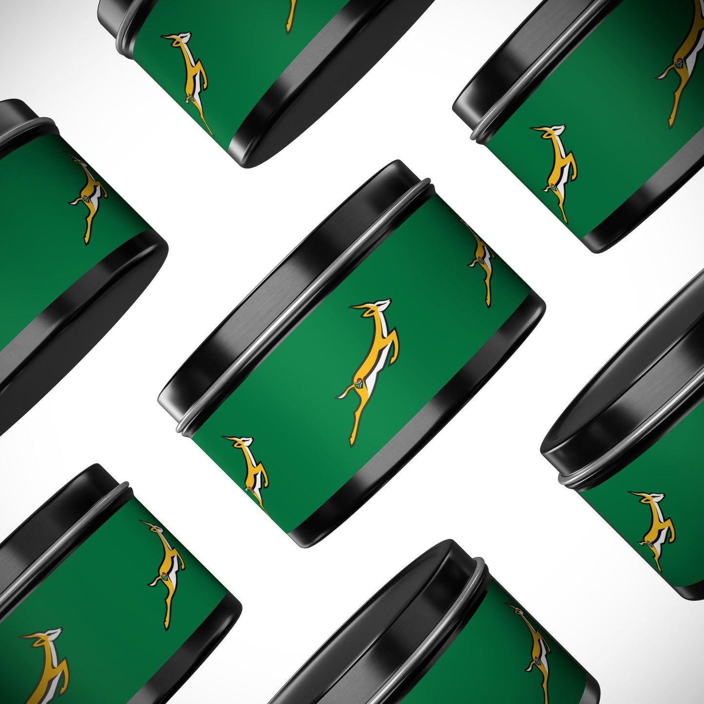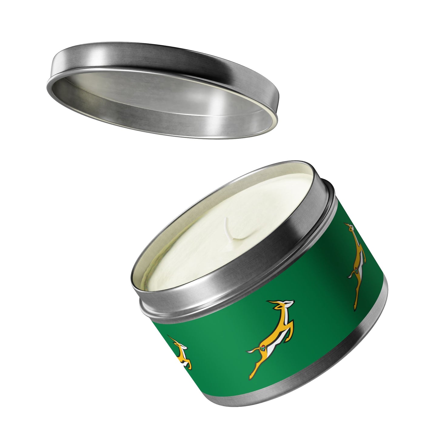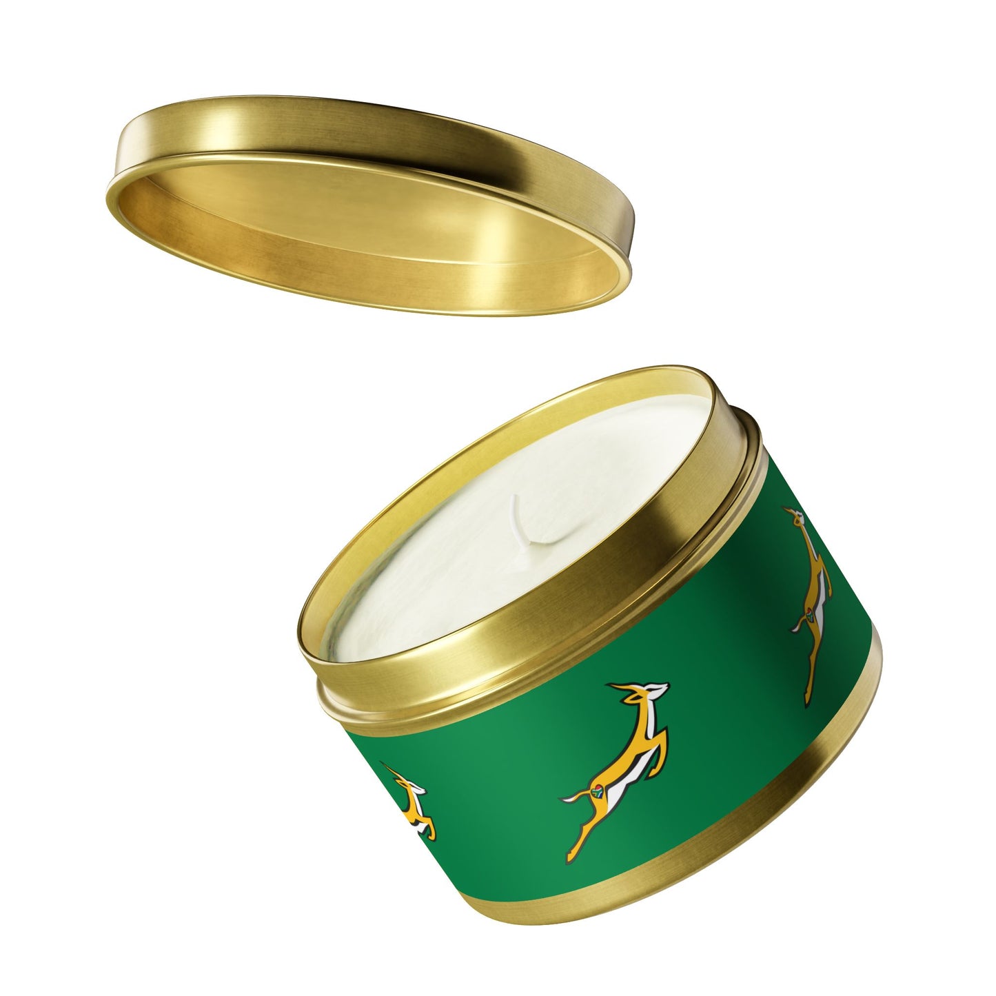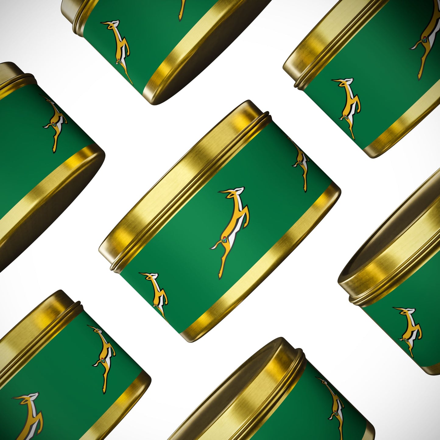 Create a treat for aromatherapy enthusiasts with these custom SA Springbok Fan tin candles. Available in 4oz and 8oz tins, these candles come natural coconut soy wax that is made and hand-poured in the USA. All candles feature a lead and zinc-free cotton wick with an average burning time of 20 hours (4oz) and 40h (8oz). Choose between 5 captivating aromas: evergreen, fresh coffee, mango coconut, spa retreat, or vanilla bean, and 3 tin colors: gold, silver, or black.