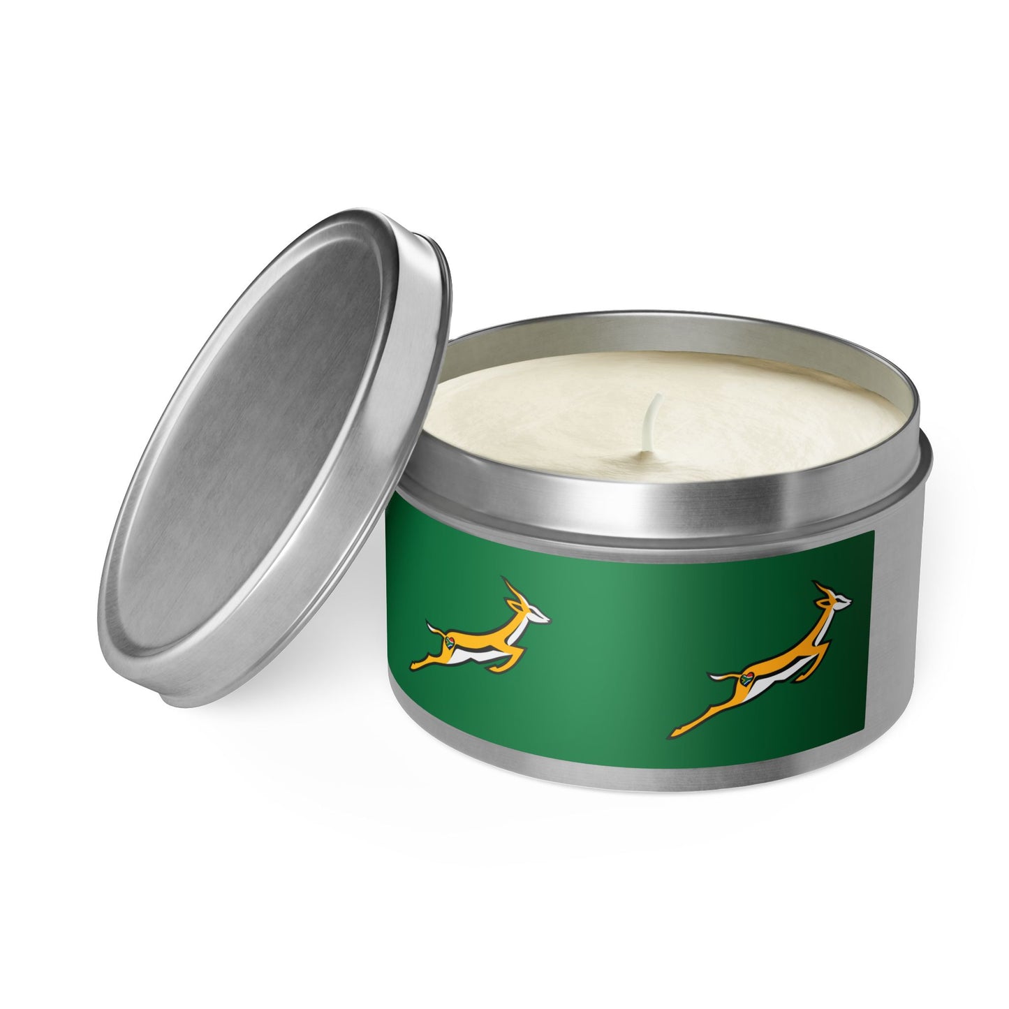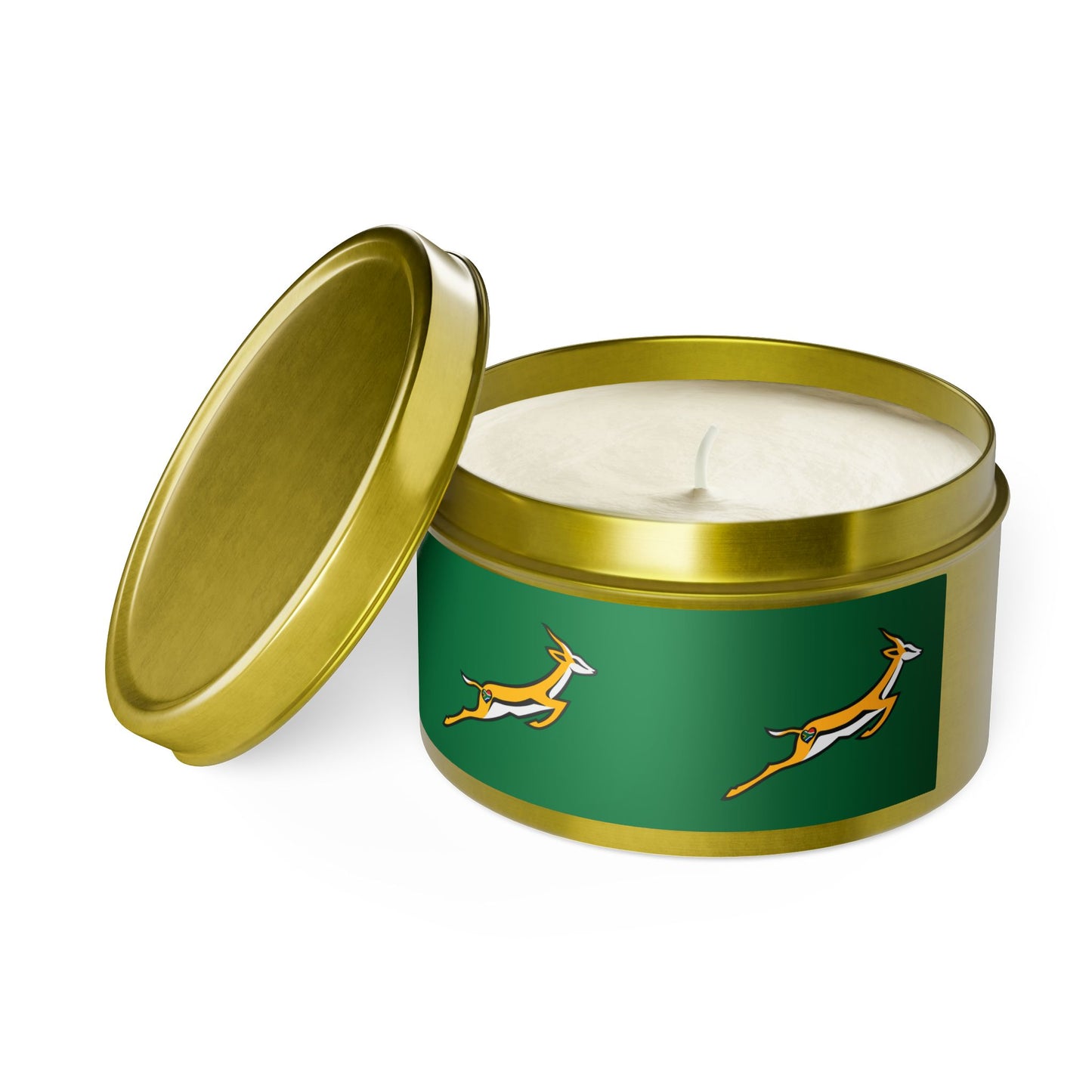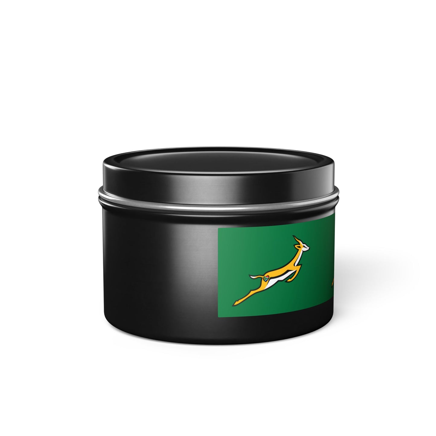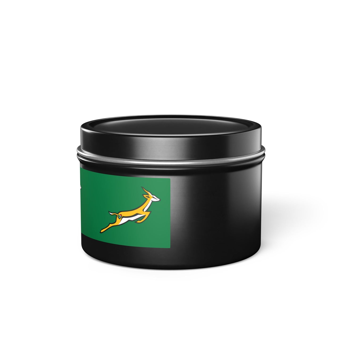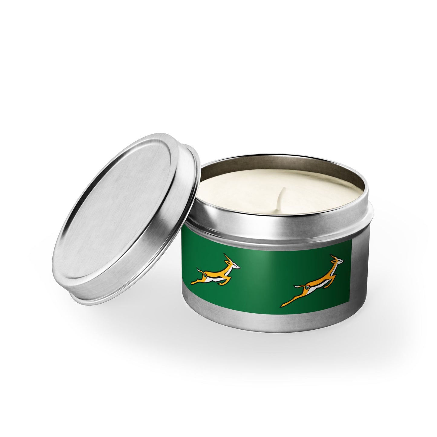 Create a treat for aromatherapy enthusiasts with these custom SA Springbok Fan tin candles. Available in 4oz and 8oz tins, these candles come natural coconut soy wax that is made and hand-poured in the USA. All candles feature a lead and zinc-free cotton wick with an average burning time of 20 hours (4oz) and 40h (8oz). Choose between 5 captivating aromas: evergreen, fresh coffee, mango coconut, spa retreat, or vanilla bean, and 3 tin colors: gold, silver, or black.