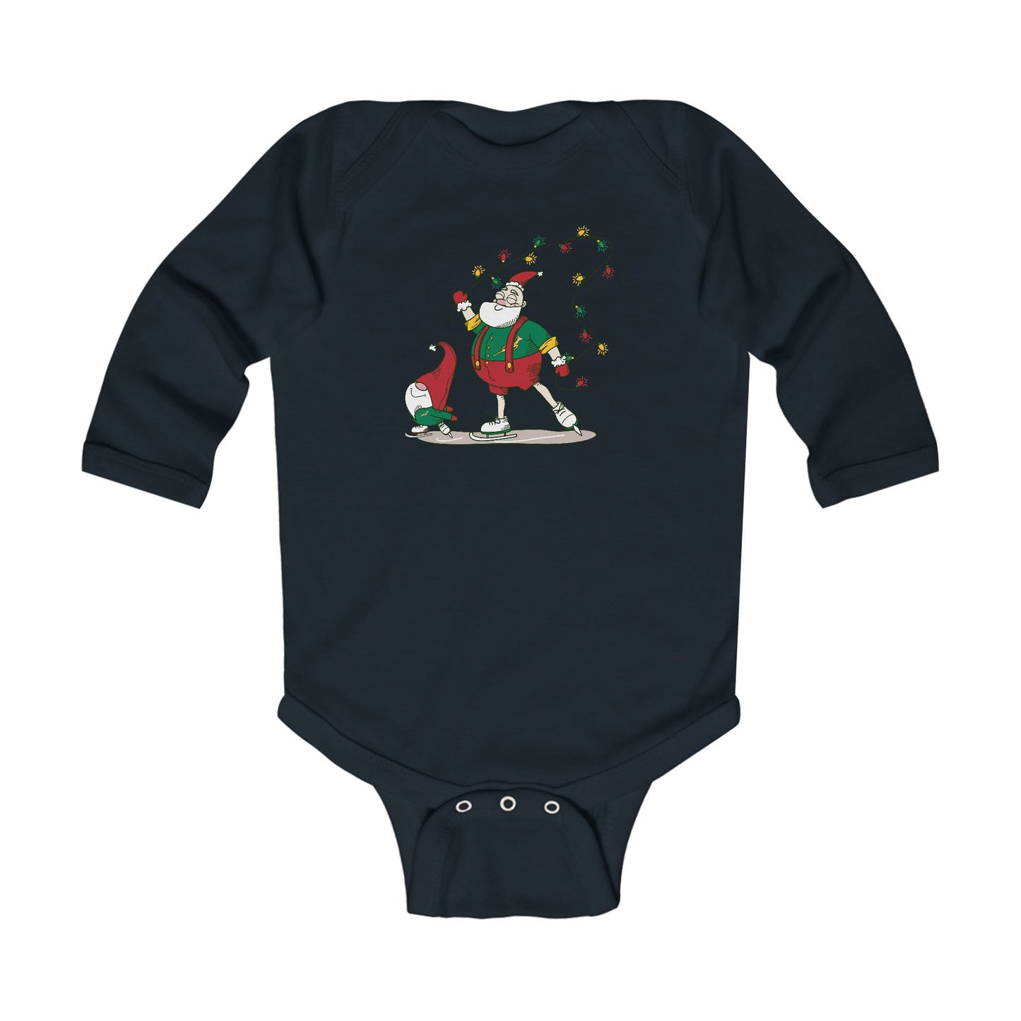 Santa Bok Fan Ice Skating Christmas Infant Long Sleeve Bodysuit