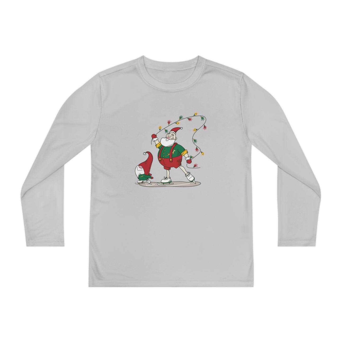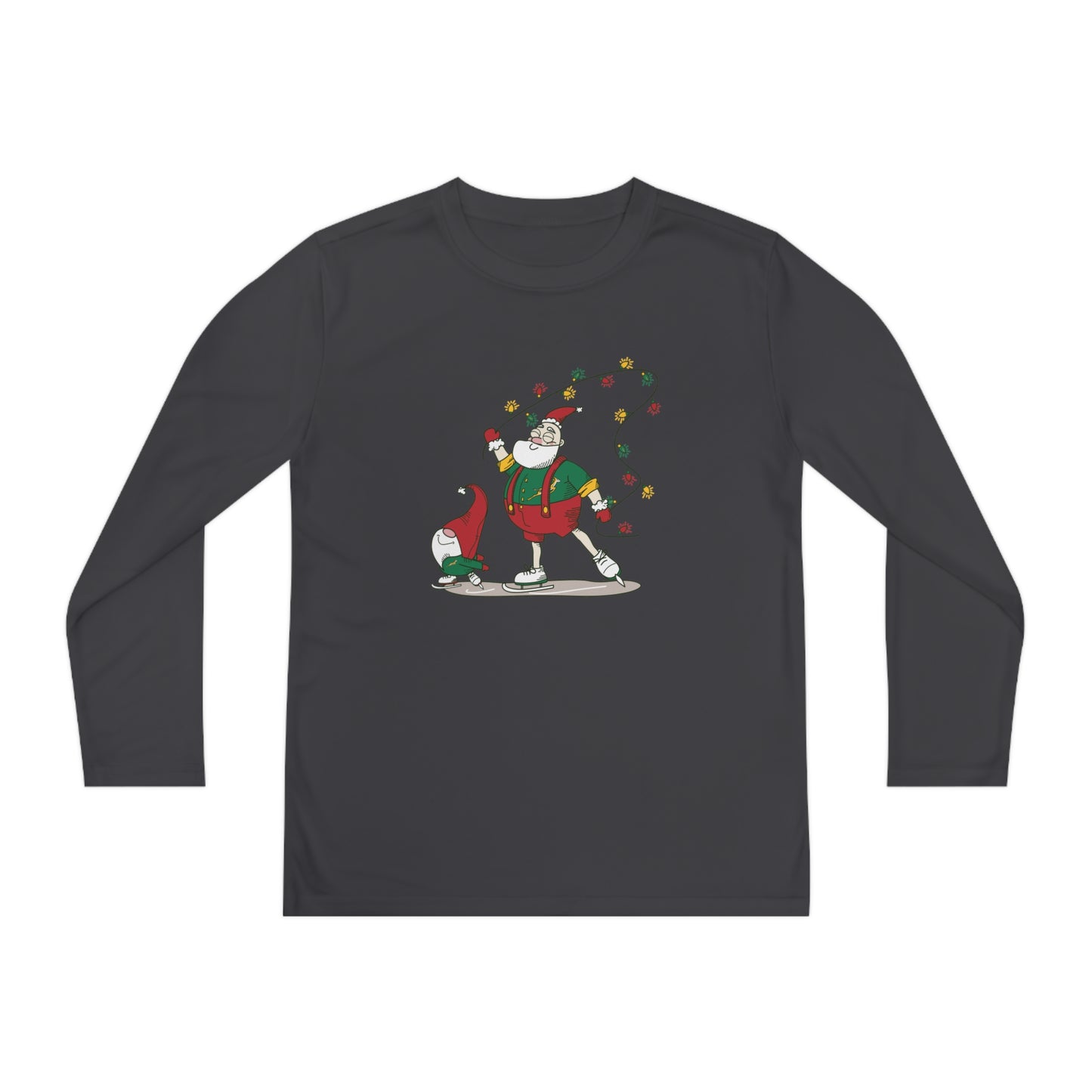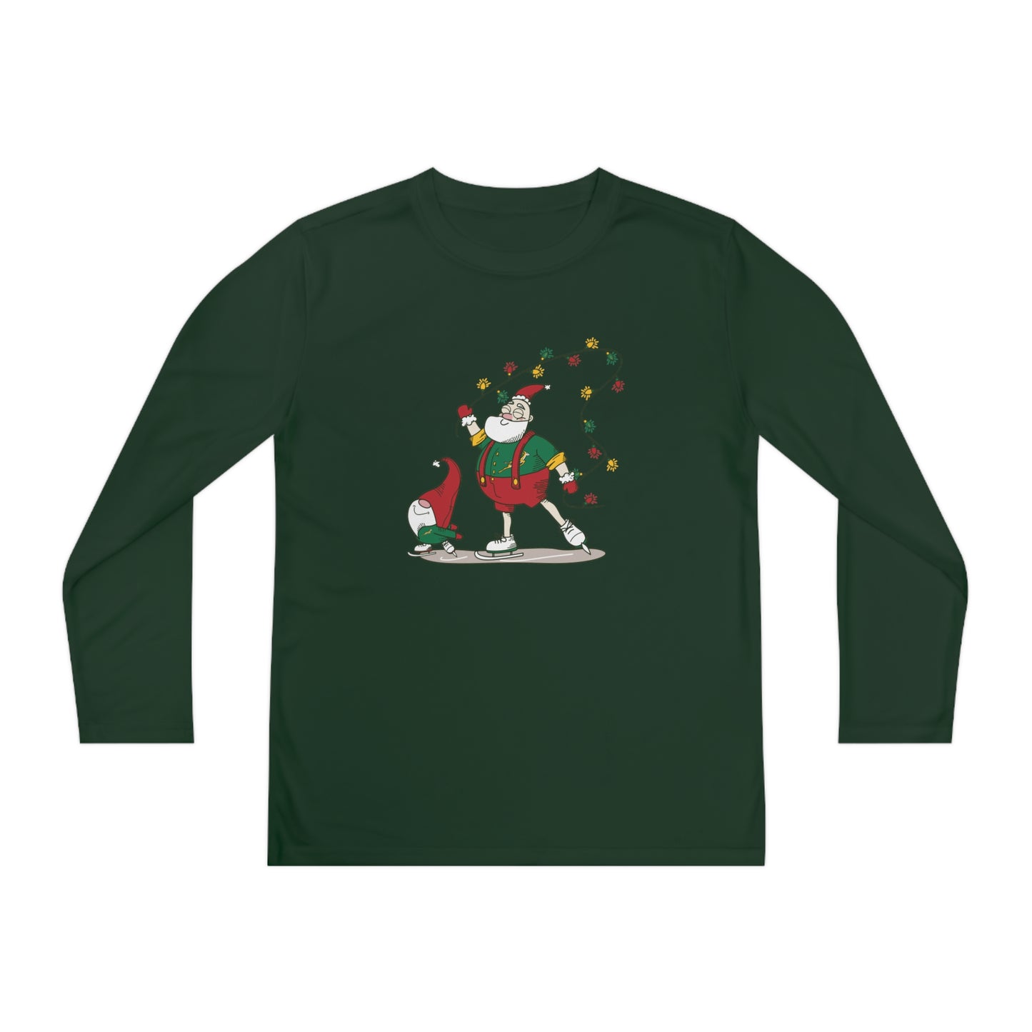Santa Bok Fan Ice Skating Christmas Youth Long Sleeve Competitor Tee