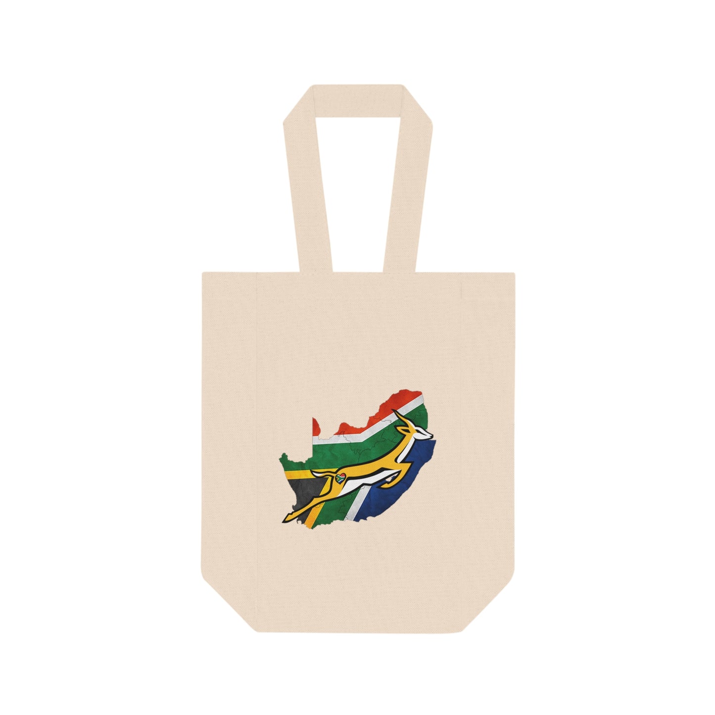 Simply put, a wine-lover's favorite. This double South African Bok Fan wine tote bag is made with 100% cotton canvas and features a handy partition to perfectly hold 2x 25 fl Oz (750ml) wine bottles.