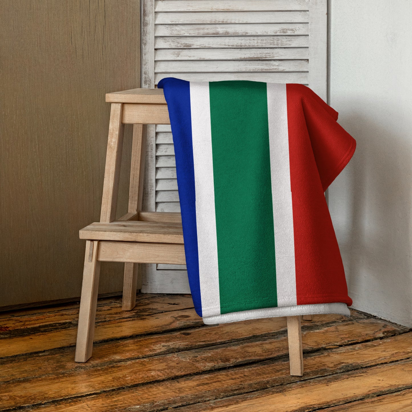 Give your beach adventures a vibrant look and wrap yourself up with this super soft and cozy South African Flag sublimation towel.
