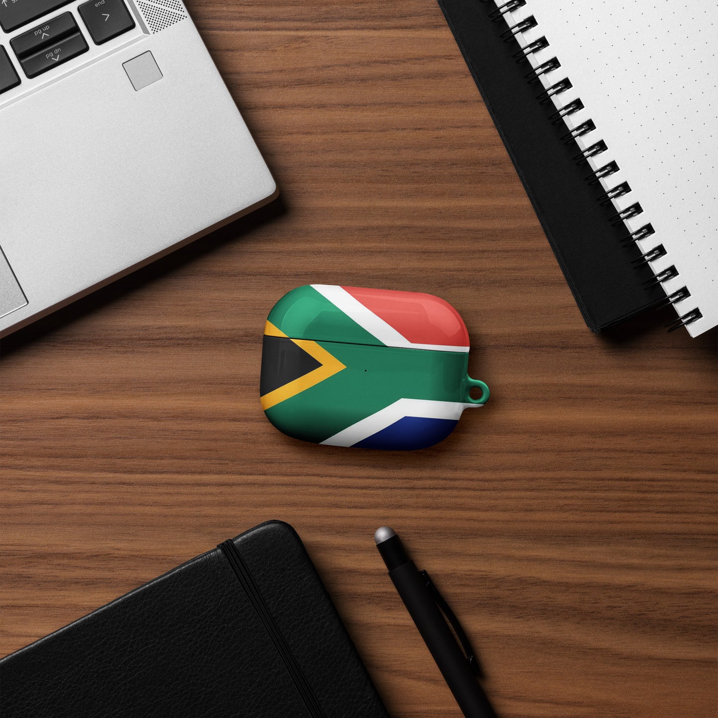 Protect your AirPods® in style! Crafted from premium impact-absorbing material, this South African flag case is the ultimate shield against scratches and drops, ensuring your earbuds stay pristine. With the added convenience of a metal carabiner, you can easily attach your AirPods® to your bag, keys, or anywhere else for easy access.