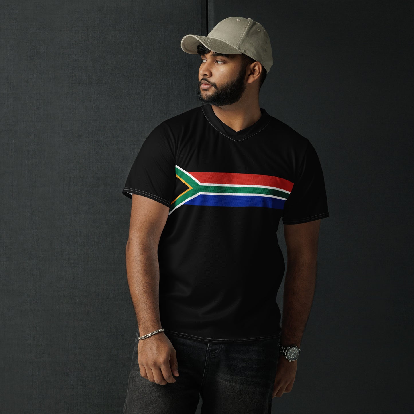 Proudly South African and looking for the perfect sports jersey? We have you covered—made of 100% recycled polyester fabric, this shirt is breathable, moisture-wicking, and has a double-layered v-neck collar that creates a premium look.