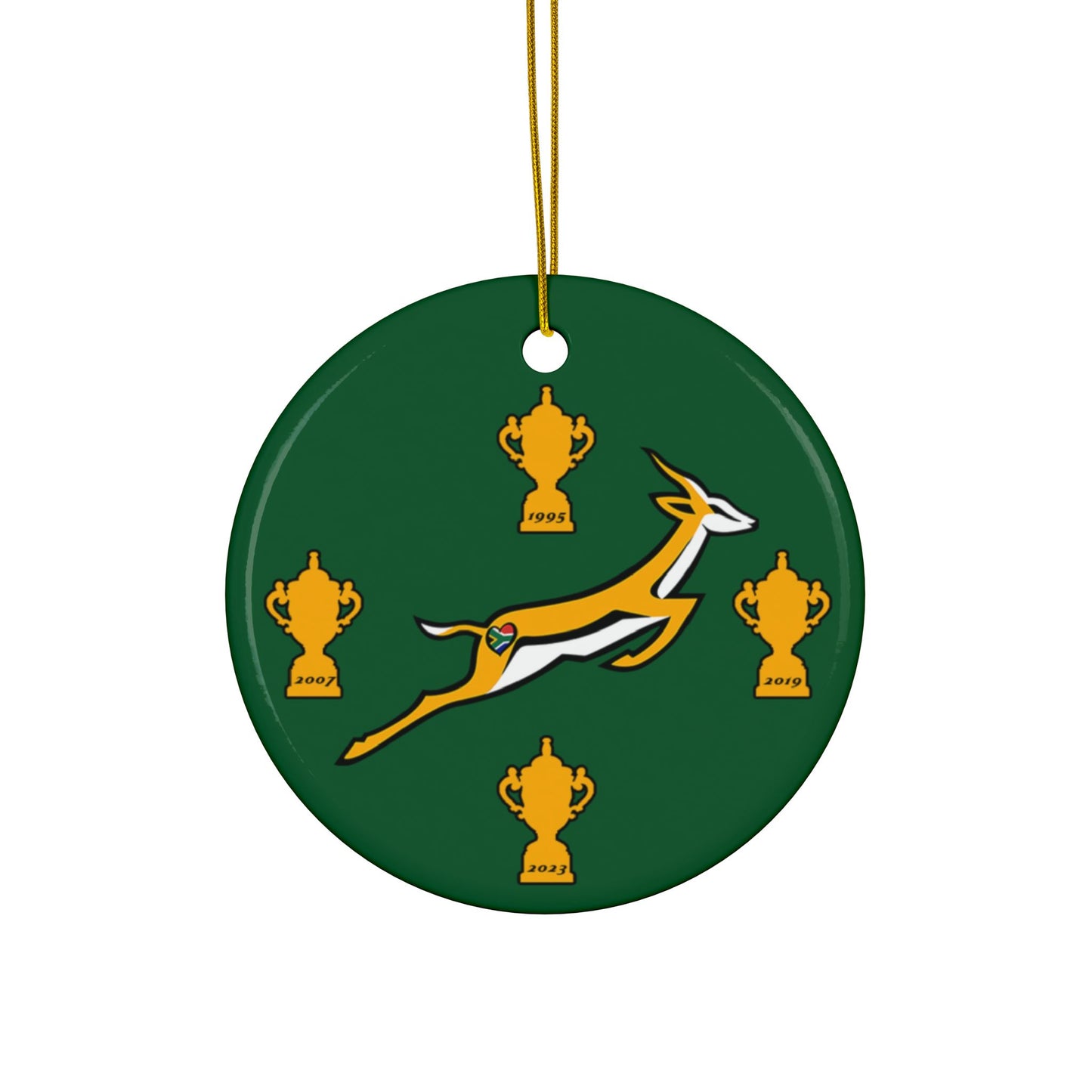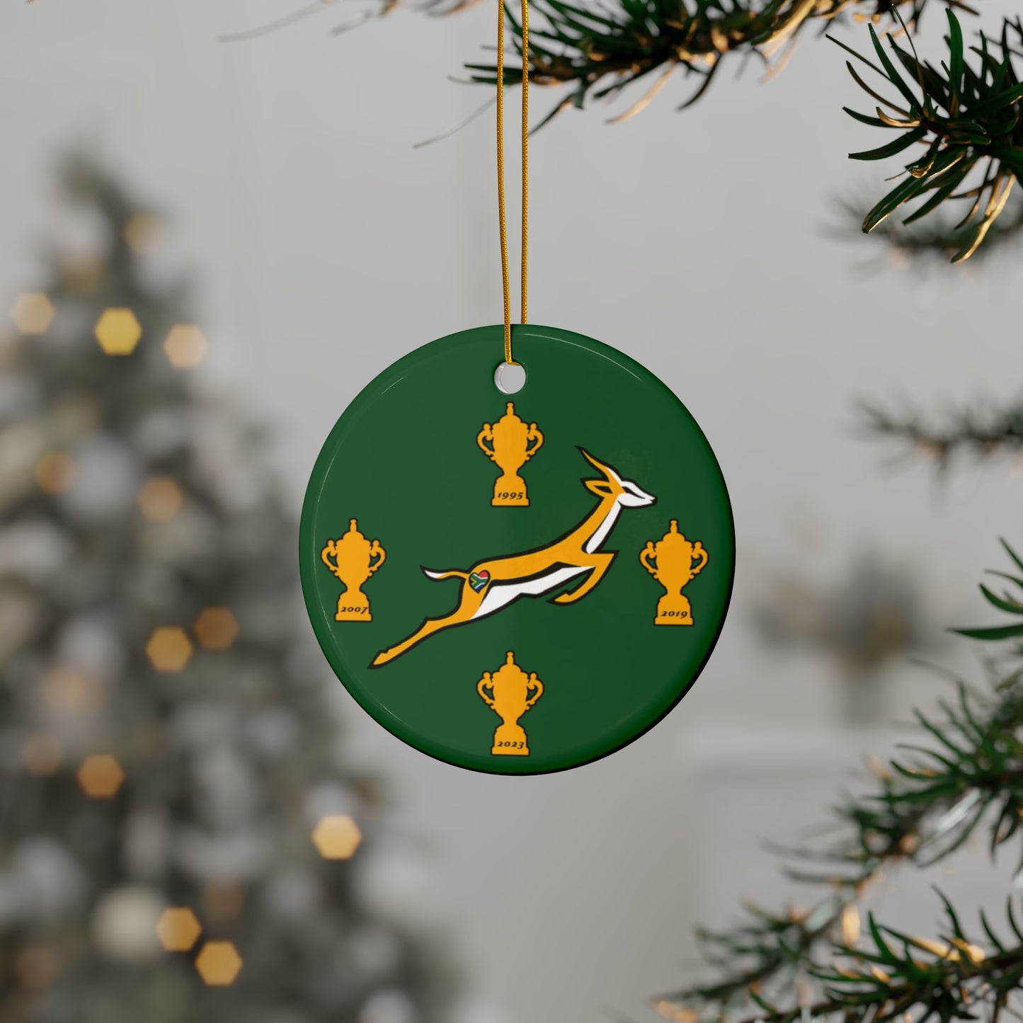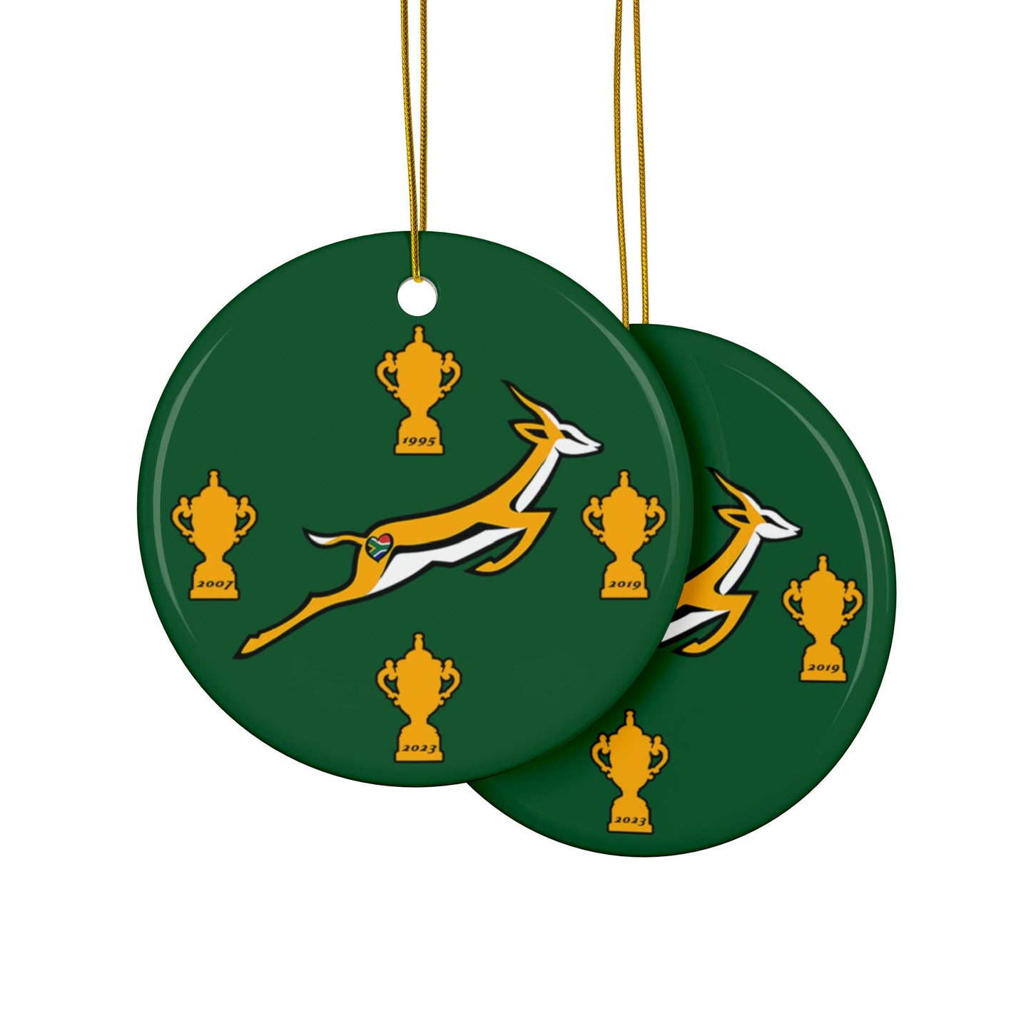 Made with durable ceramic, these Springbok ornaments feature a two-sided print. Available in bundles of 1, 3, 5, 10 pieces. .: Same design printed front and back