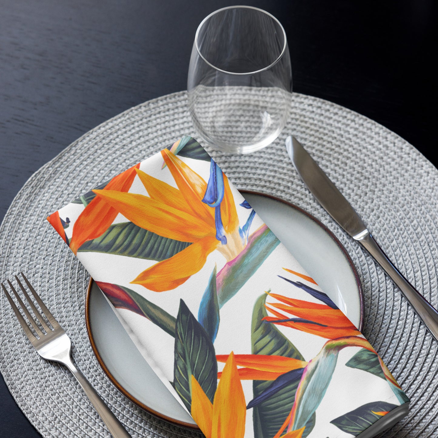 Revamp your dining experience with our Strelitzia cloth napkin set. Every pack comes with 4 soft, lightweight, and pliable napkins, each with a unique design for that personal touch. Great for special dinners or everyday use, these napkins add a dash of design and comfort to any mealtime.