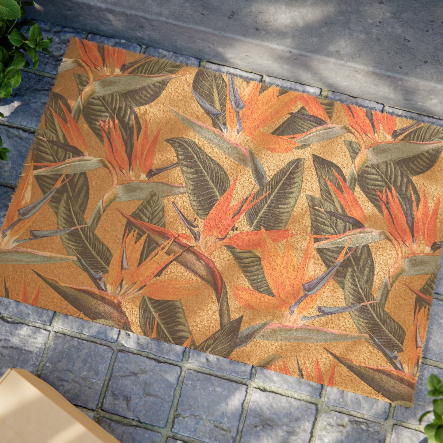 Meet the perfect welcoming doormat. Each Strelitzia mat comes in a 24" x 16" size and is made with Grade A tufted coir coconut fiber, making it perfect for outdoor use. All mats feature black vinyl backing for increased stability.
