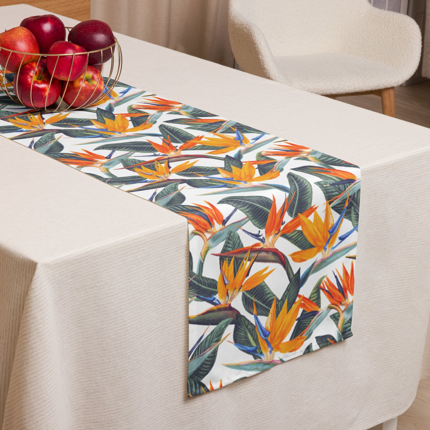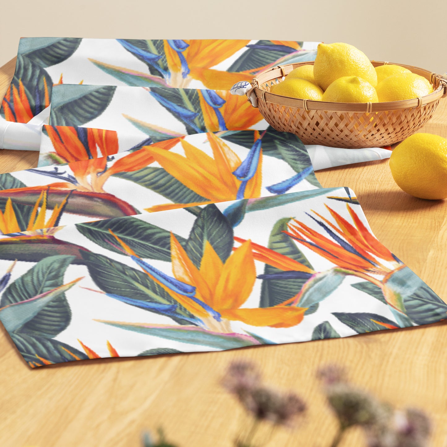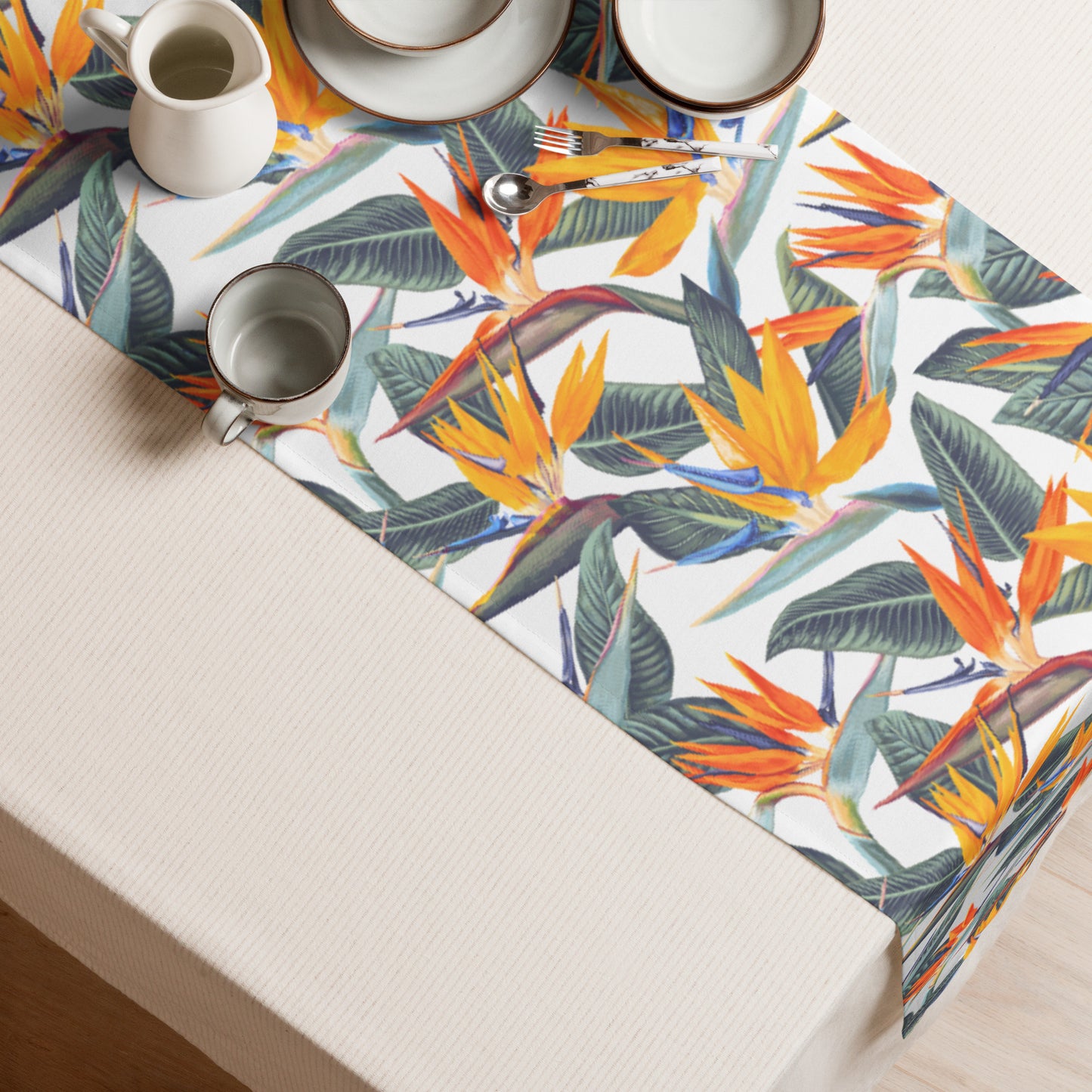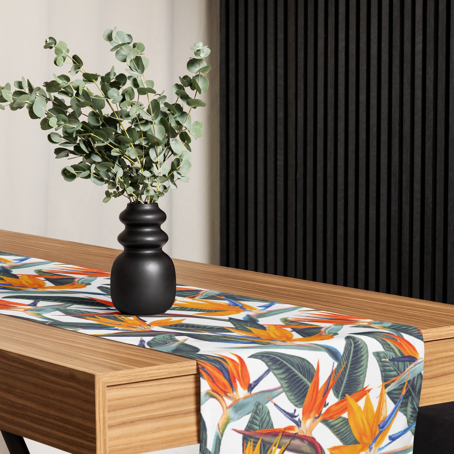 Crafted from resilient fabric, this Strelitzia table runner is both soft and enduring. Whether for everyday elegance or holiday charm, it will make meal times with loved ones a little more special. Treat yourself to this delightful table accessory or consider it as a thoughtful gift for someone special.