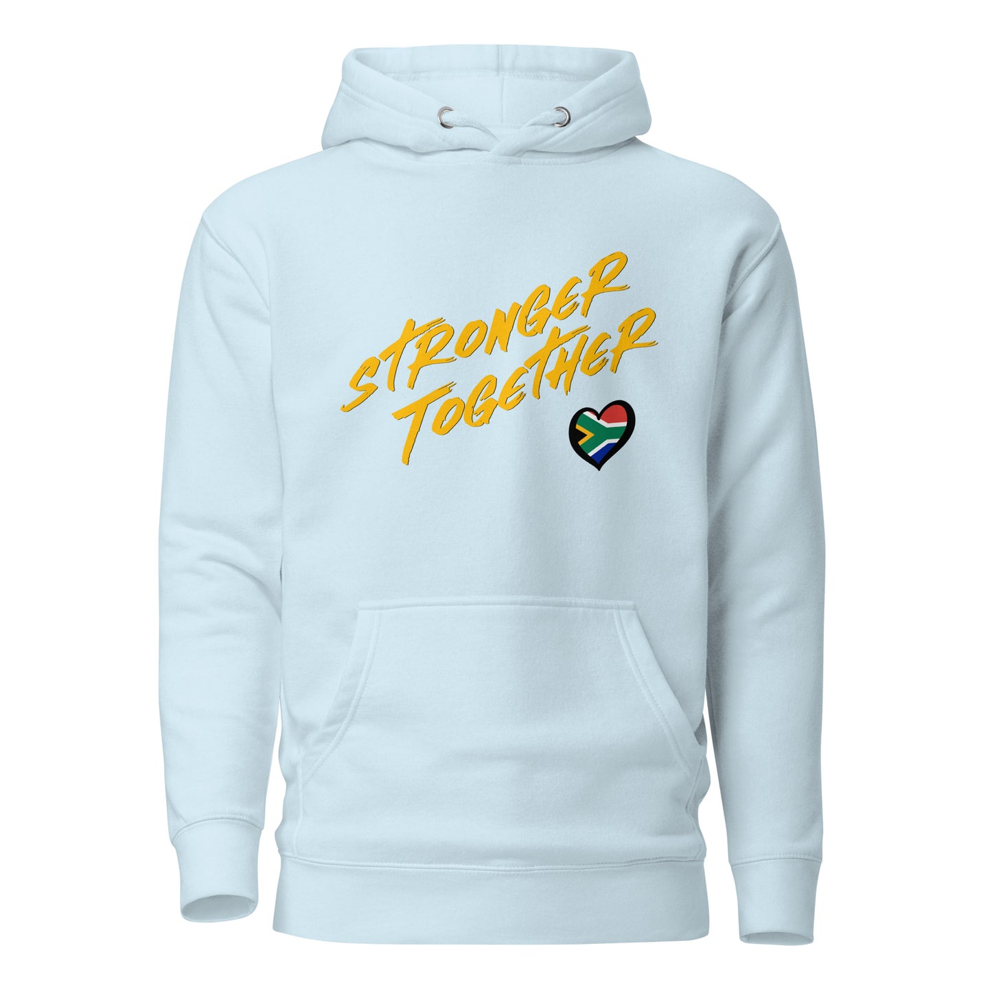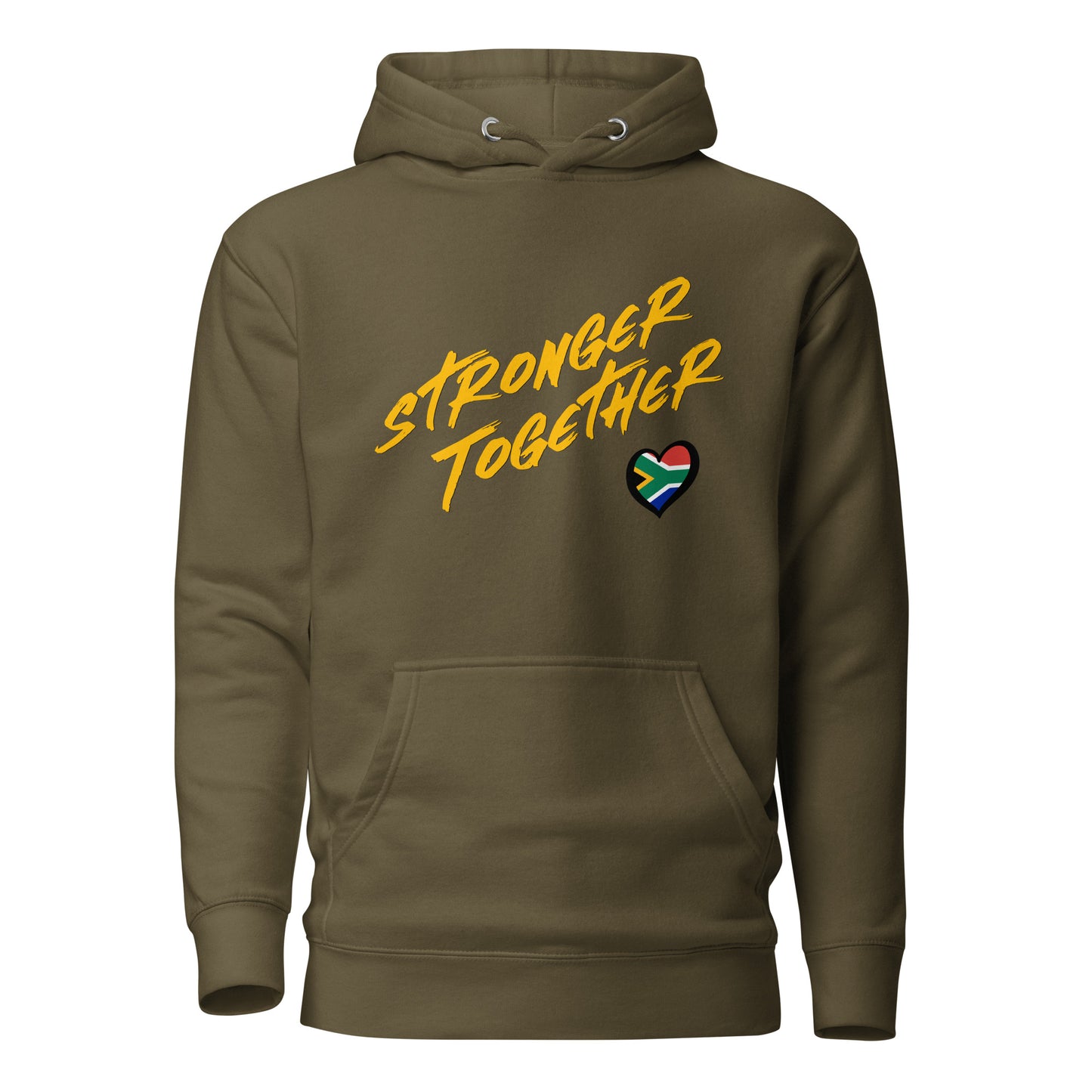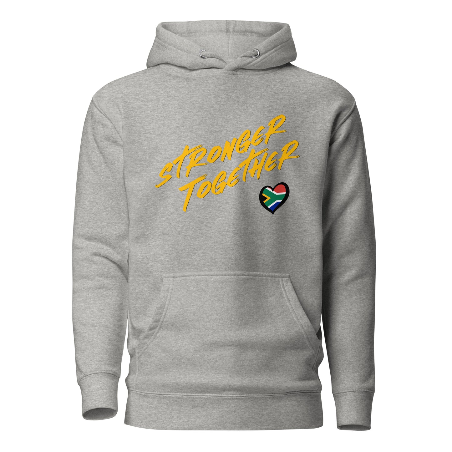 Ready to slay with a good message to boot? Think high-quality cotton with a comfort-fitted hood, matching drawstrings, and a front pocket. Upgrade your look with this awesome premium Stronger Together hoodie.
