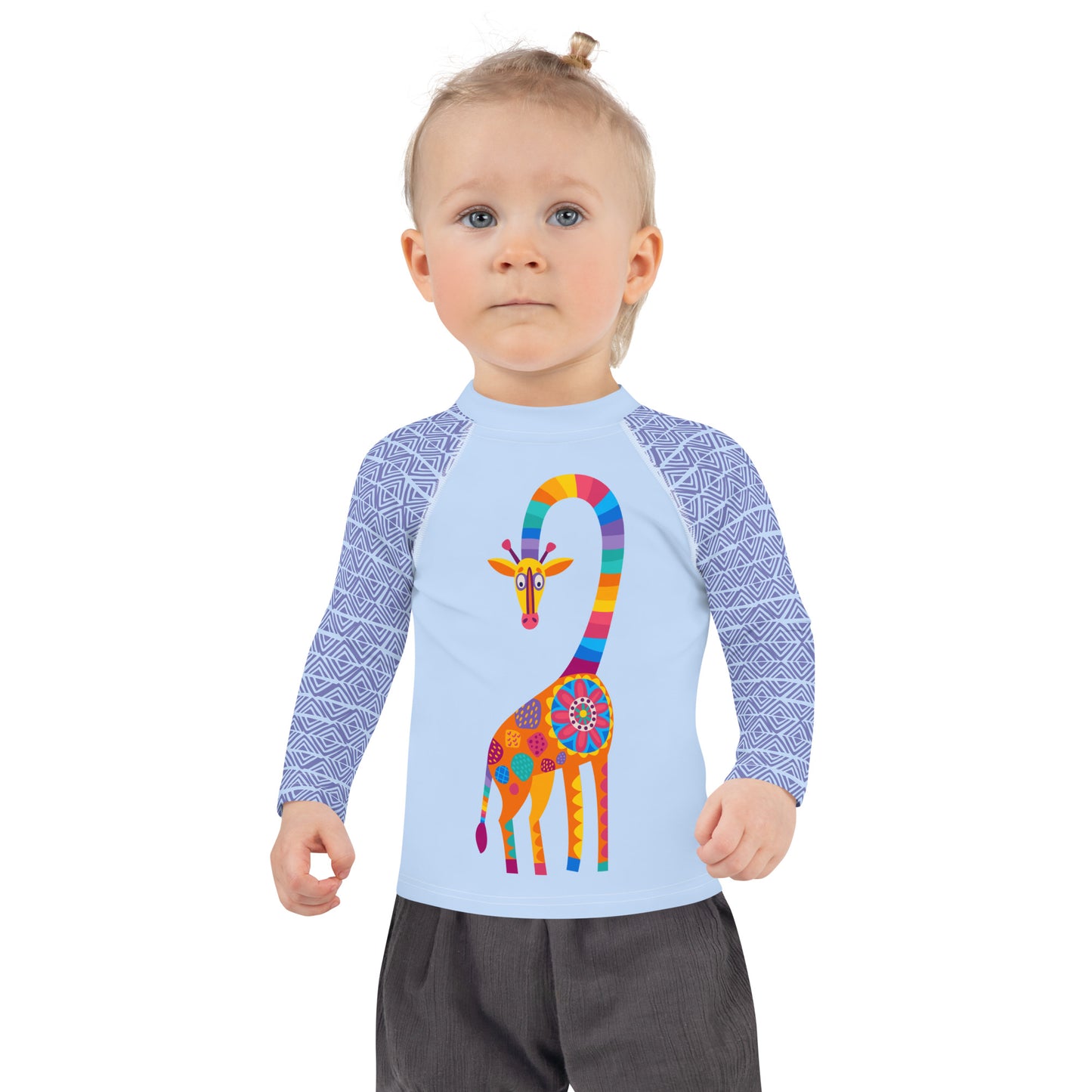 Protect the little ones from the elements with this colorful kids Vibrant Giraffe rash guard. Its sun-protective fabric and long body and sleeves make it perfect for running around on the beach, or just being active indoors.