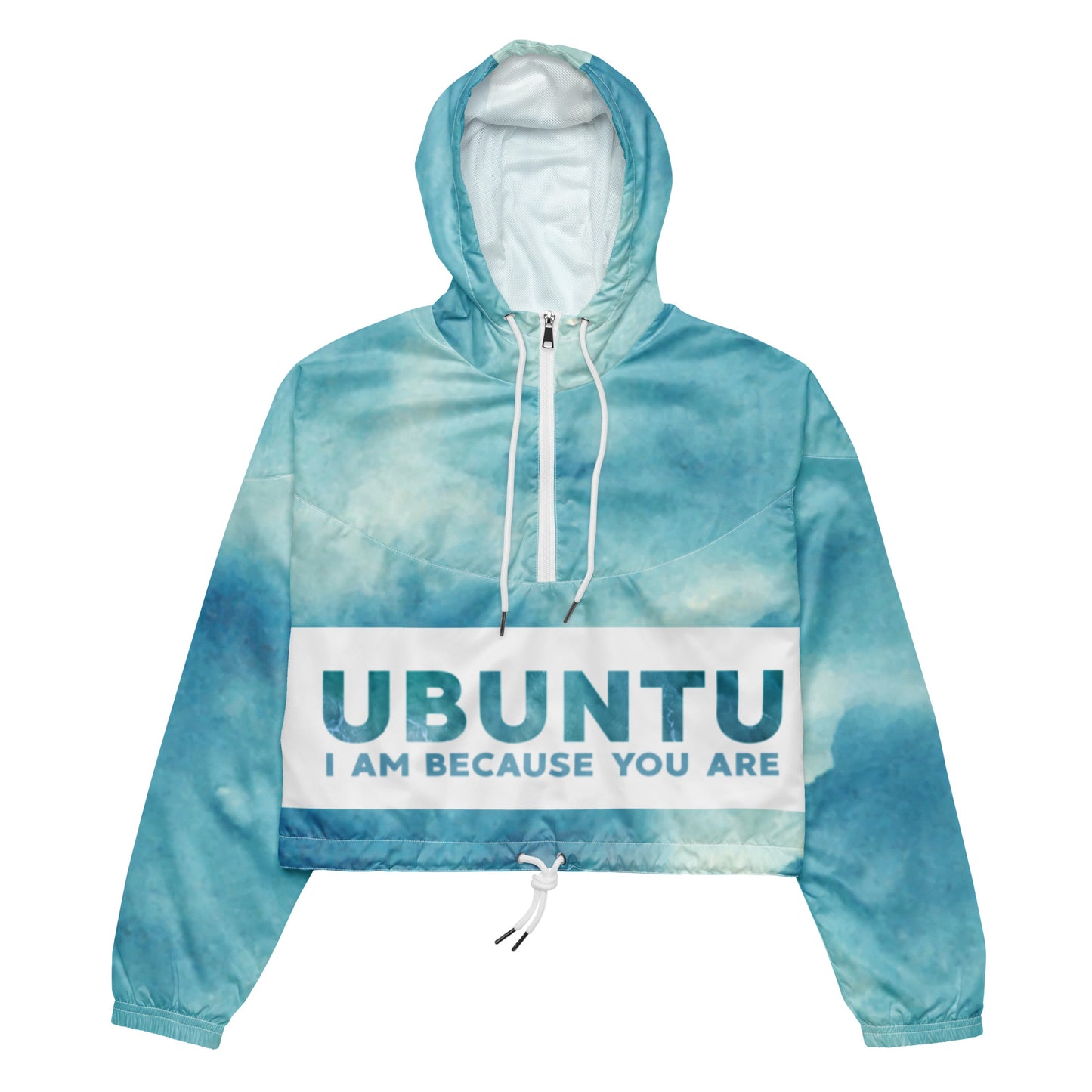 Hike in style without the rain getting in the way—this cropped Ubuntu windbreaker not only comes with an important message but is also lightweight, waterproof, and suitable for every kind of adventure. Features include side-slit pockets, breathable mesh lining, and adjustable drawcords on the hood and waist to support all your stylish outdoor looks.